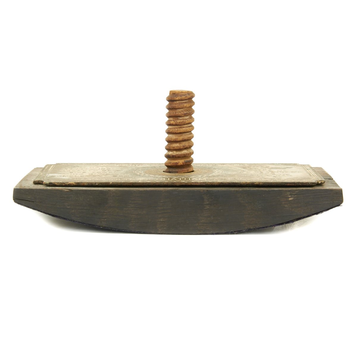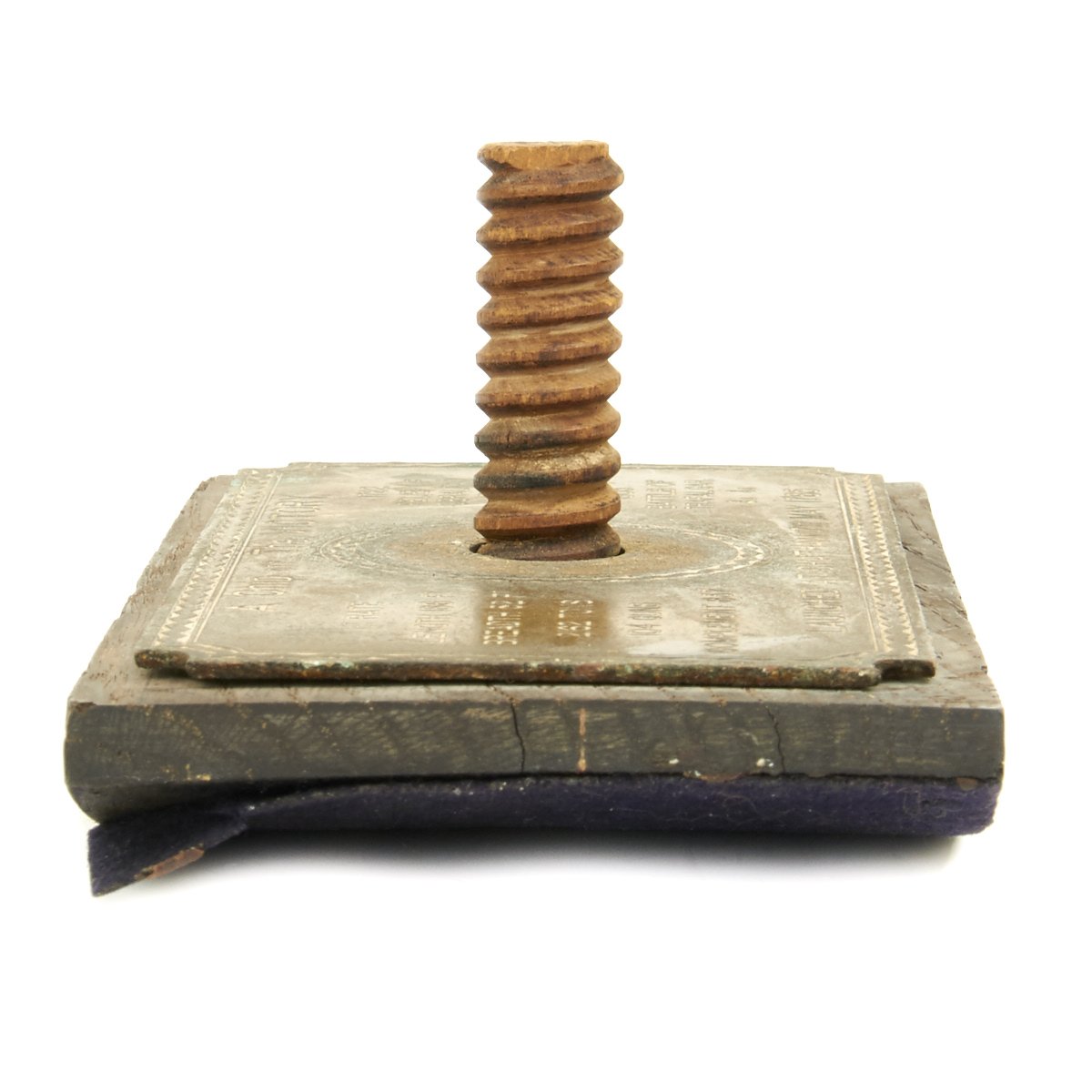 This ink blotter is such an item, missing the screw-on "handling knob, it consists of the main blotter oak body measuring 6" x 3" x 1" and bears the original large brass commemoration plaque fully engraved as follows: