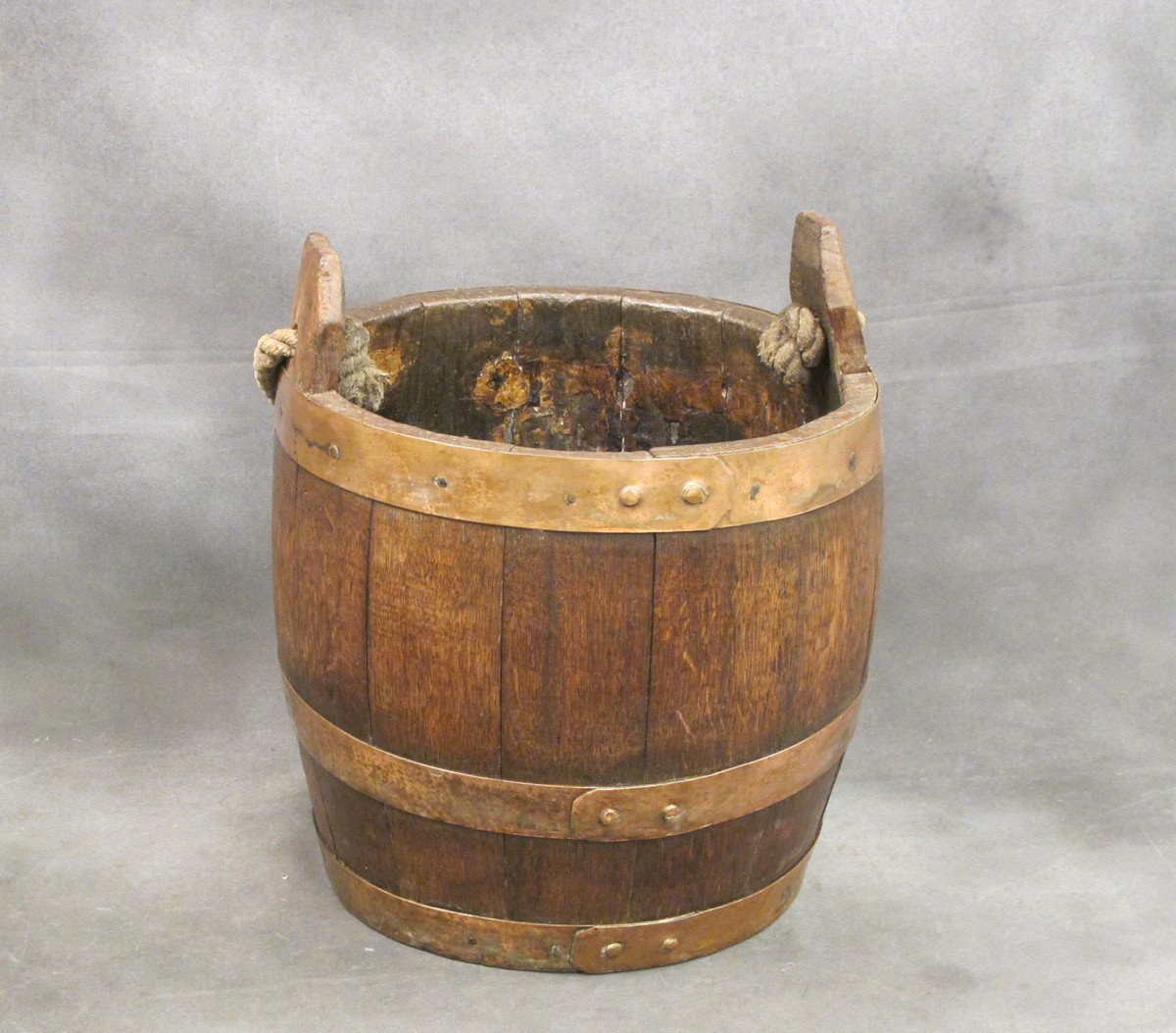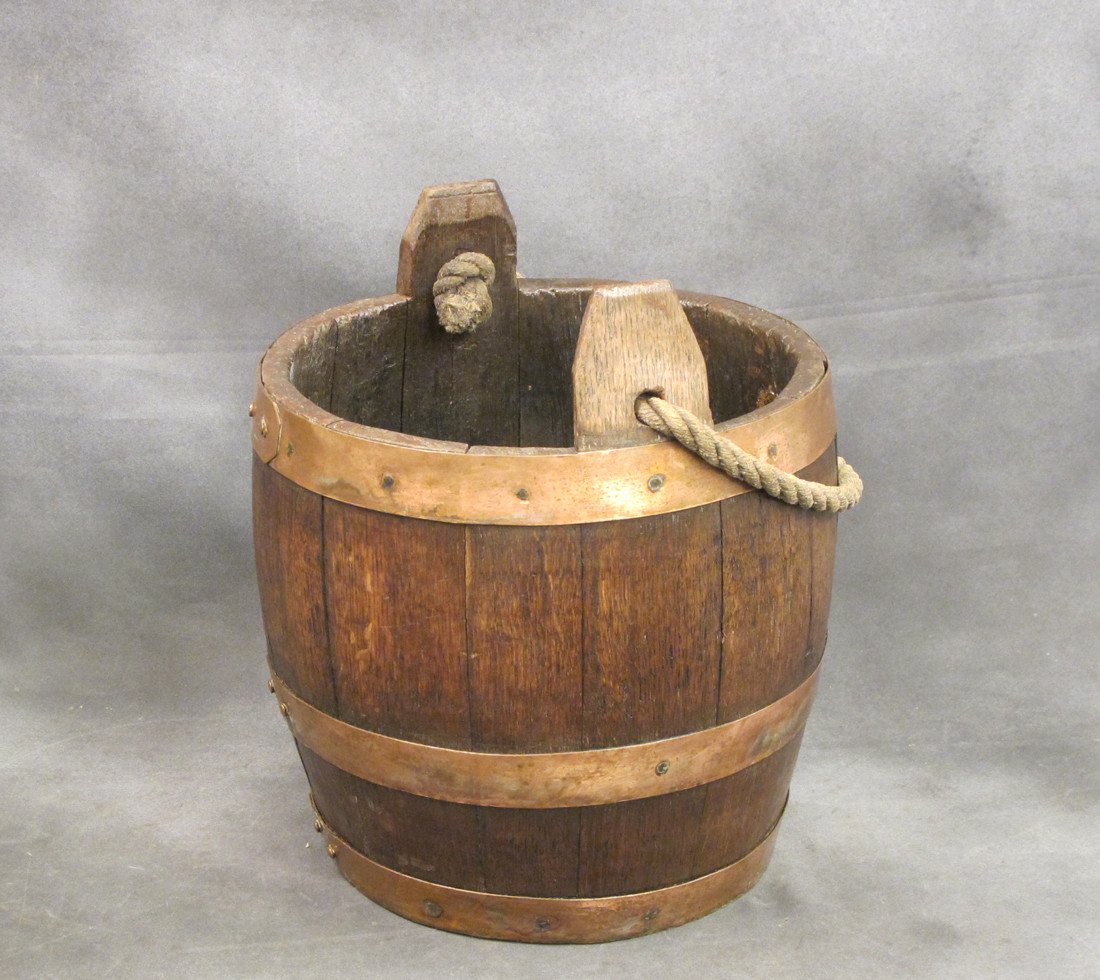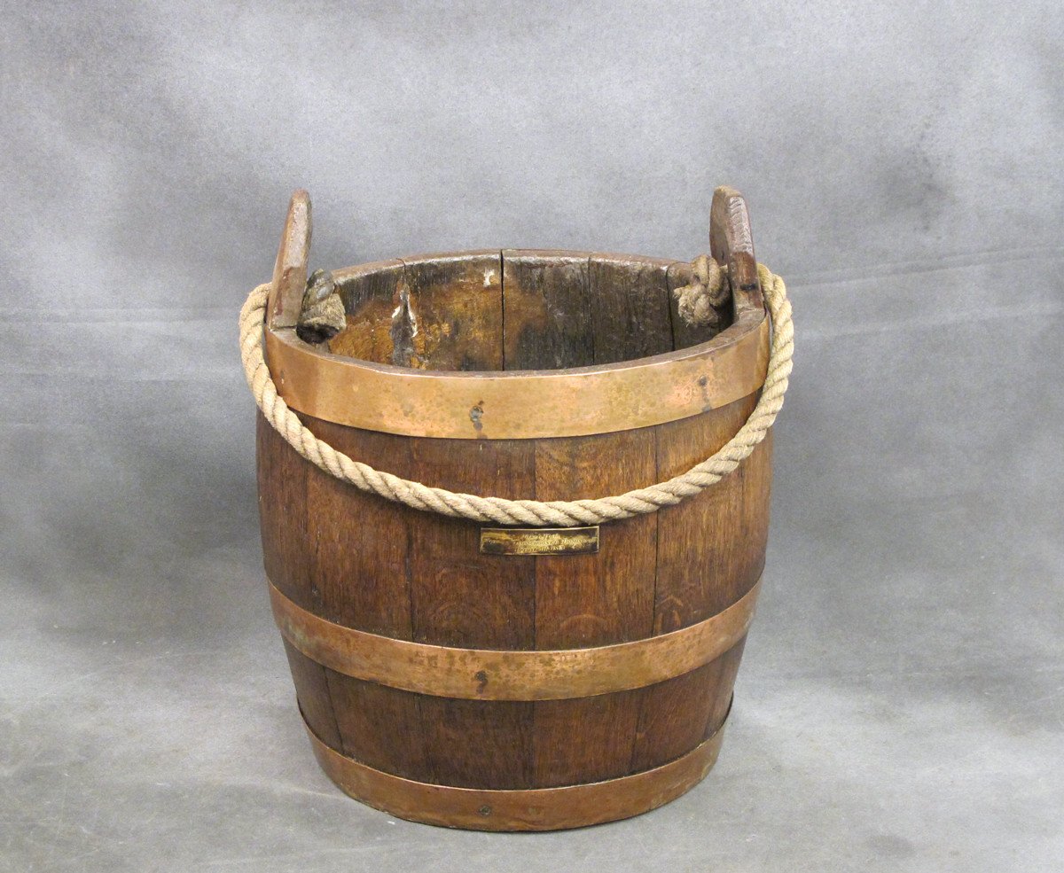 Original Item: Only One Available. Received from a Maritime Museum Collection in England, comes this massive Oak Wood Bucket complete with original rope handle and copper strapping.