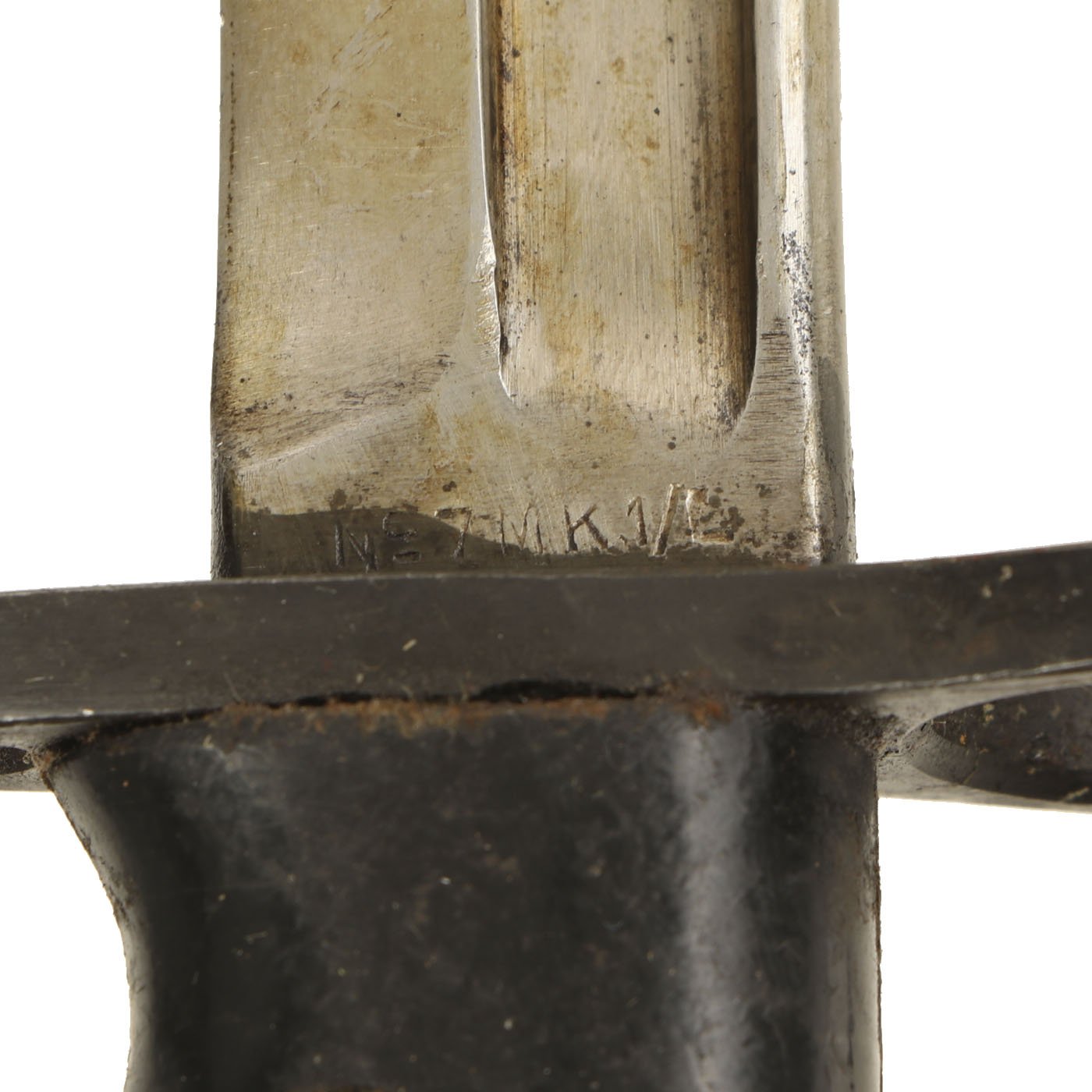 Original Item: Only One Available. This is absolutely original, never a common bayonet but now extremely rare. This interesting bayonet was intended for use with the Standard Enfield No.4 Service Rifle and the Mark 5 Sten Sub Machine gun. It is Broad Arrow marked and maker coded M47B on the pommel, which is the dispersal code for the Birmingham Small Arms Co (B.S.A) factory in Redditch, England. The ricasso is marked with No7 MK 1/L, for bayonet number seven, mark one, land service.