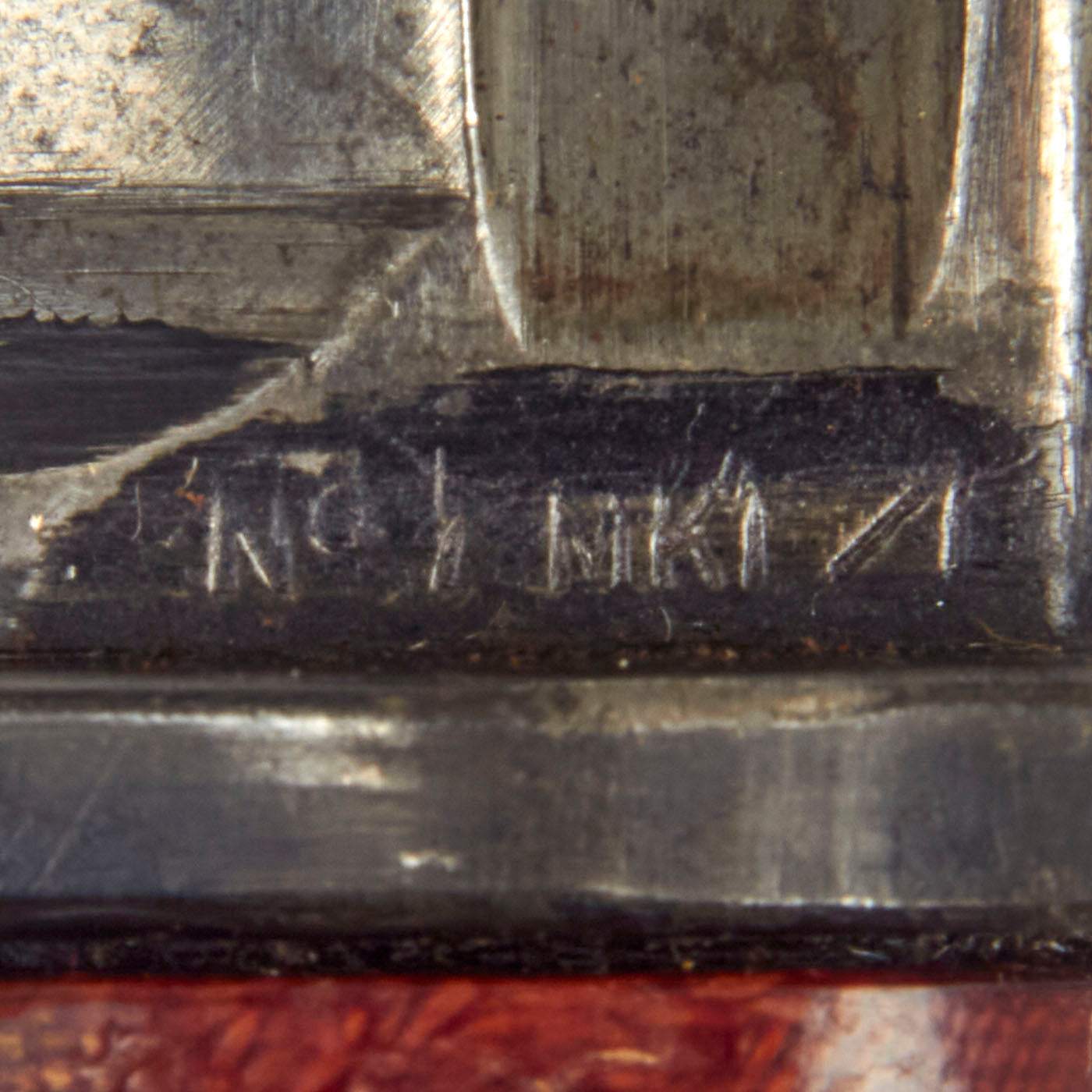 Original Item: Only One Available. This is a beautiful example of the once already uncommon but now rare No. 7 bayonet. The No. 7 Bayonet was a bayonet primarily used with the Sten Mk V submachine gun. However, it could be used on the No. 4 Lee-Enfield, but only for ceremonial purposes as the bayonet obstructed the path of the .303 round fired from the rifle. It is marked with on the blade ricasso next to the year 1946.