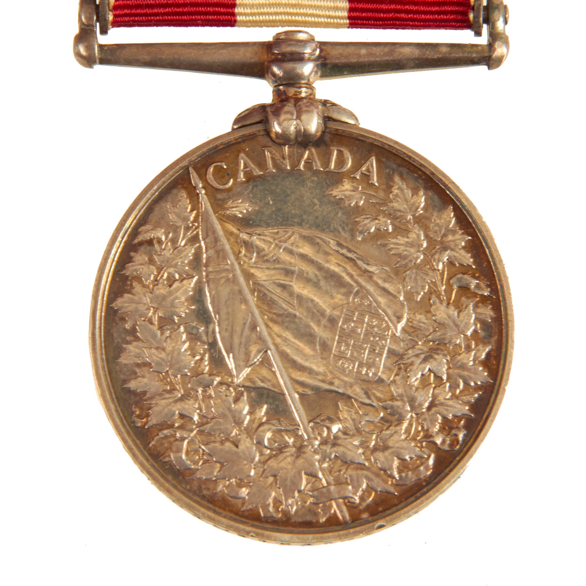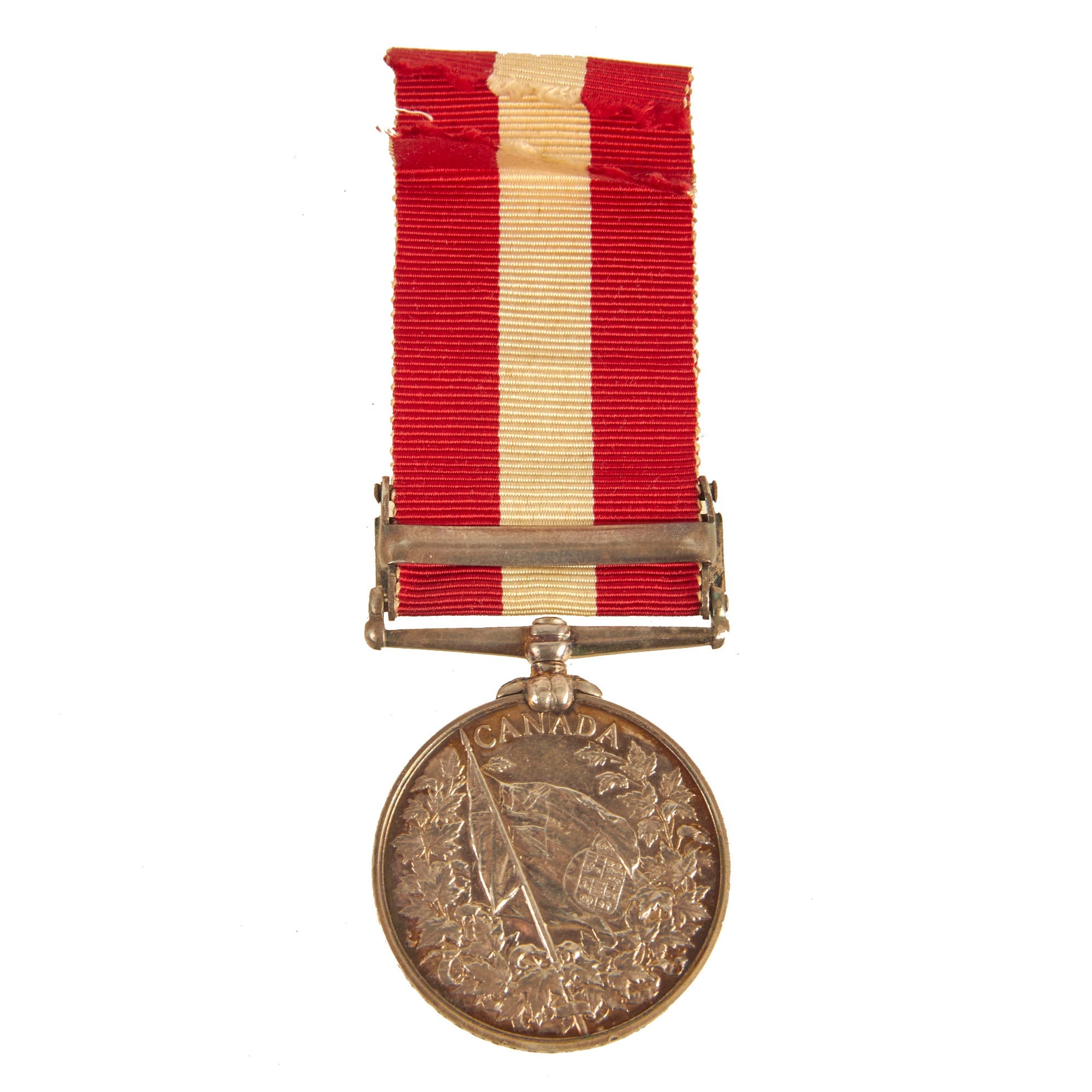 This medal is a fine example of one of only 13,000 General Service Medals that were awarded with the Fenian Raid 1866 Clasp. The Canada General Service Medal was a campaign medal awarded by the Canadian Government to both Imperial and Canadian forces for duties related to the Fenian raids between 1866 and 1871. The medal was initially issued in 1899 and had to be applied for. The application period was later extended to 1907, then to 1928.