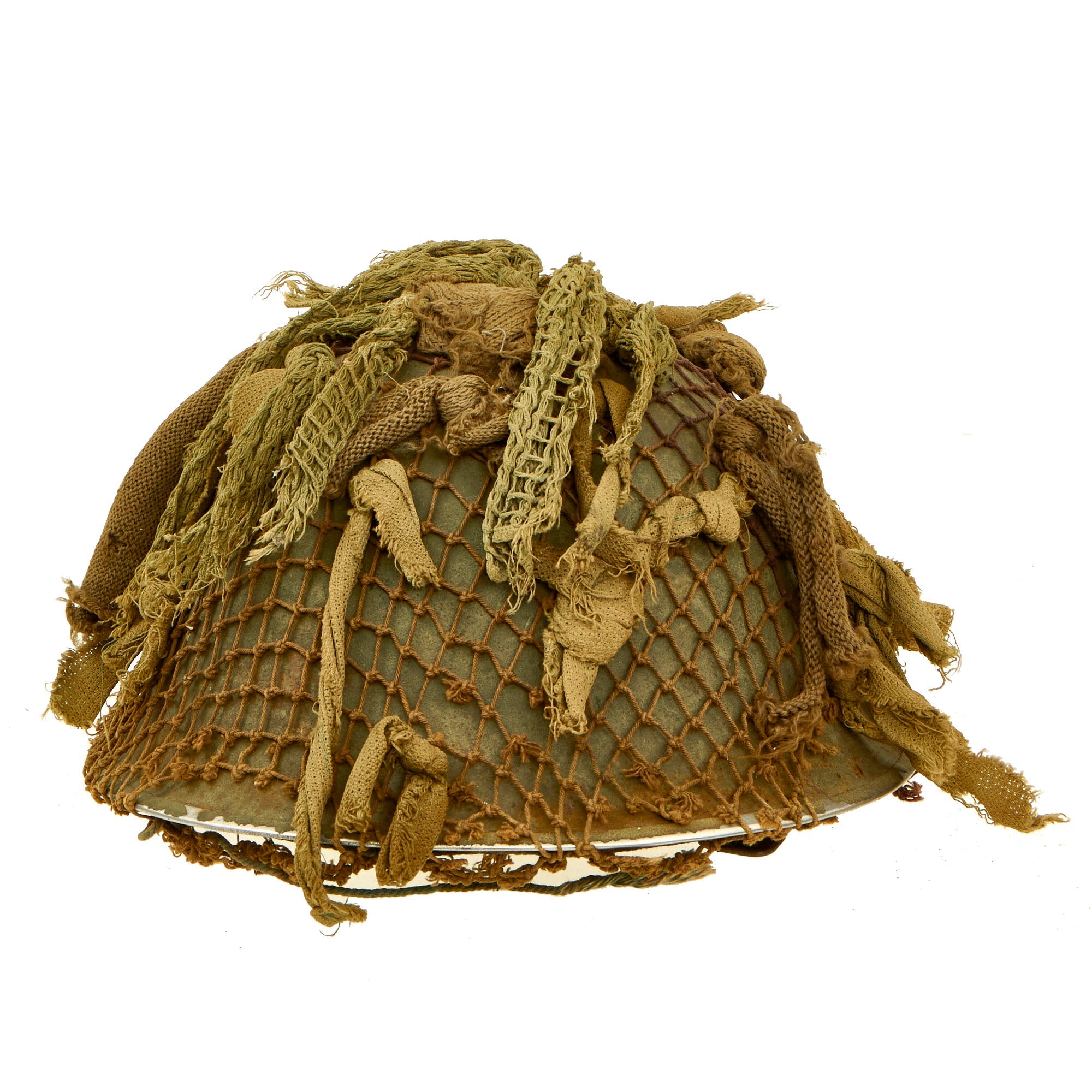 This example is in wonderful condition and even has an original helmet scrim with an Artillery Regiment painted decal that has a “Z” in the center signifying a regimental commanding officer. The paint is retained quite well though there are areas of fading and loss but nothing too significant. The helmet itself is faintly marked and dated on the inside with BMB and 1952. This is for 1952 manufacture by Briggs Motor Bodies of Dagenham, England, who manufactured Brodie and MkIII helmets as well.