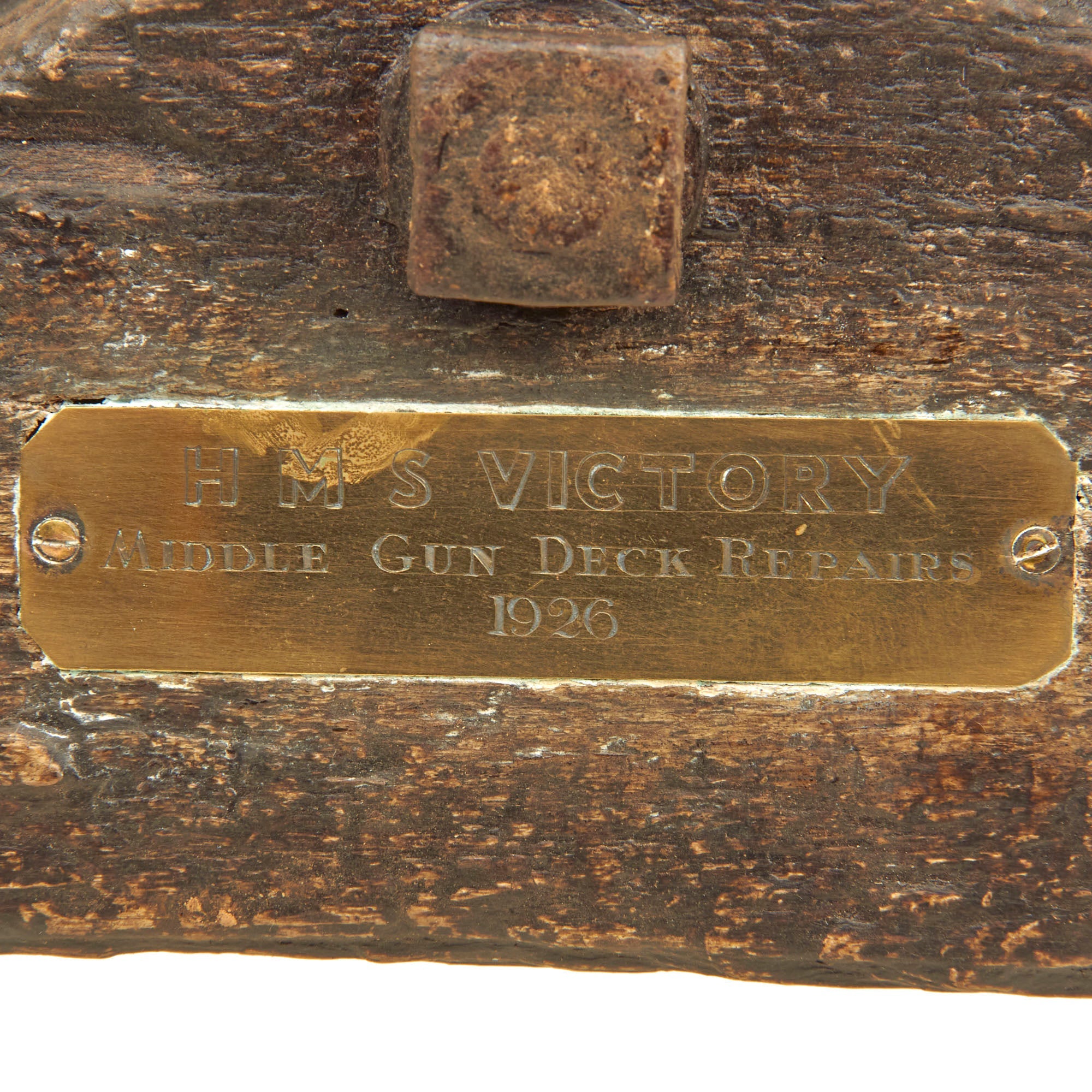 Original Item. One of a Kind. H.M.S. VICTORY was Admiral Lord Nelson's Flagship at the Battle of TRAFALGAR that took place in 1805, at which Lord Nelson was killed in Action. The ship is undoubtedly the most famous British Naval Vessel in history. It was originally scheduled to be broken up, but public outcry led it to be spared. It was eventually visited by Queen-in-waiting Victoria, which greatly raised interest in the vessel, which began to see large numbers of tourists. It did eventually sink due to age, but was subsequently raised.
