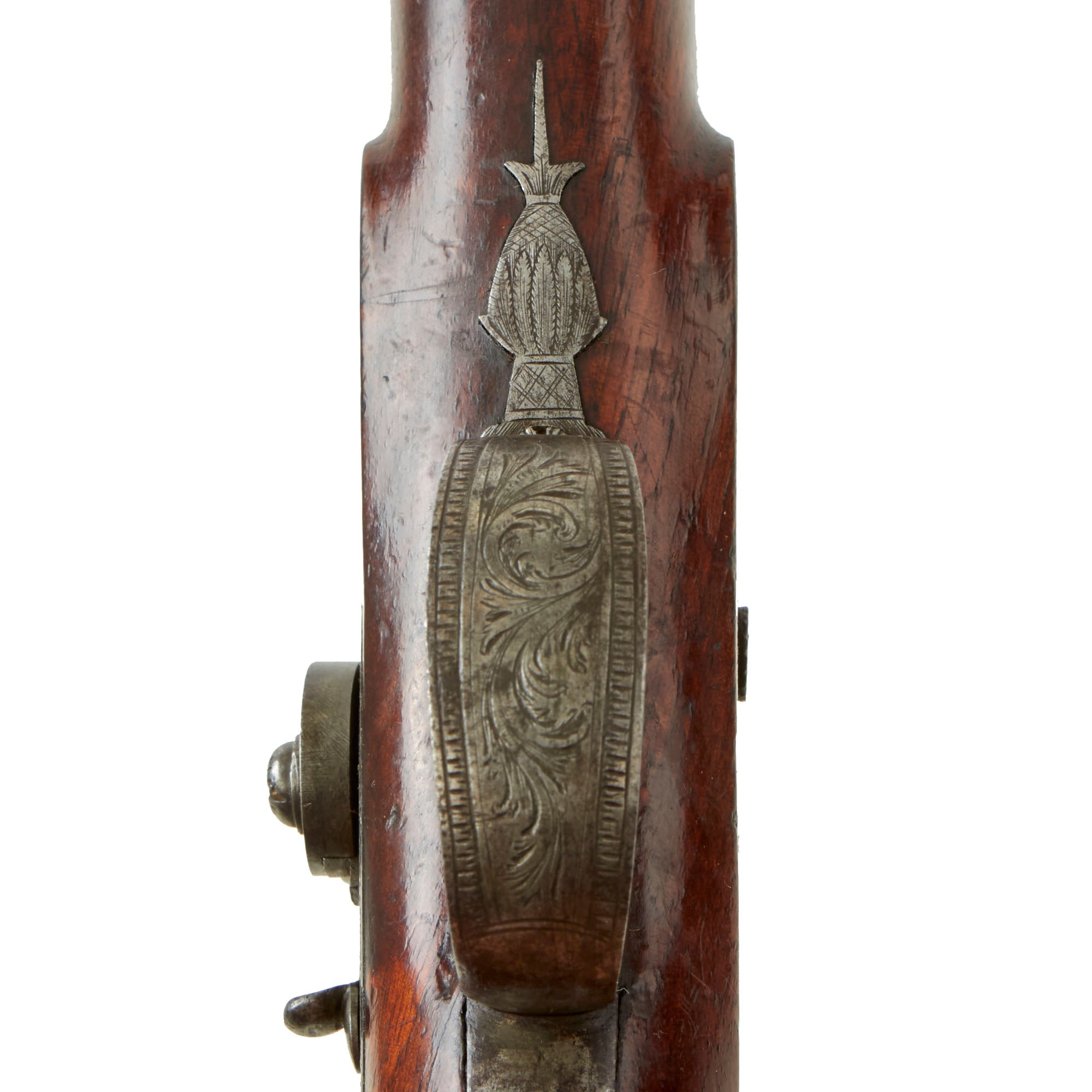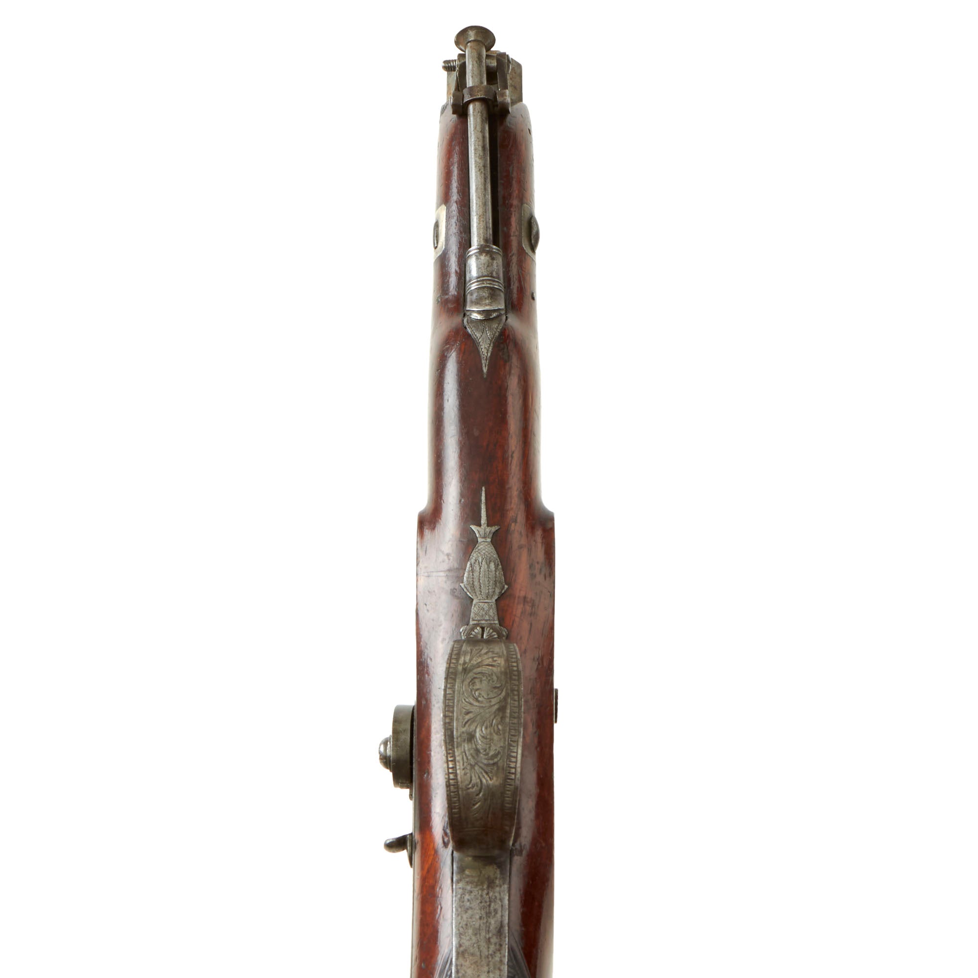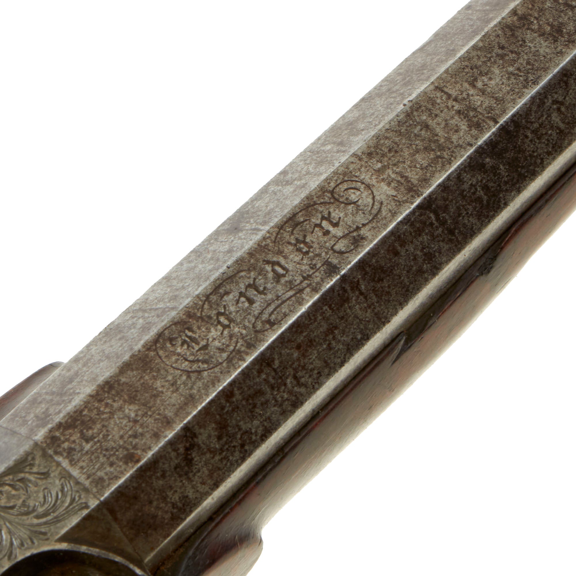 Original Item: Only One Available. This is a lovely British Officer's private purchase percussion pistol, from just before the start of Queen Victoria's long reign. It is marked on the lock plate with the name Darmen, which we were unfortunately not able to find much information on. We have seen a few other examples of their work, but have not been able to find out much else. This is the first firearm of any type that we have had by this maker, and we estimate it was made circa 1830.