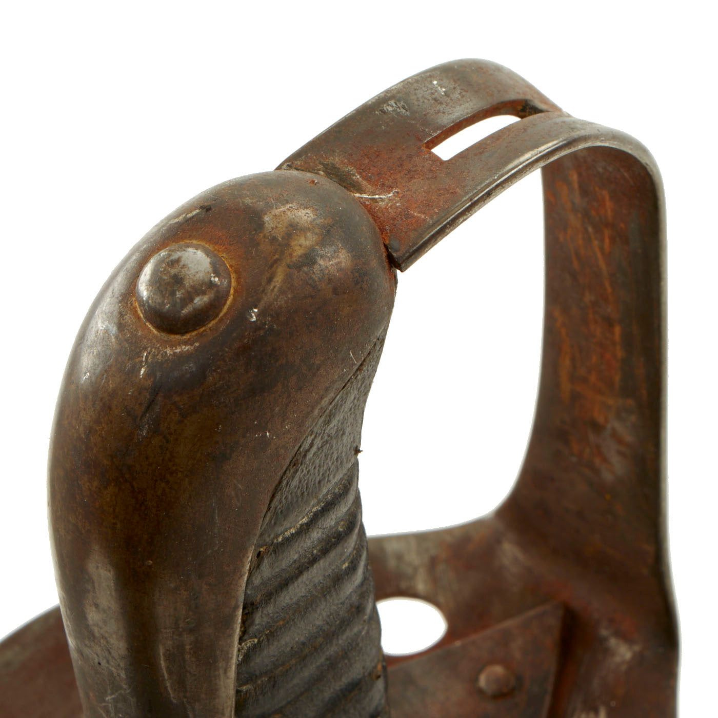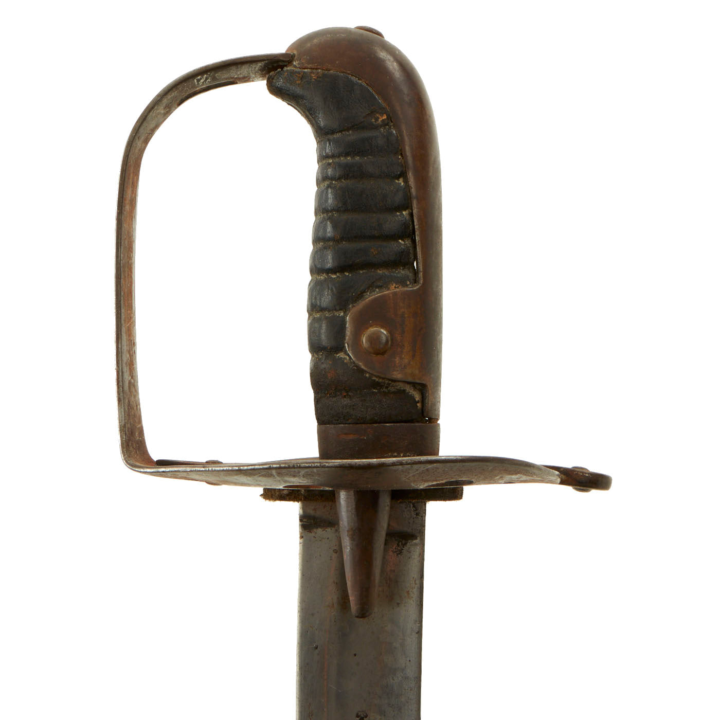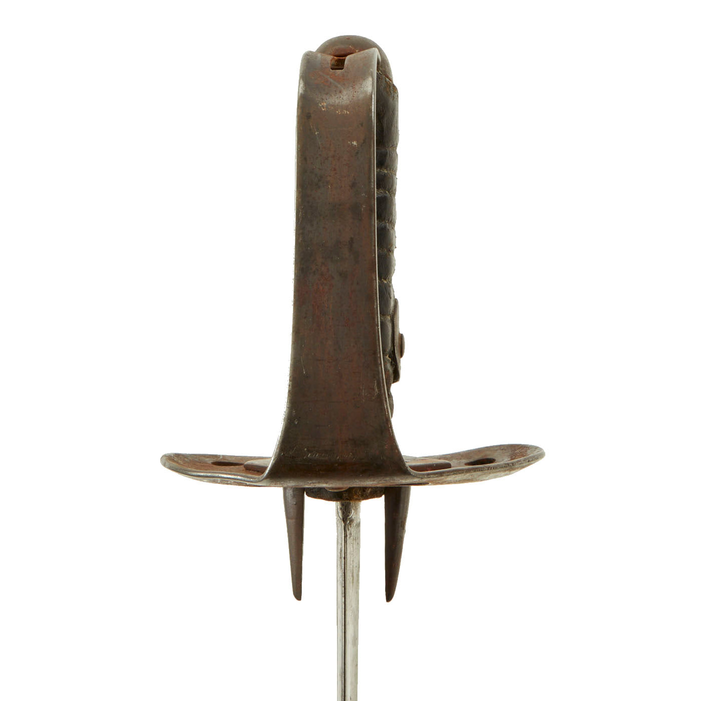 It still retains its original double sided shell guard and the grip retains its leather covering, though the wire wrapping is no longer present.