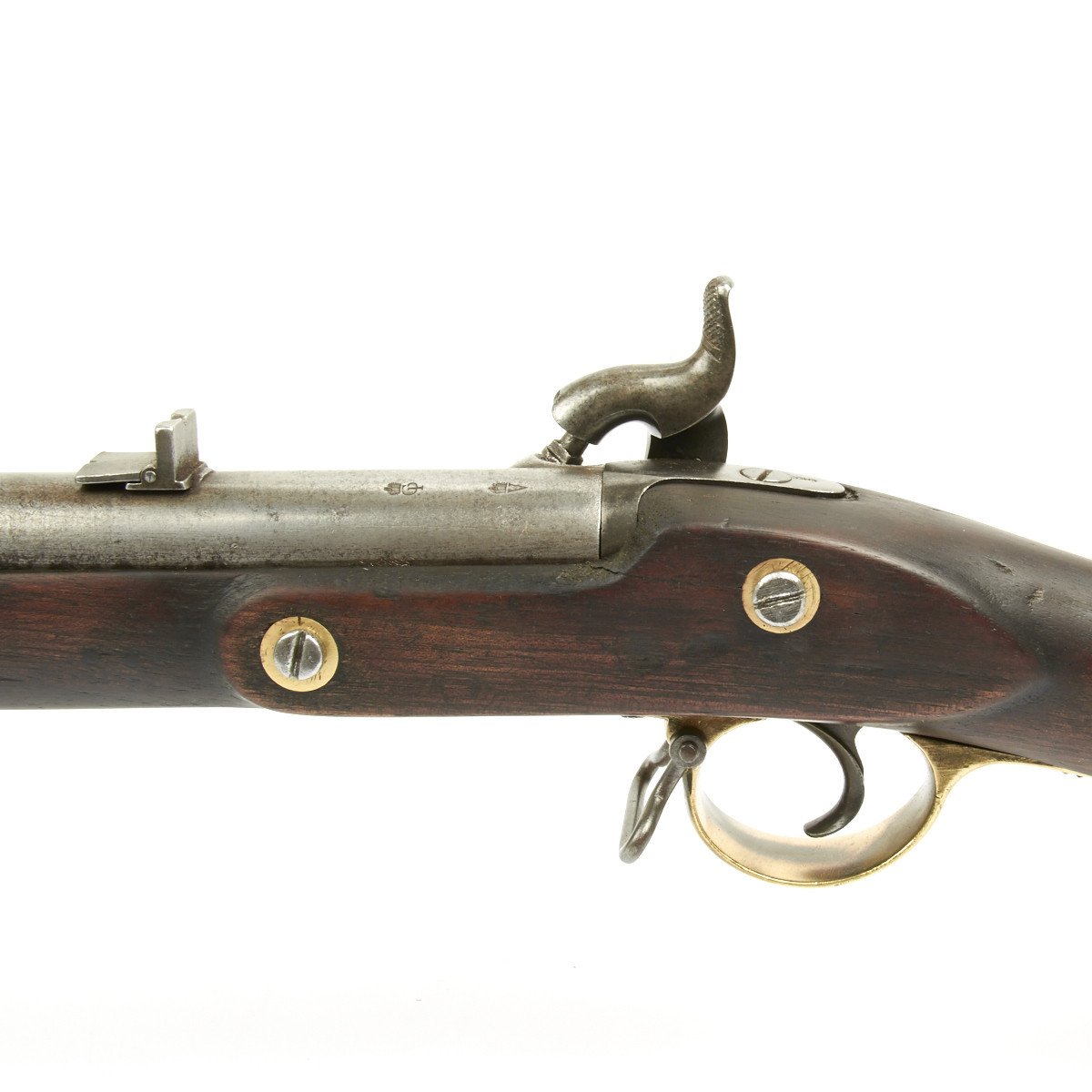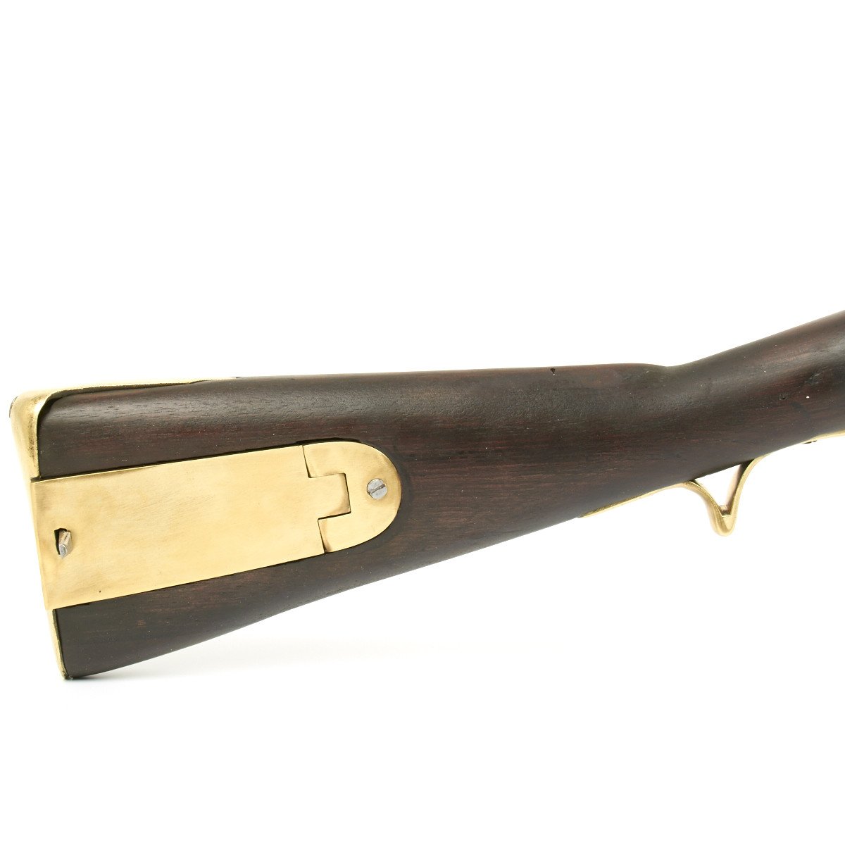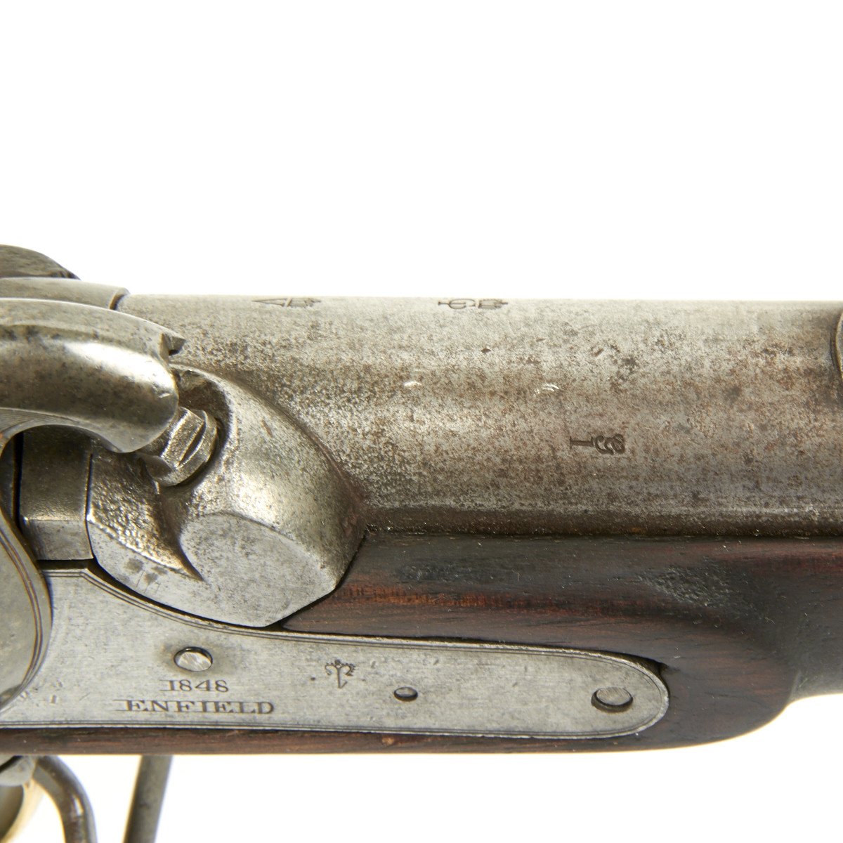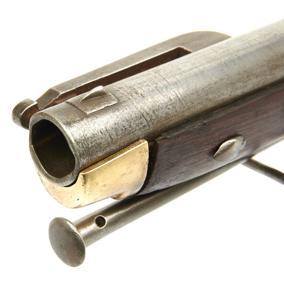 Original Item: Only One Available. Found in the Nepalese Cache purchase this is an Enfield made and British proofed 2nd Model Brunswick Percussion Rifle for belted ball first introduced in 1843 (See "Small Arms of the East India Company 1600-1856" by David Harding, Volume 2 pages 182/183) by the East India Company. In 1847 the British Government adopted the same pattern. Once again private enterprise led the way for government modernization.