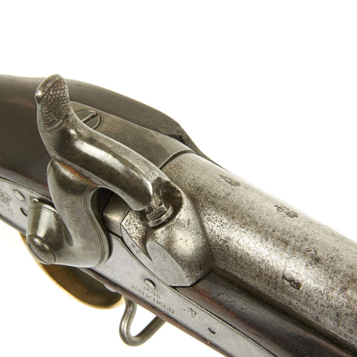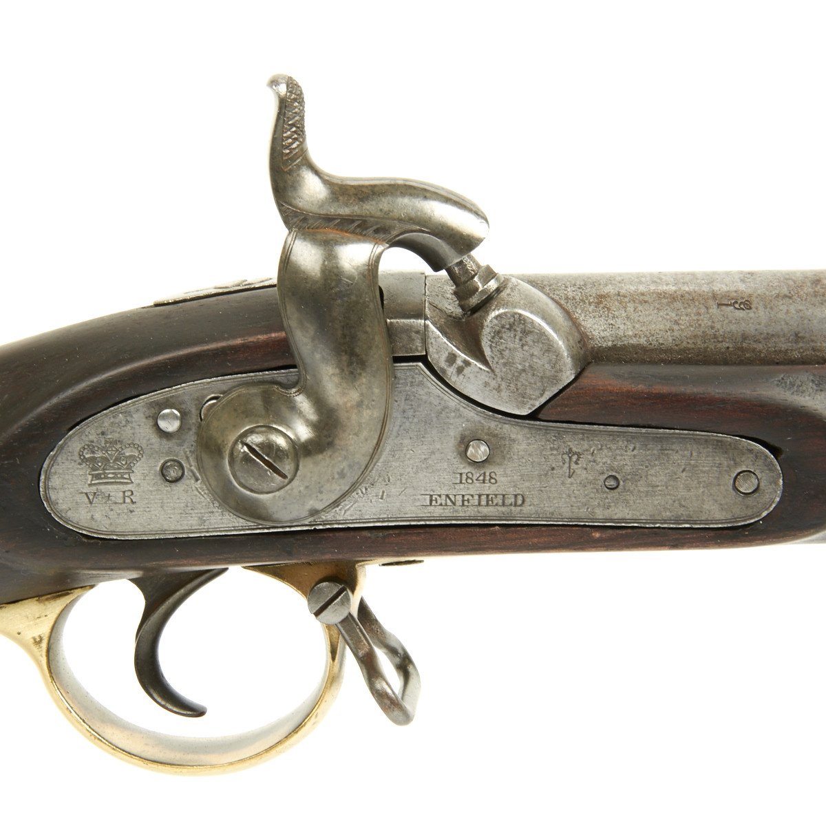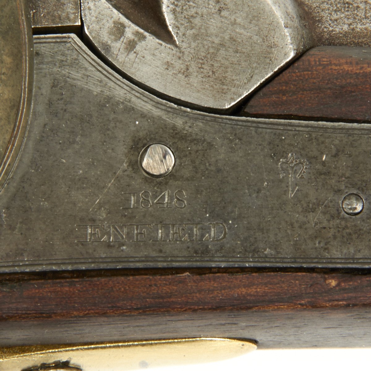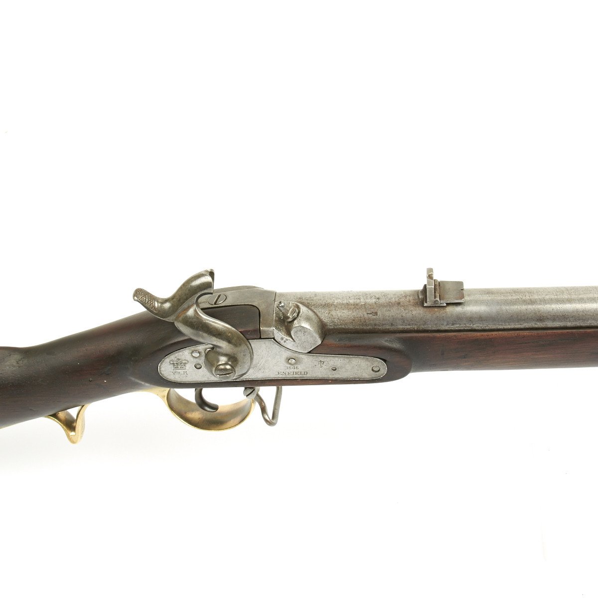 This is a very rare and desirable rifle, made at ENFIELD in north London dated 1848 with it's side action lock bearing Queen Victoria's cypher of "Crown over V.R.".