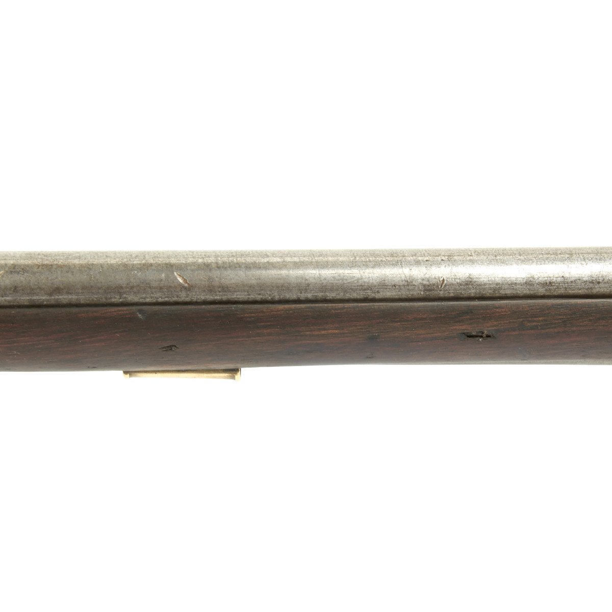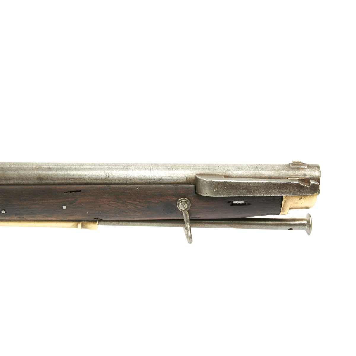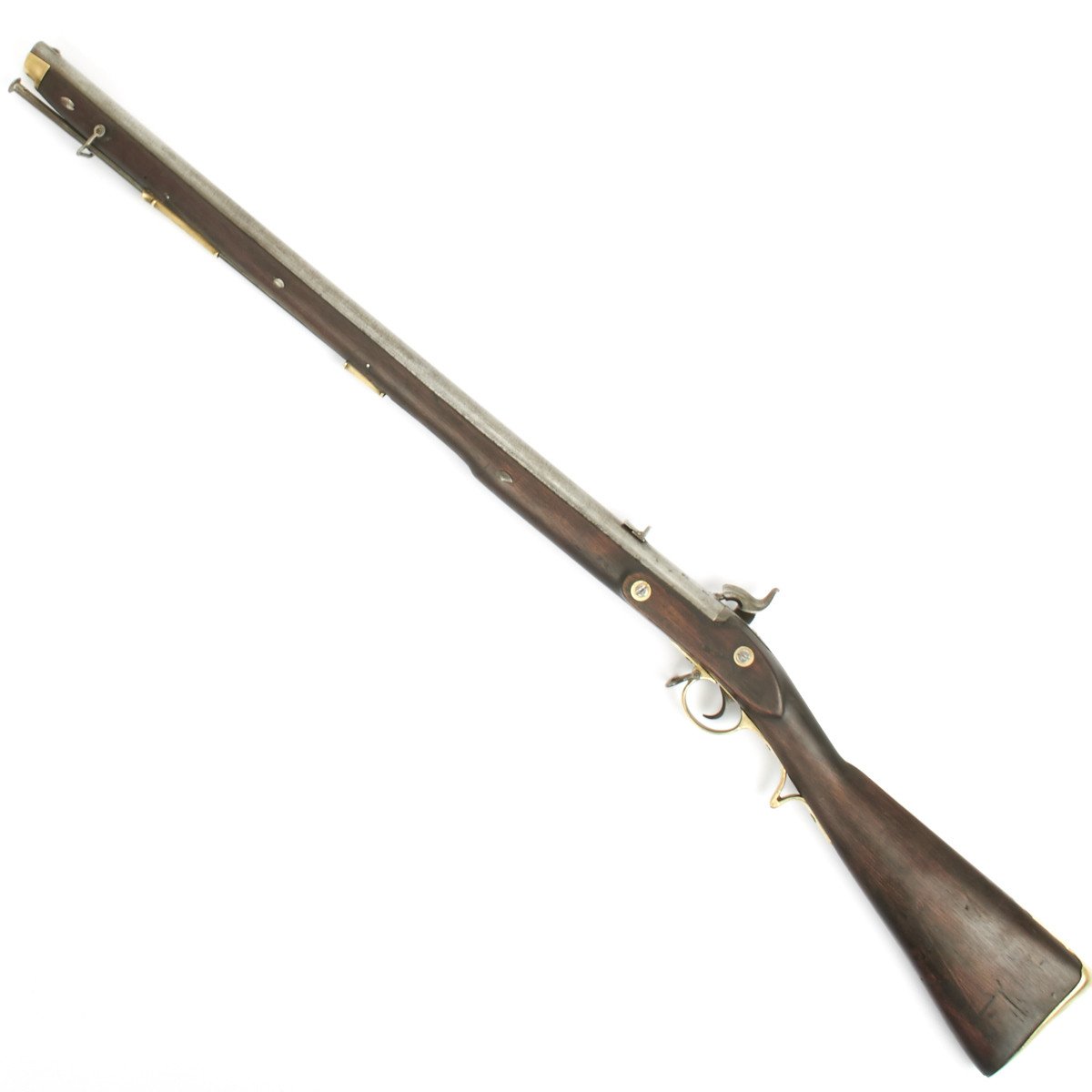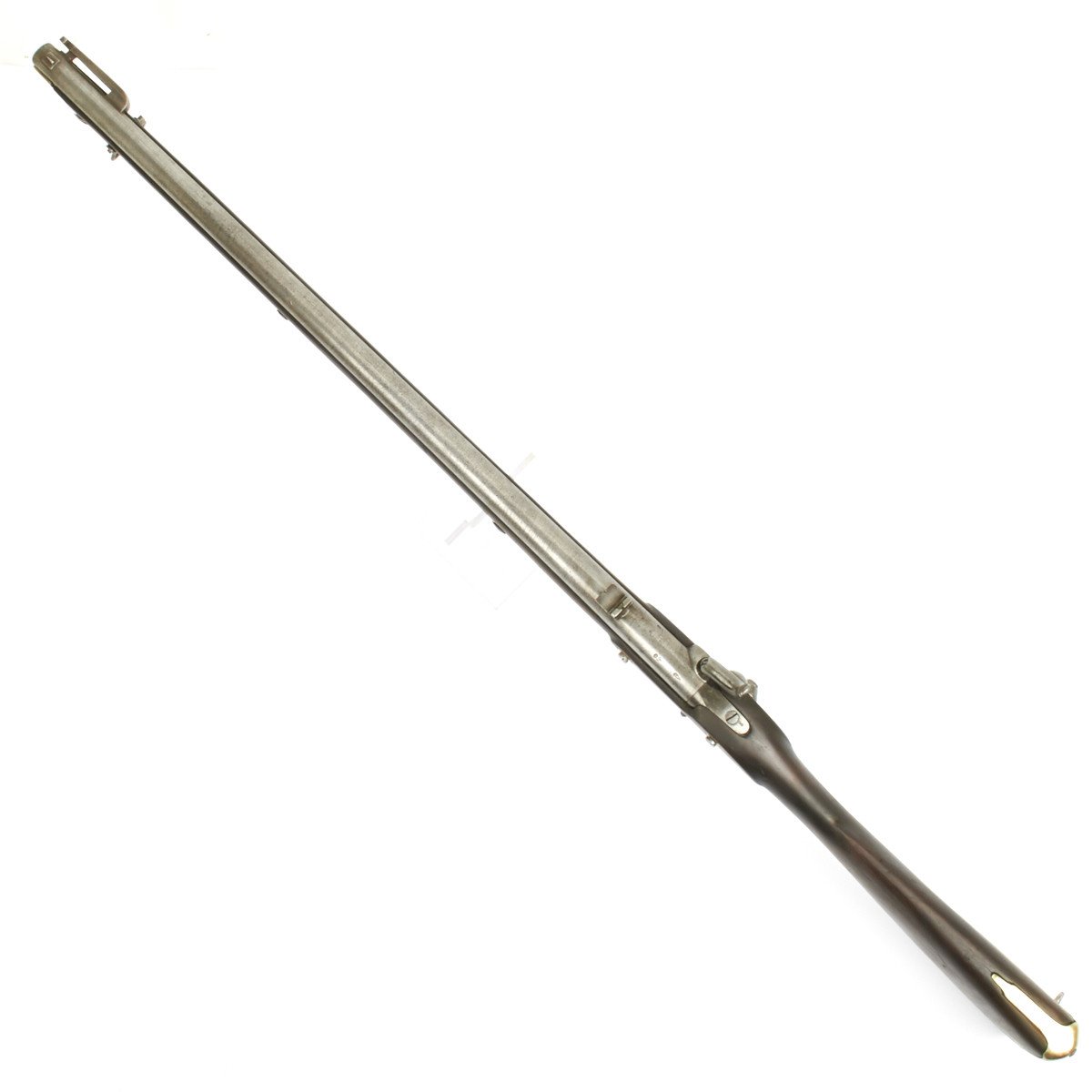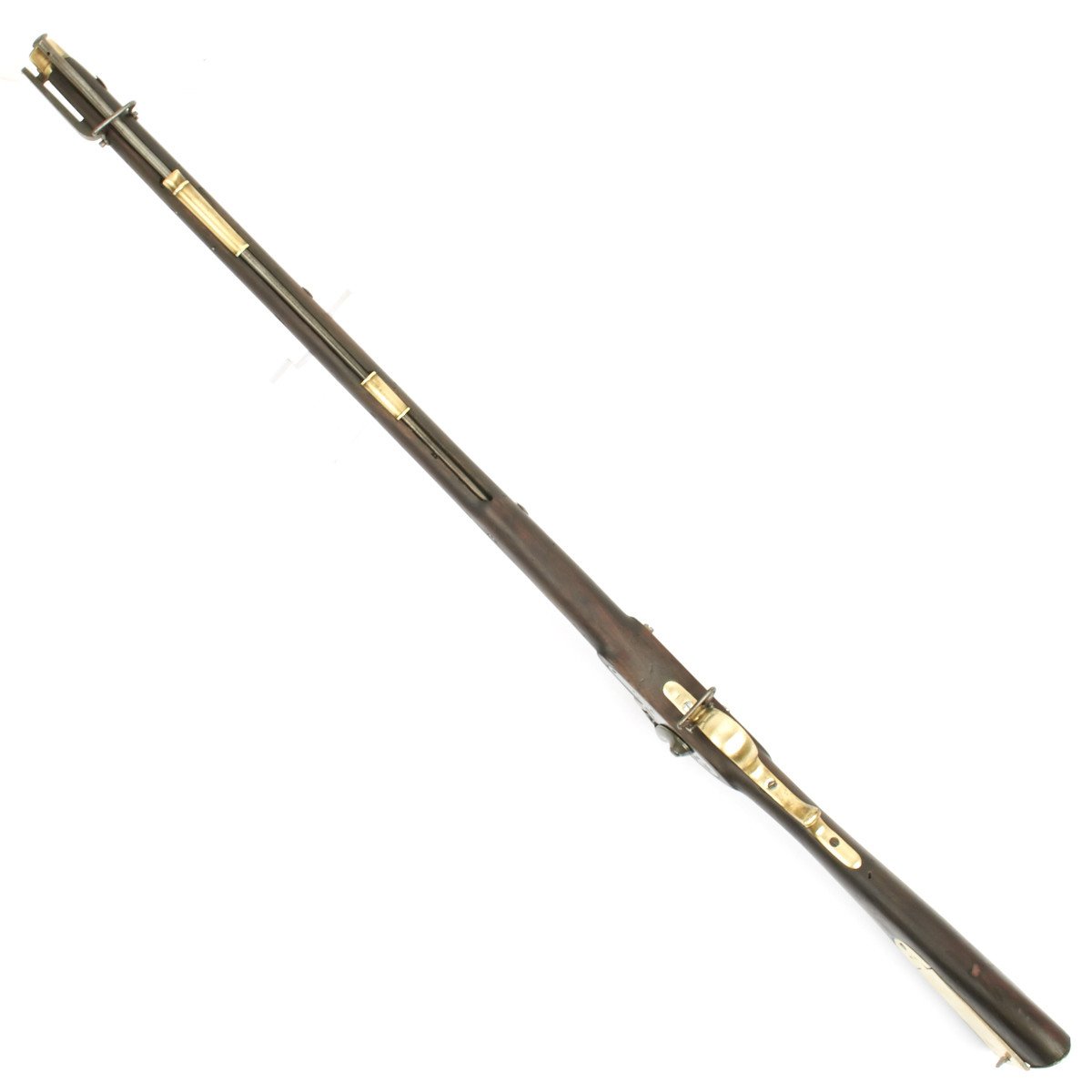 Rifle measures 47.5" overall with a 30" rifled barrel bearing British proof markings. Features include a substantial two leaf back sight, all brass mounts, including large patch box and correct ramrod still in place. Interestingly there are no visible Nepalese markings anywhere on the gun.