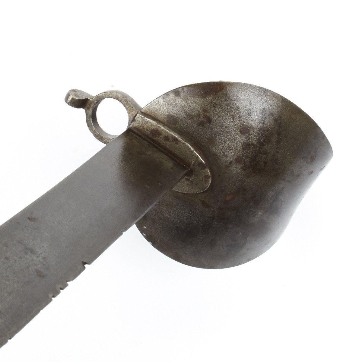 Original Item: Only One Available. One of Britain's most romantic bayonets this really looks like a Pirate's Boarding Cutlass but it doubles as a bayonet that fits the P-1858 Two Band Enfield Percussion Rifled Musket. Principally used by the Navy, these were also carried by Artillery and Pioneers on various occasions since it really is an all-purpose weapon. This type of bayonet was also utilized during the U.S. Civil war.