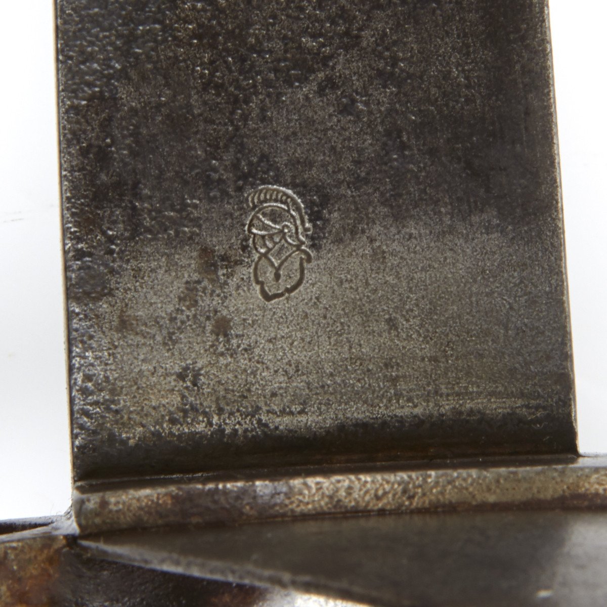 The blade marked with the Contractor's knight's helmet logo, the hard leather grips are in truly excellent condition showing virtually no wear or damage from water which causes swelling and distortion.