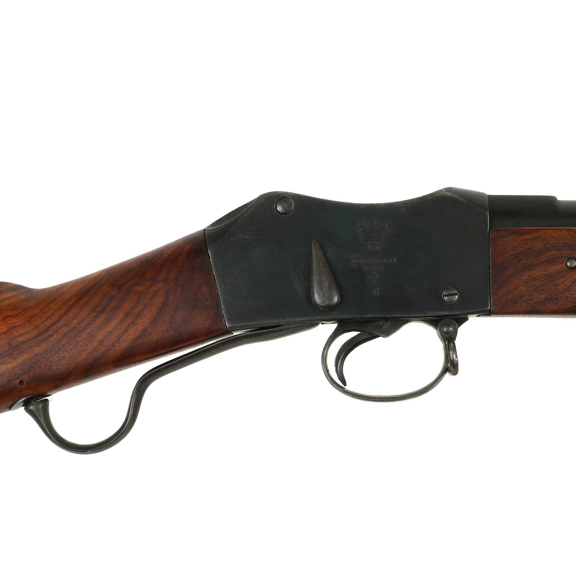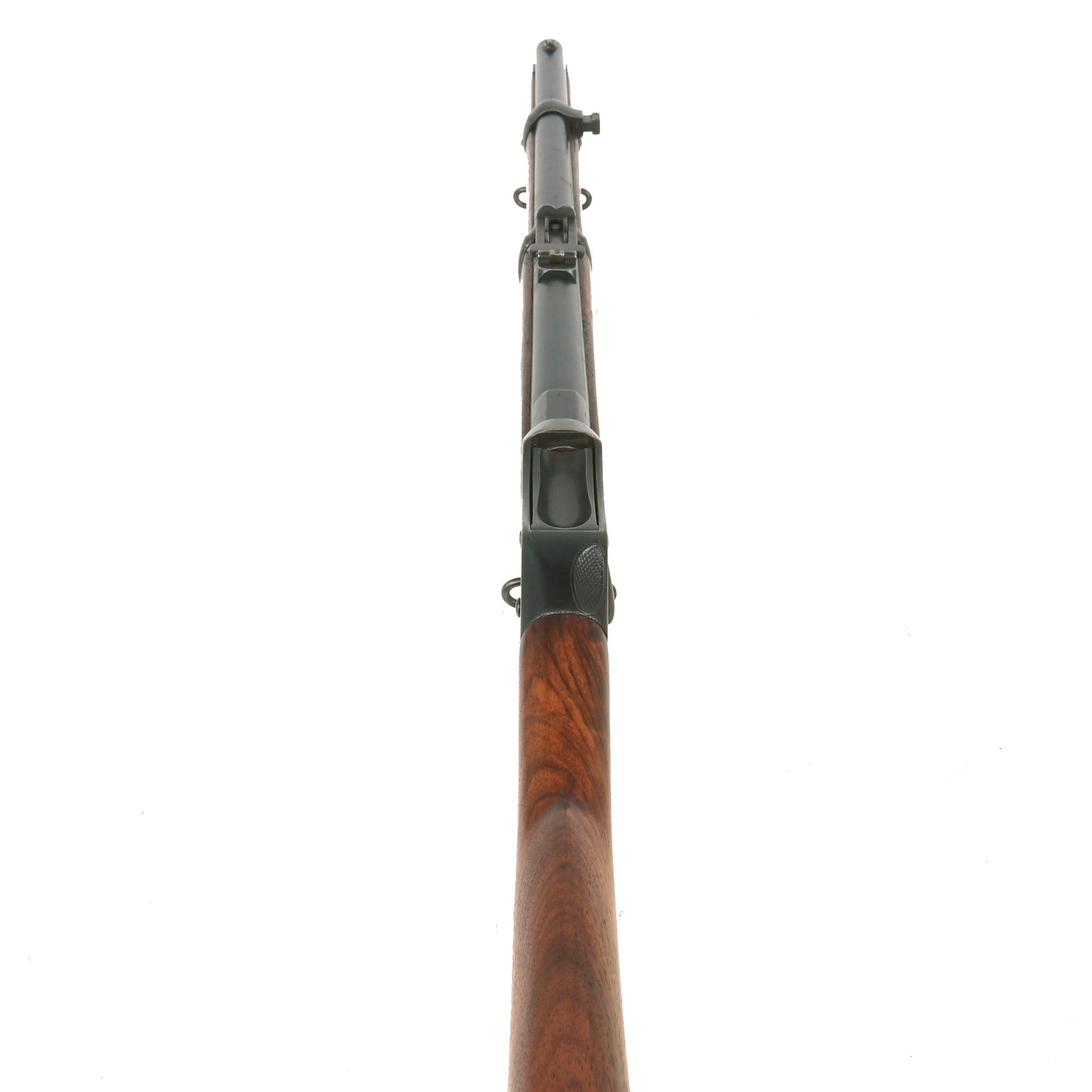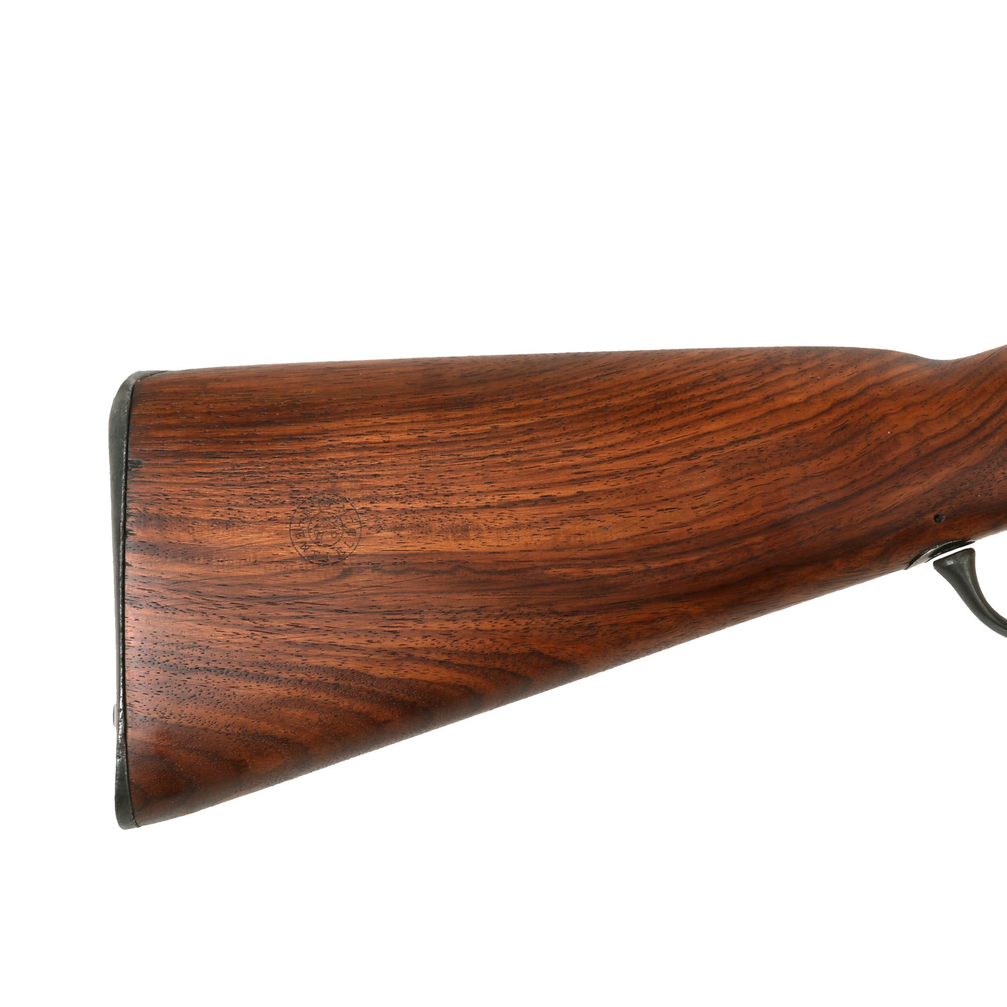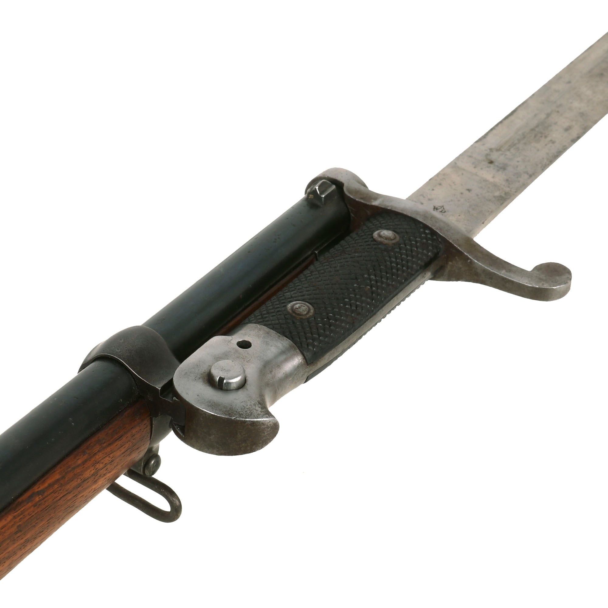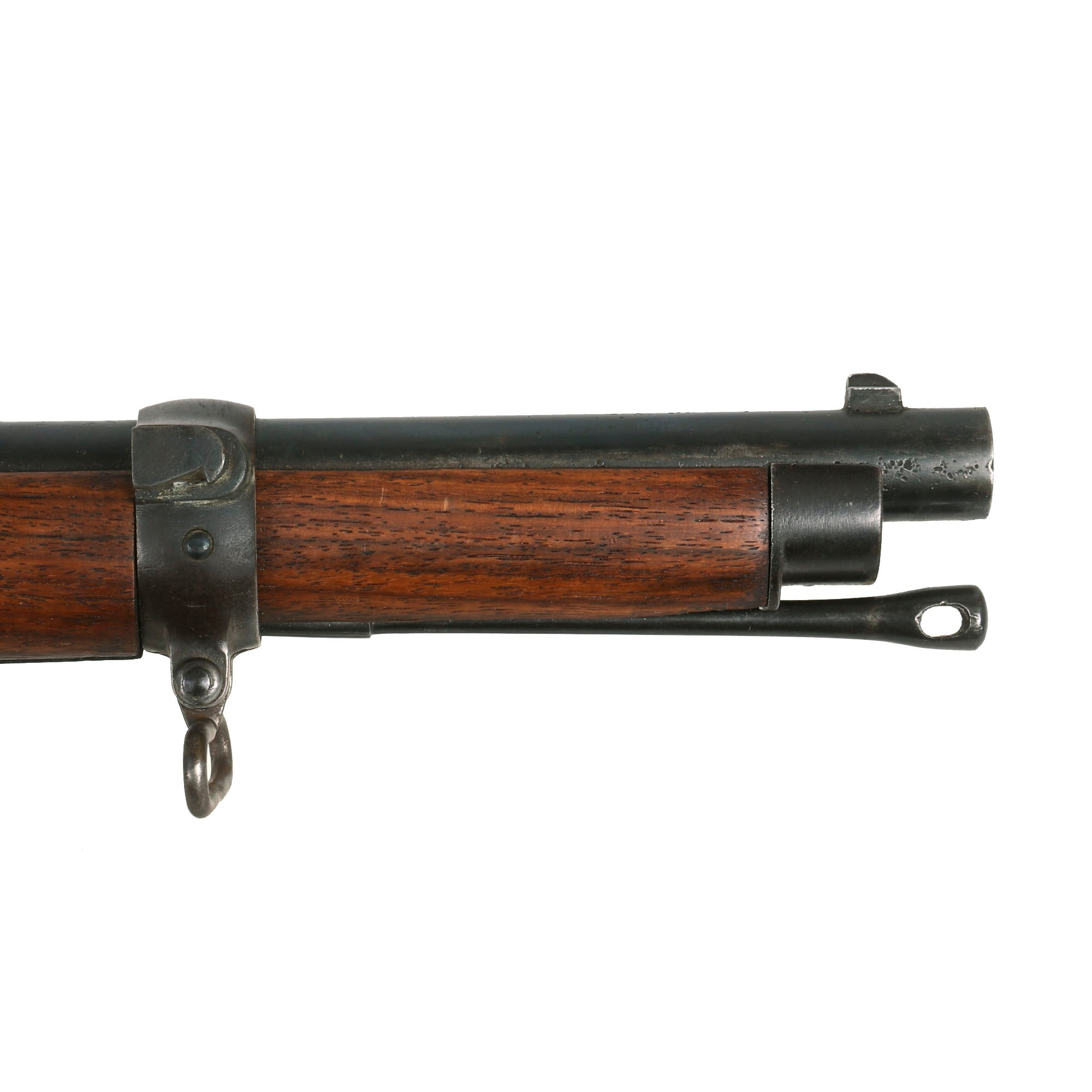 The Martini-Henry is probably the most famous military rifle of the Victorian era incorporating the early short lever with 33" barrel in the new .45 caliber. This was the first manufactured breech loader to be adopted for general issue by the British Army. Internationally known for its role in the movies "Zulu" and "Zulu Dawn" it should be noted that at the Battle of Isandlwana in January 1879 where the British lost its entire command of 1300 men, the Zulu's suffered in excess of 2000 casualties. Followed by the memorable action at Rorke's Drift, the Martini Henry Rifle more than any other represents British Colonial rule during the Victorian era.