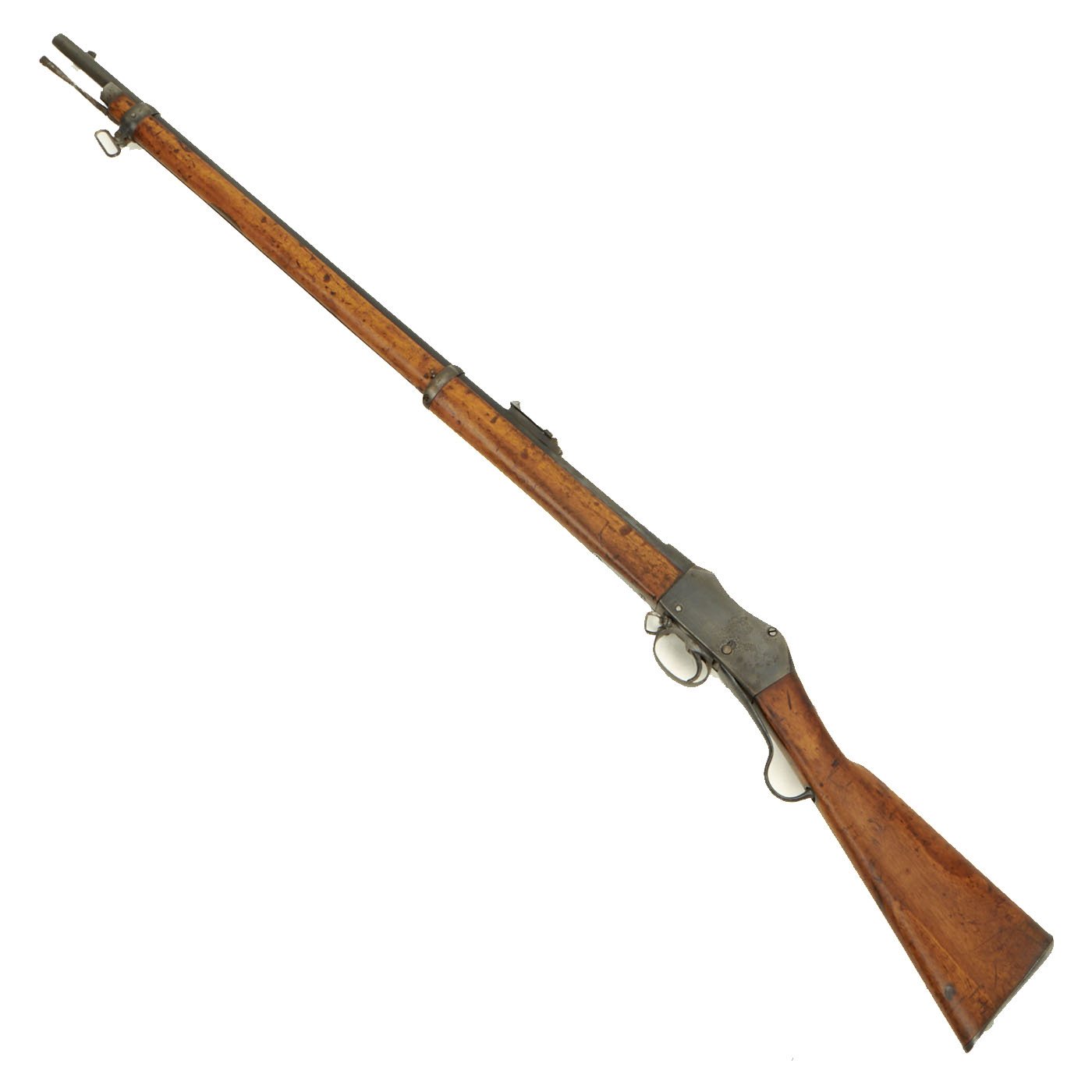 Original Item: Only One Available. Now this is something that we have never had before! Here we have an excellent British Martini-Henry MkIII rifle made by the London Small Arms Company in 1883. This was not part of the Nepal purchase, and actually it looks to be a rare "private purchase" example, which does not have any military issue markings on it. Instead it just has the maker marking and logo on the receiver over the date: