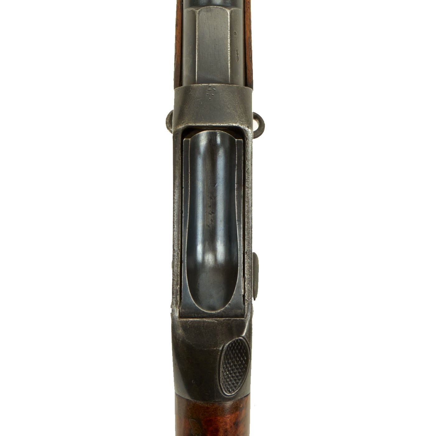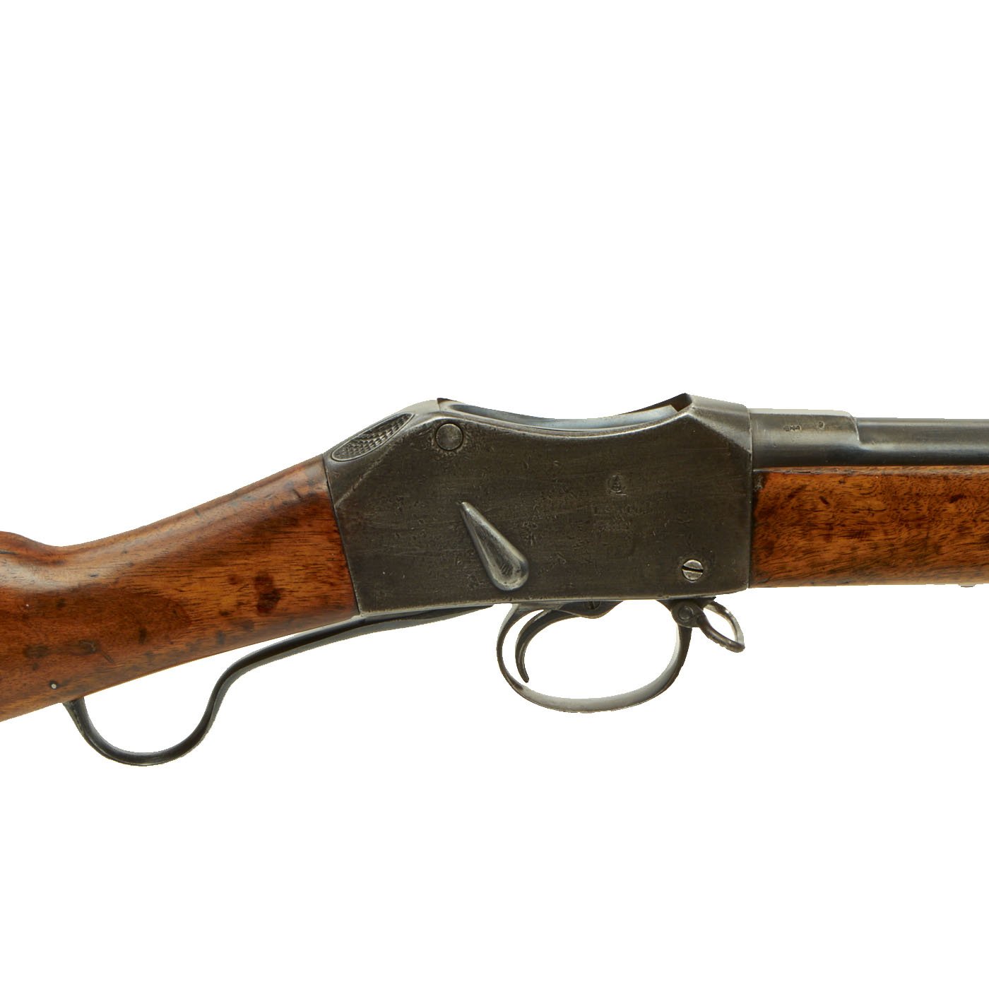 This example is in very nice condition, as the pictures show. The action cycles and dry fires, and the bore shows clear rifling, with a partly bright finish. The stock is a lovely color, showing usual wear from use.