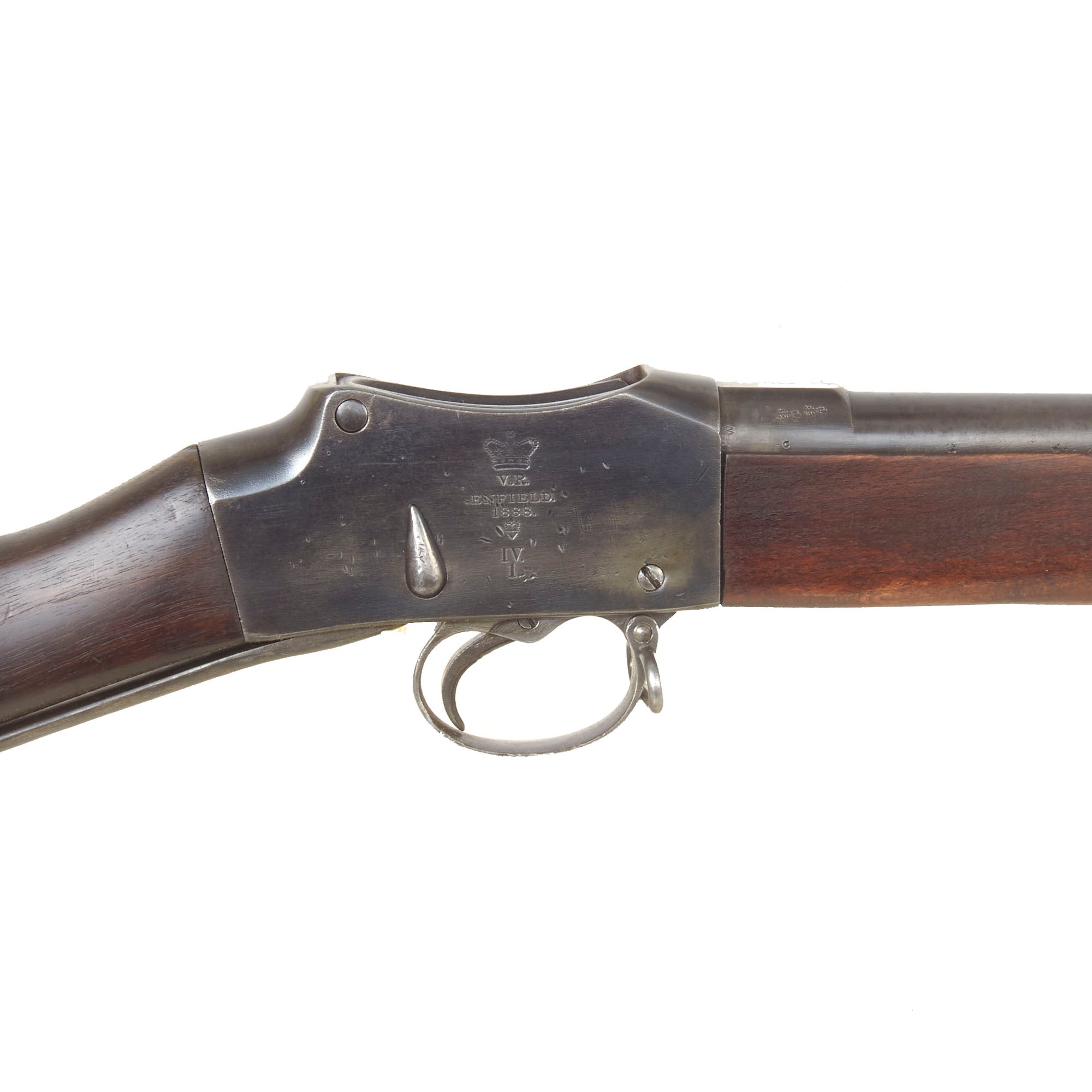 With the decision to make general issue of the Martini Henry MKII & MkIII to the militia and Volunteers in January 1885 and the impending new .303" caliber and the suspension and ultimate cancellation of the .402" bore Enfield Martini in June 1887, it was decided as a short term measure to convert those 65000 .402" Enfield Martinis already made into a useable .577/450" arm. The new rifle was to be designated the Martini Henry MkIV at a cost to convert those arms was expected to be 6s 6d per piece.