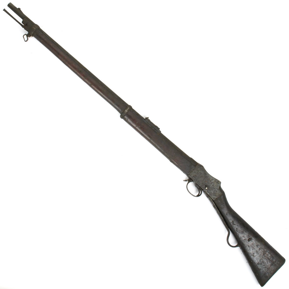 Original Item: Part of our exclusive discovery of antique firearms in the royal palace of Nepal. The great success of the P-1871 Martini Henry Short Lever Rifle had only been marred by the occasional difficulty experienced with the ejection of the spent cartridge from powder residue fouling the chamber.