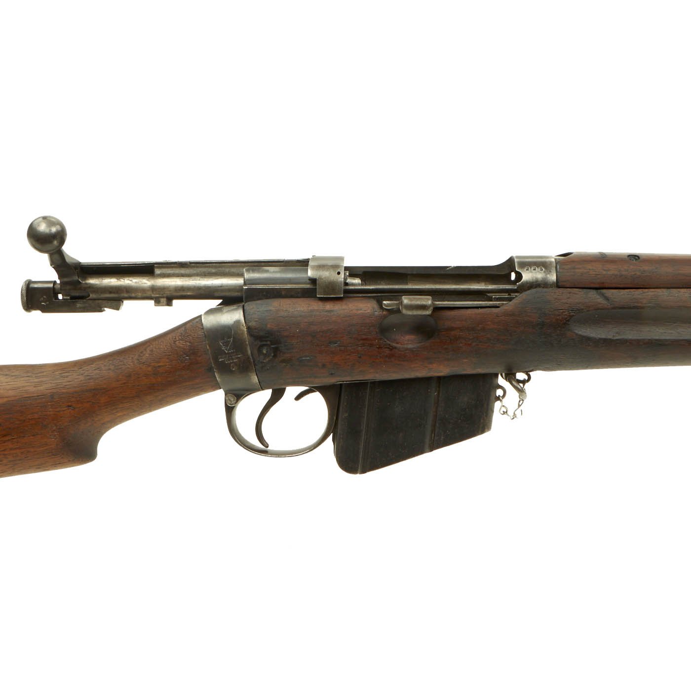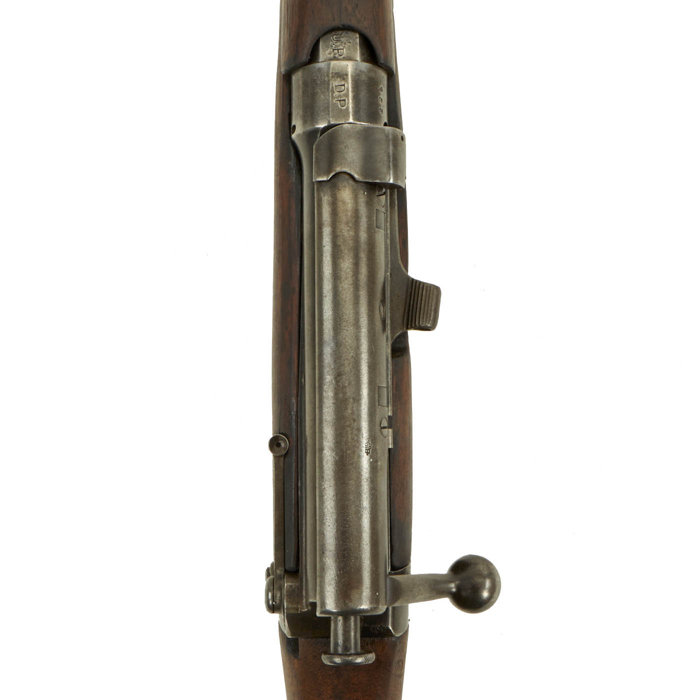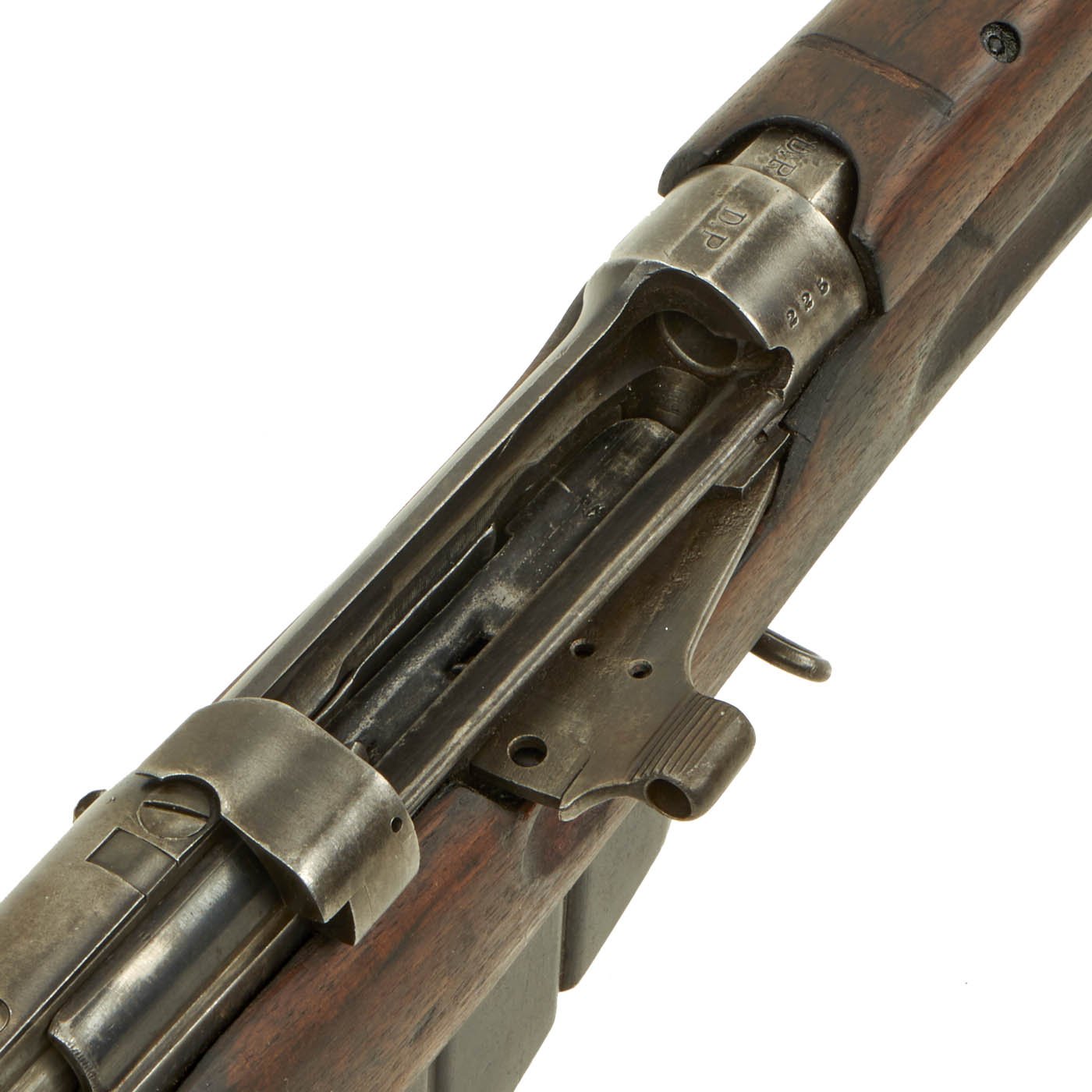 This example was made at the Royal Small Arms Factory at Enfield Lock, a storied production factory in operation since 1816 as one of the major manufactures of arms for the Great Britain. There does not look to be any star / asterisk marking next to the mark of arm, so this did not have any updates after production. It also is marked with serial number 225 on the front of the receiver. This example comes complete with dust cover to the bolt, which is often absent. The long distance volley sights are still present and functional, and many components are proof marked.