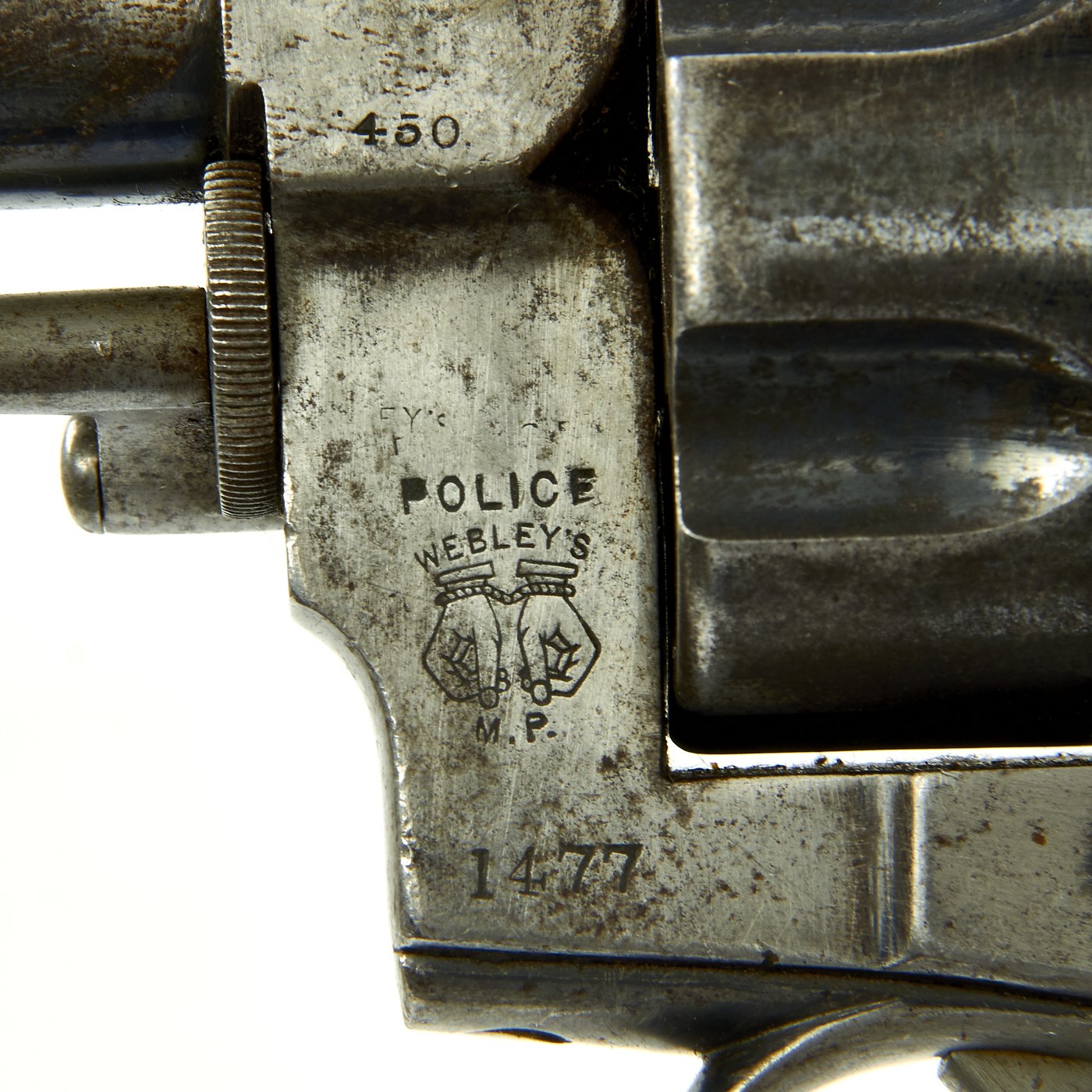 Here is a period British Metropolitan Police Solid-Frame Revolver from that time, actually marked by the manufacturer on the top of the barrel strap: