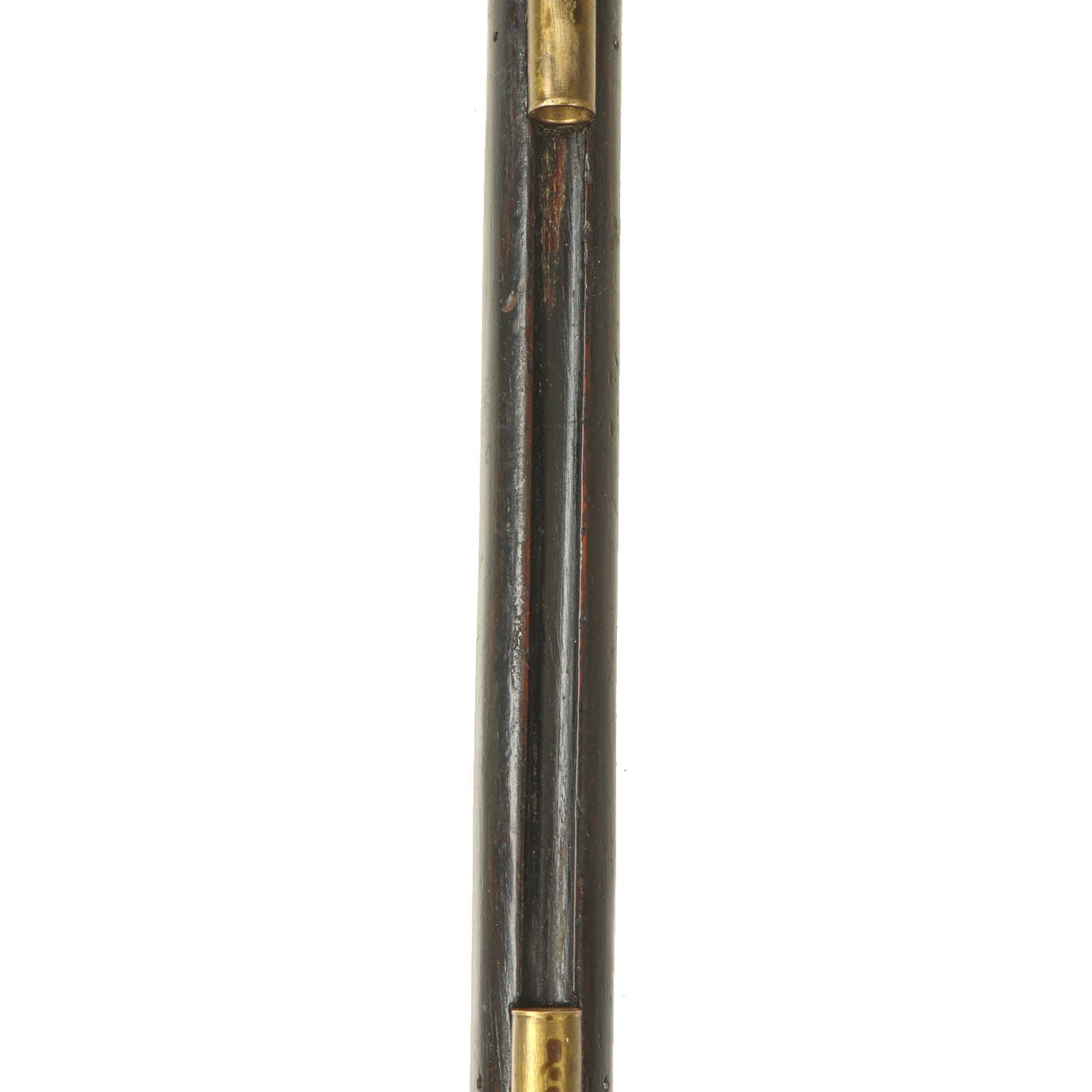 It is fully brass mounted with the very early and correct Brown Bess mounts. It is fitted with a wooden ramrod with a brass front tip which matches the musket perfectly but may well be a working life replacement. The musket bears a very attractive stock swell around the brass throat pipe, and retains its unmarked brass escutcheon or thumb plate. Overall length is approximately 62".