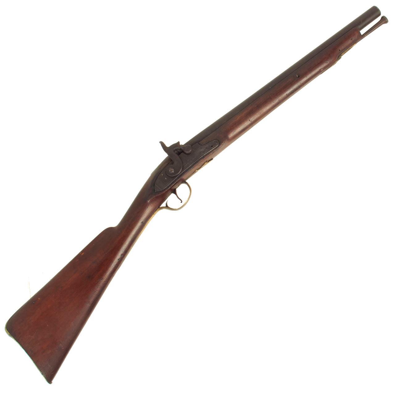 Original Item: Only One Available. This was once a very nice English .65 bore fowling piece made by William Ketland & Co. of Birmingham and London, and is marked W. KETLAND & Co. on the lock plate. This company supplied large numbers of firearms to the colonial market, and this was sold as a trade gun in the North American Fur Trading market, which was booming in the late 18th and early 19th centuries. From what we can tell, this was originally most likely a flintlock, and then converted to percussion, as indicated by the holes in the lock plate for the frizzen spring and frizzen. It is however also possible that to economize Ketland never changed the casting molds for their lock plates and would just plug the holes later.