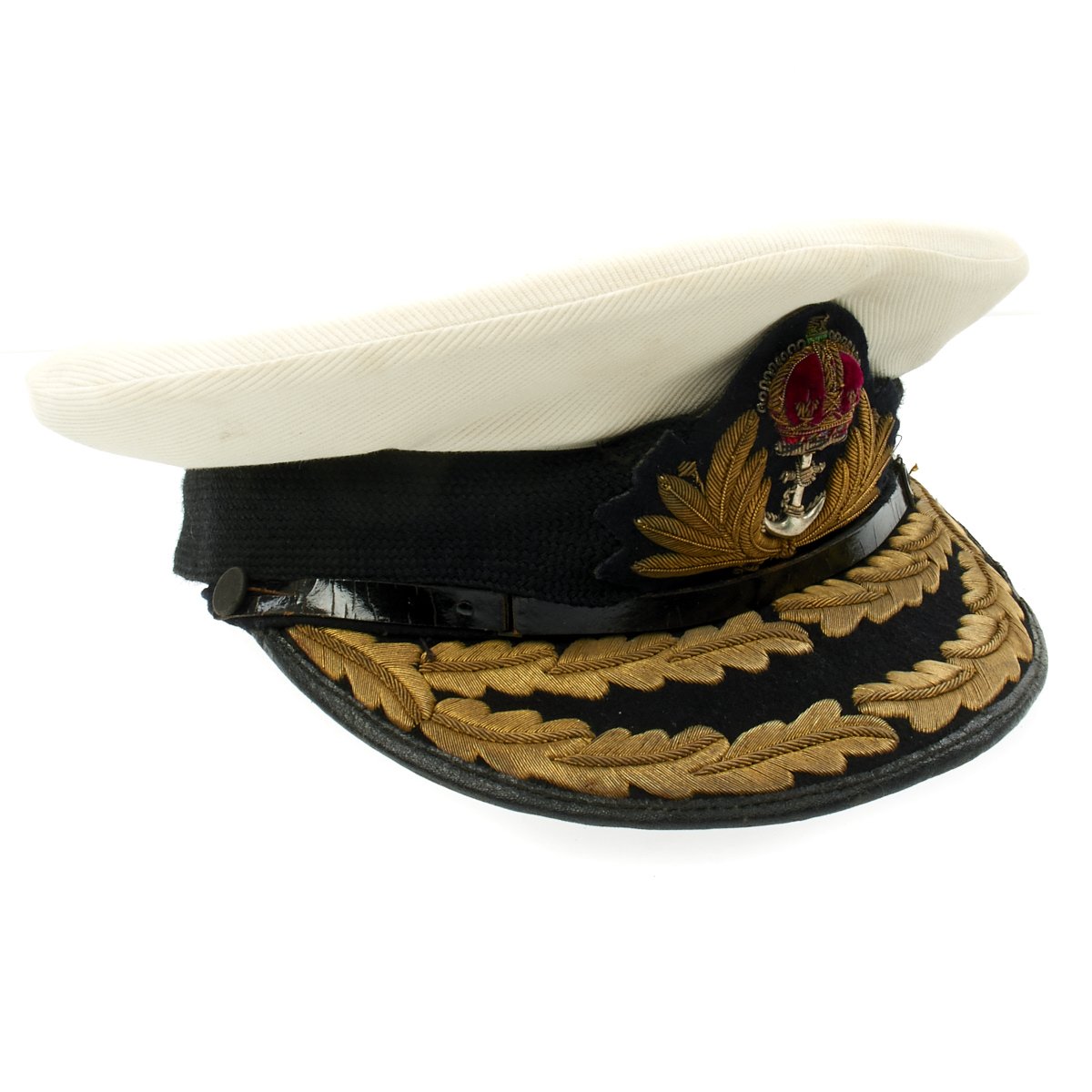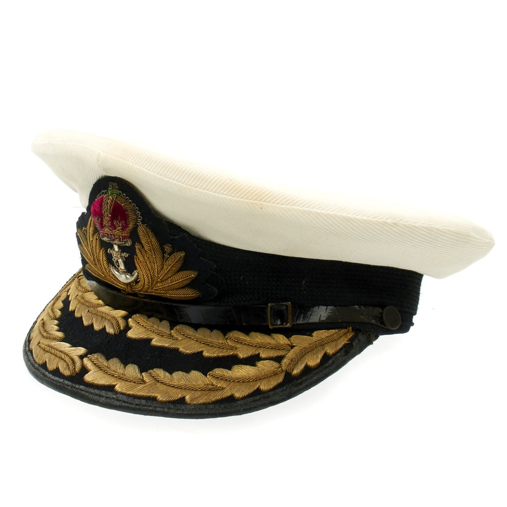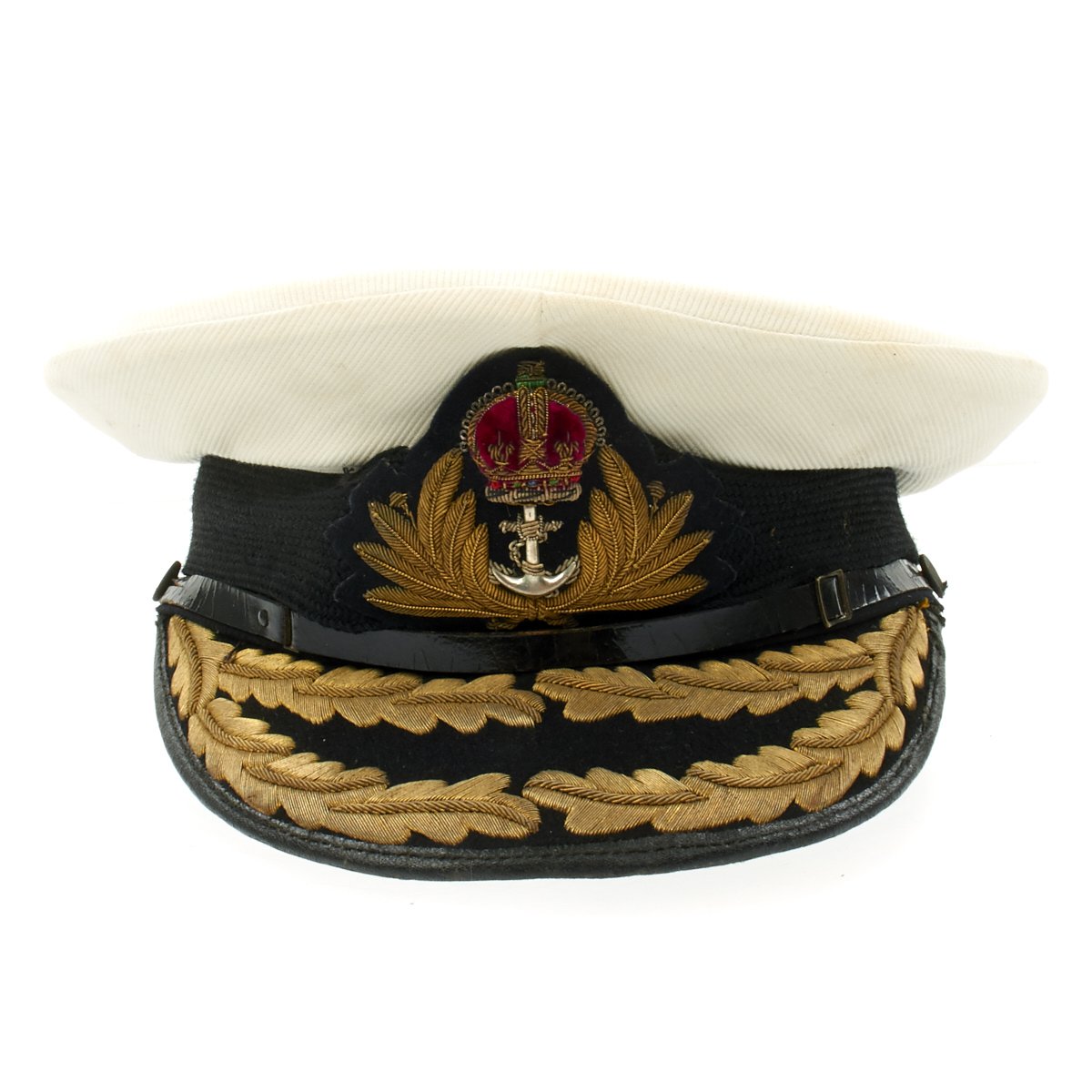 Original Item: Only One Available. This is an extremely rare and hard to find British Royal Navy Admiral's Visor Cap by the extra high quality maker Gieves of London. It would be very hard to upgrade this cap. It is size 7 1/4 (58cm). The cap is named to C. Wheen.