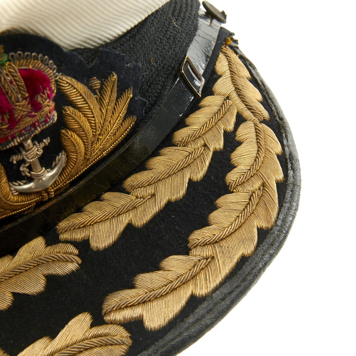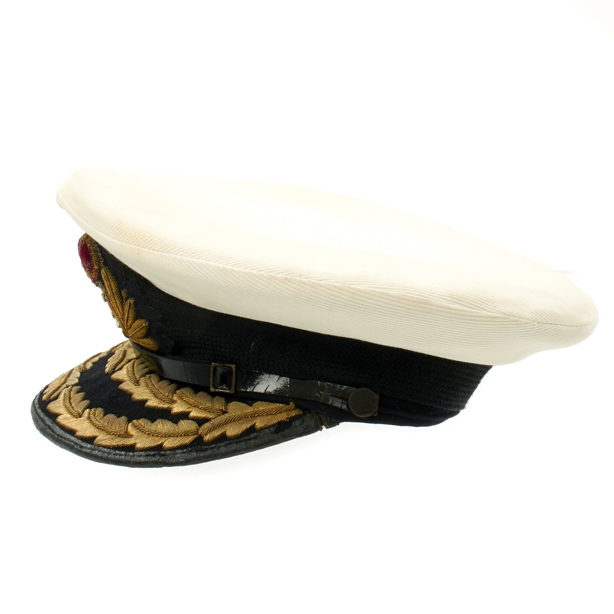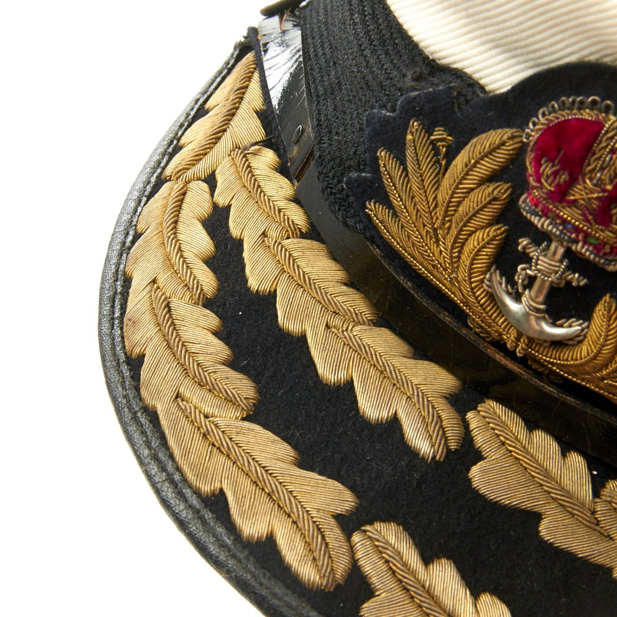 Original Item: Only One Available. This is an extremely rare and hard to find British Royal Navy Admiral's Visor Cap by the extra high quality maker Gieves of London. It would be very hard to upgrade this cap. It is size 7 1/4 (58cm). The cap is named to C. Wheen.
