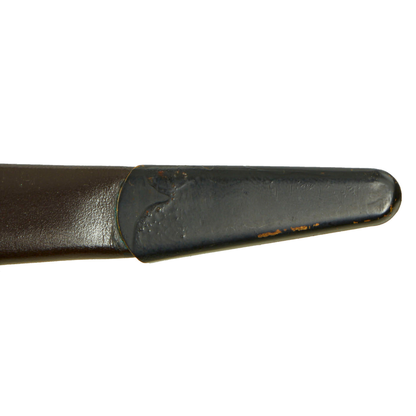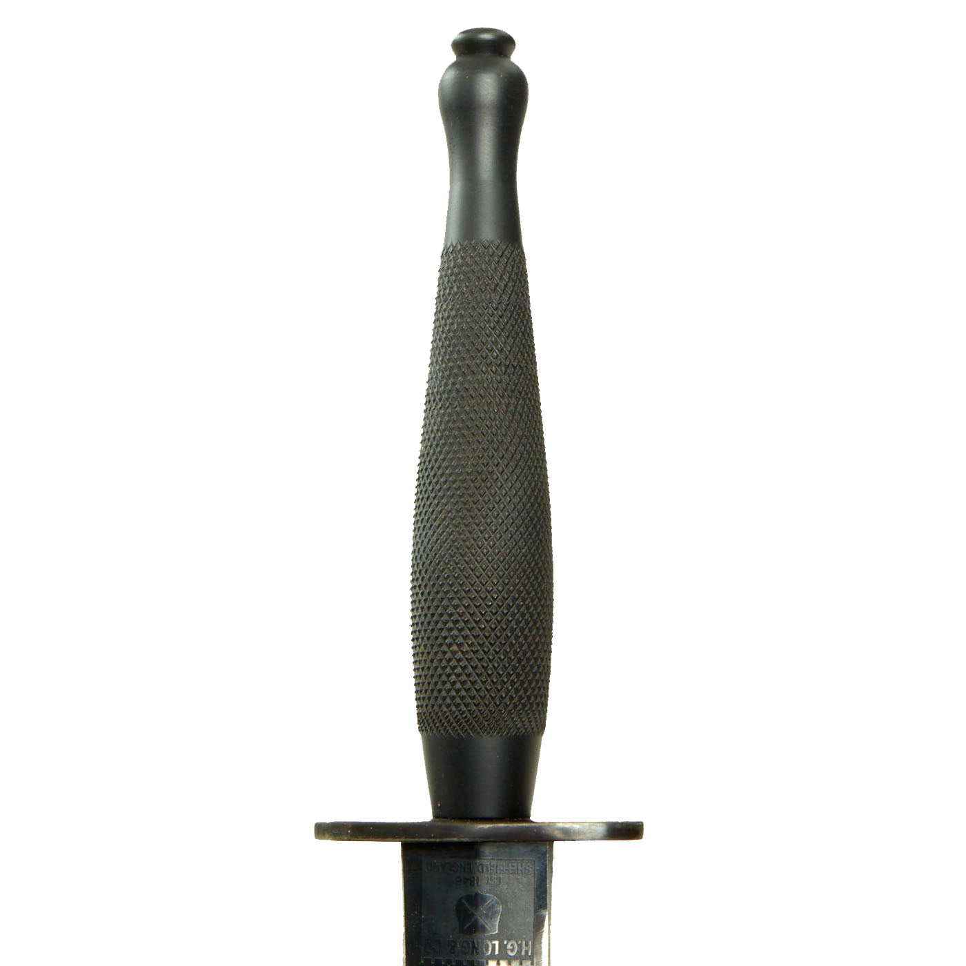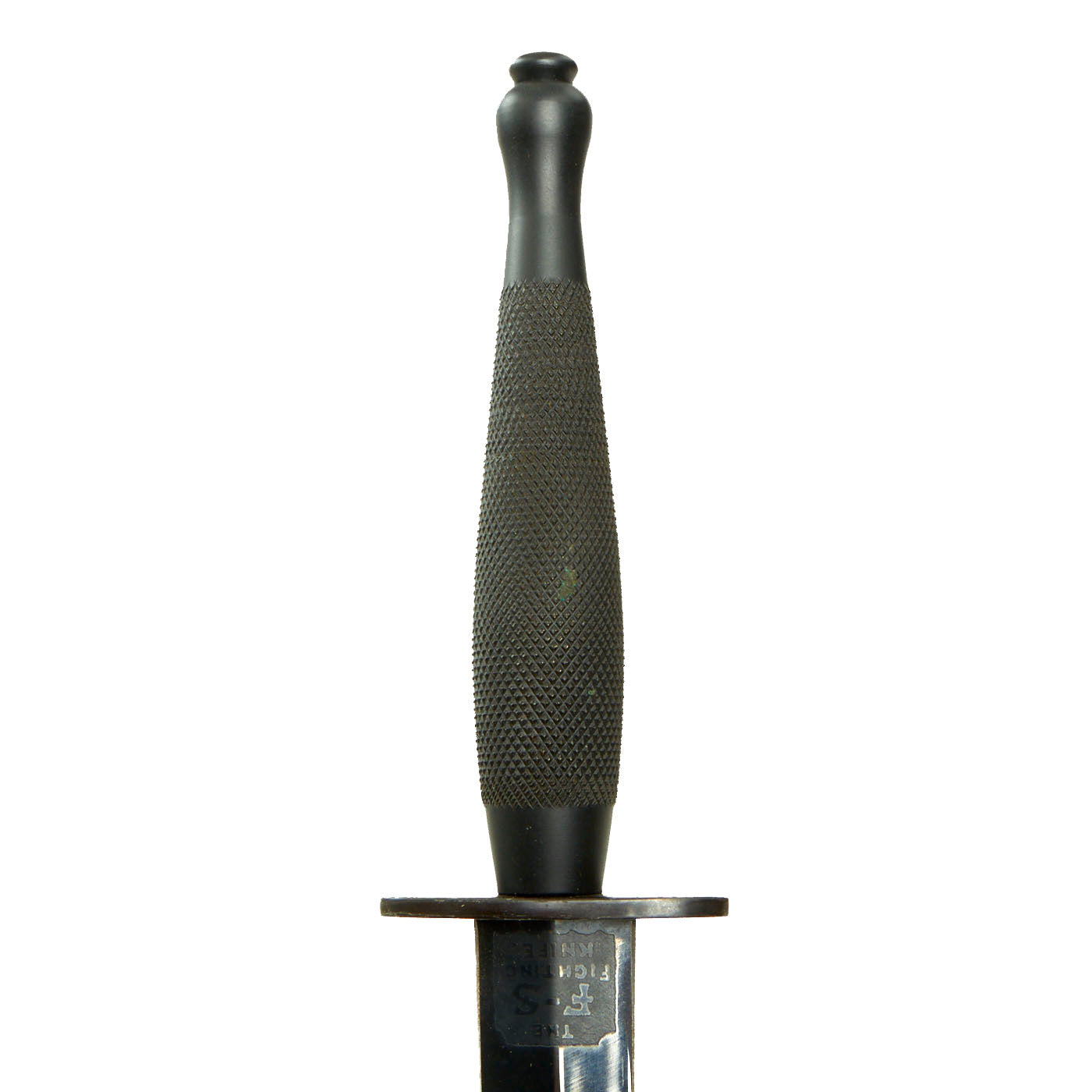 Originally, these were nickel-plated as the First pattern knives had been, but as production increased, the blade was left bright steel, and the grip was instead blackened. After 6th of February 1943, the blade was also finished black, so the entire knife was now black.