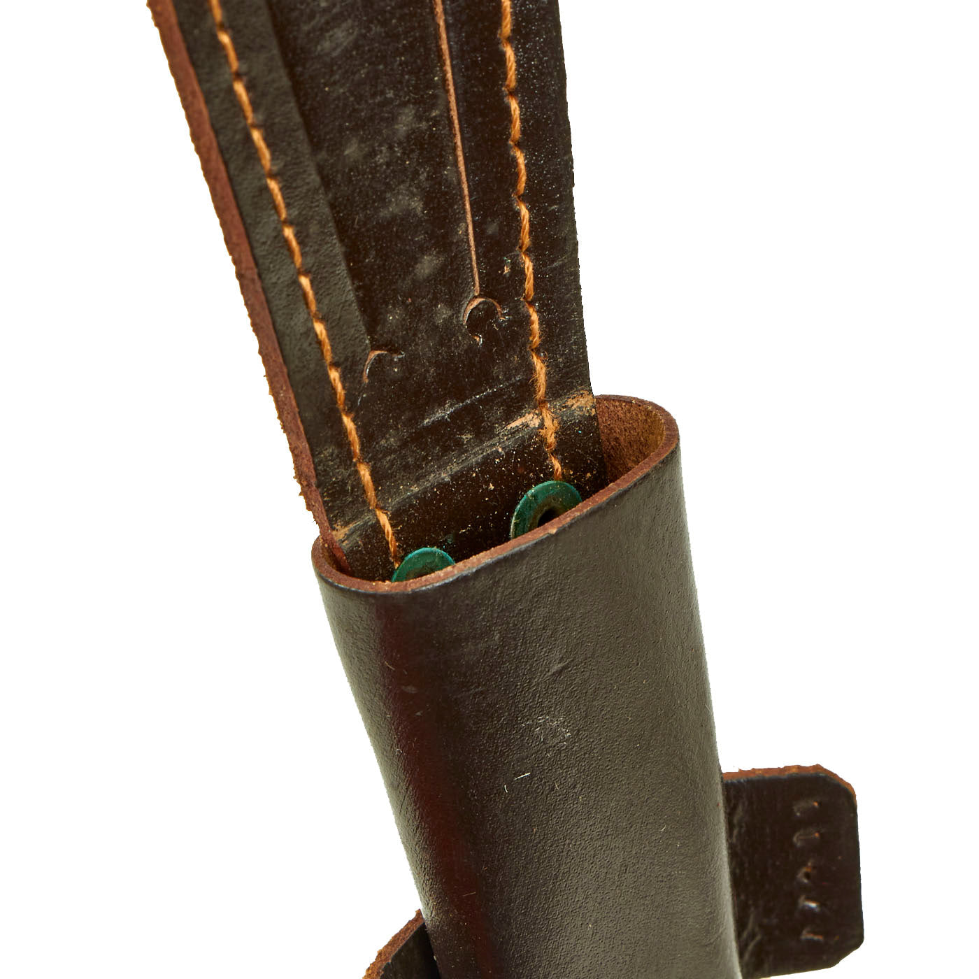 Condition of the knife is very good, still with a sharp edge, possibly the original factory sharpening. The condition of the blade does not indicate it was used at all. The blade and handle has 99 percent of the original finish present. The crossguard is still tight. Scabbard is in unused condition, with a great patina, great elastic strap and the “tongue” is completely attached still.