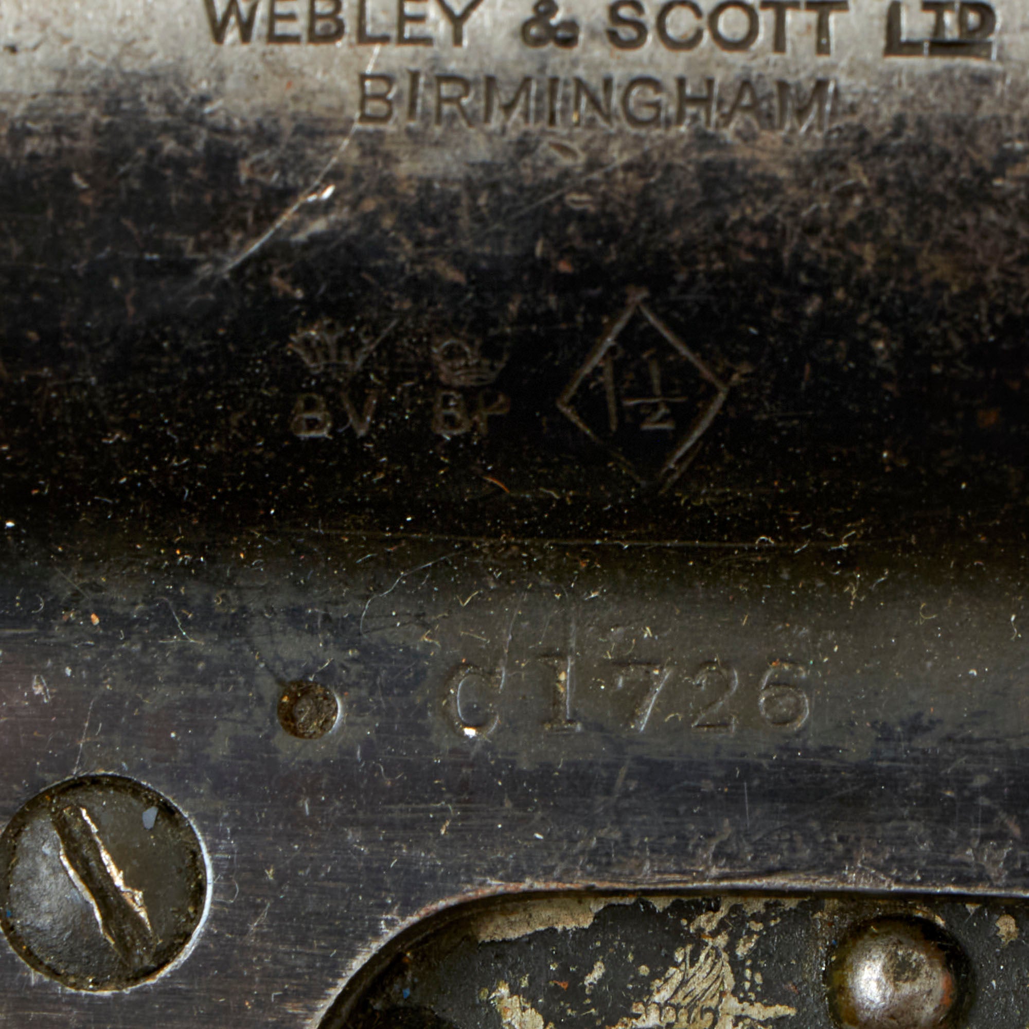 Original Item: Only One Available. This is a nice example of a Circa 1930s Webley & Scott Mk IV pattern 1 1/2 inch (37mm) Flare pistol, manufactured by the Webley & Scott firm itself. These were primarily designed for use on RAF aircraft just before WWII but does not have the lugs on the barrel like the later versions.