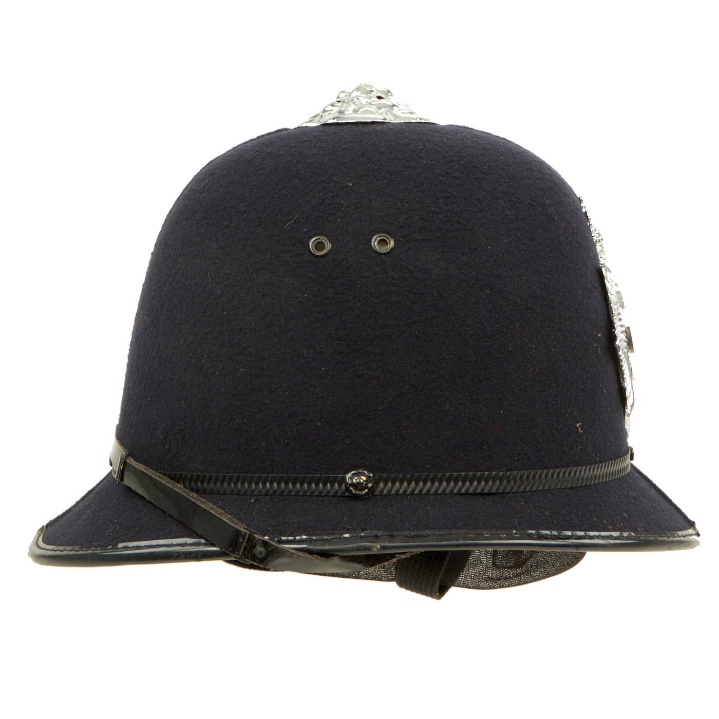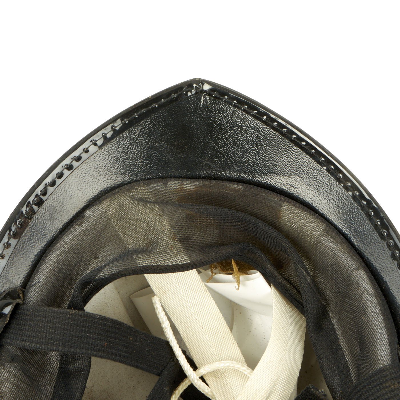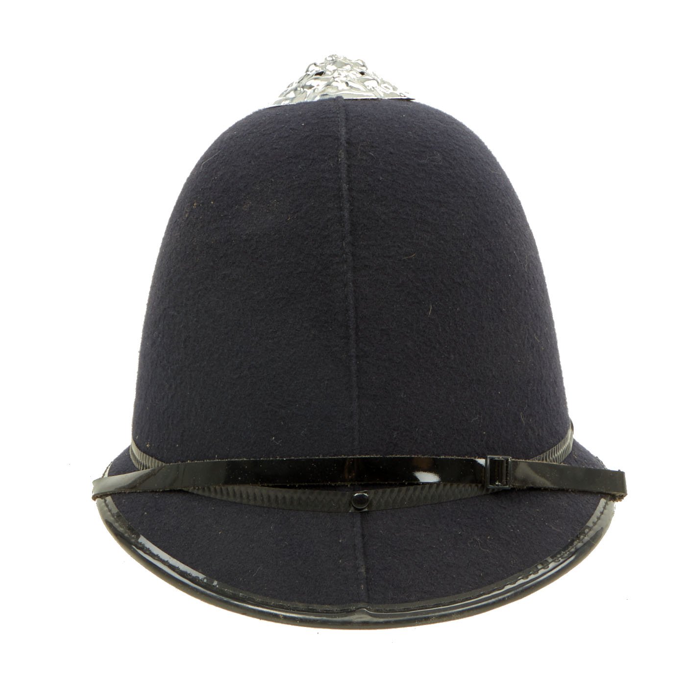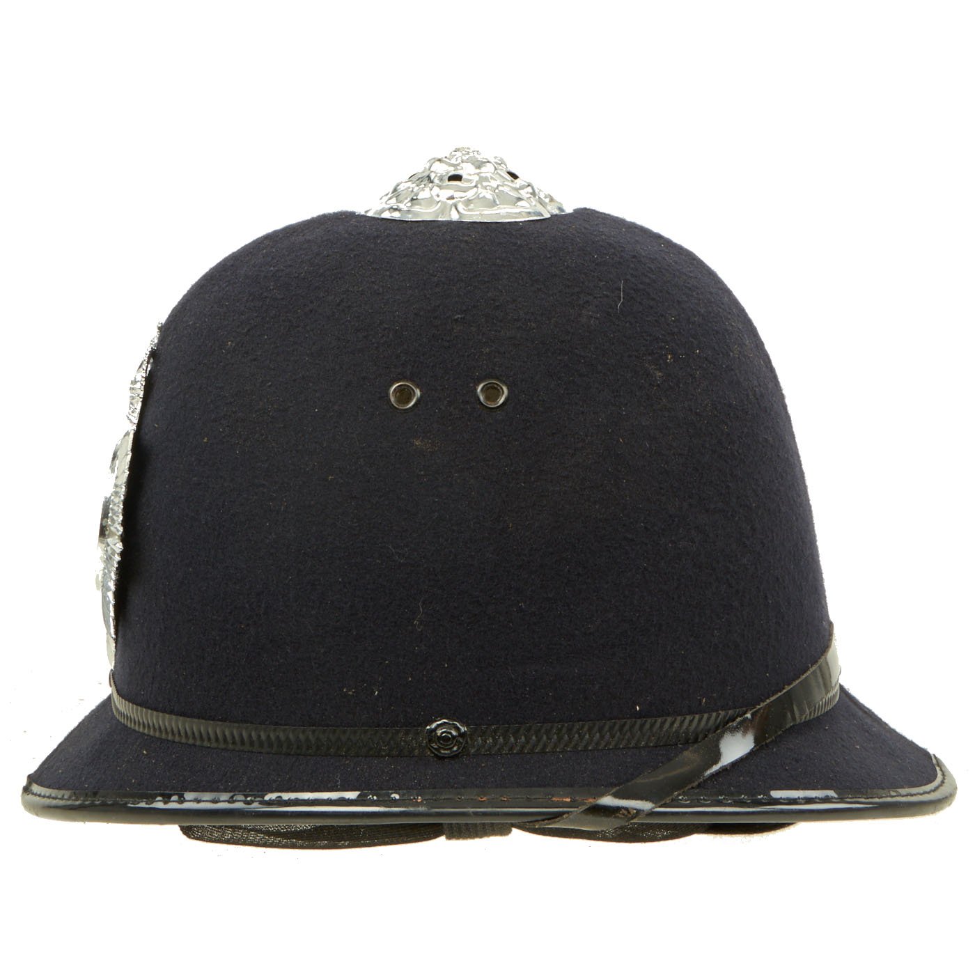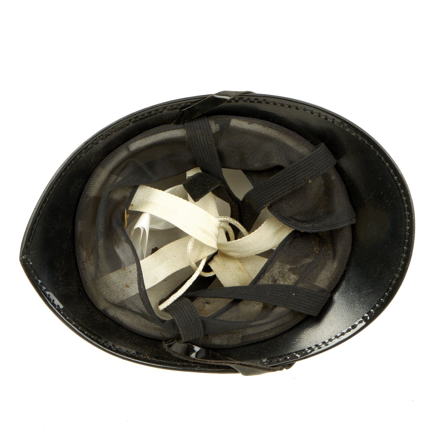 Original Item: Only One Available. Formerly part of the decoration of the Yeoman Warder’s Club at the Tower of London comes this contemporary (Circa 1970s-1990s) British Bobby Police Helmet of the “Rose Top” variety. The traditional Bobby helmet was named after the creator of the British Police Force, SIR ROBERT PEEL, who became Prime Minister under Queen Victoria. This early version, known as a "Rose Top," features a plated top fitting, in the shape of a rose, hence the name.