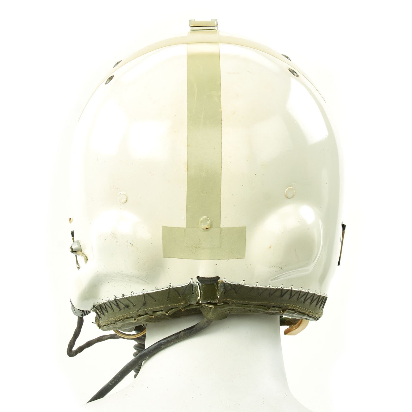 The Mk.2 and Mk.2A that where used in the Royal Navy had a cross of adhesive reflective tape across the top of the shell for improved recognition purposes. The helmet shell is made of a glass fiber resinate with locally formed lobes to accommodate the earphone receivers and microphone connector plug respectively.