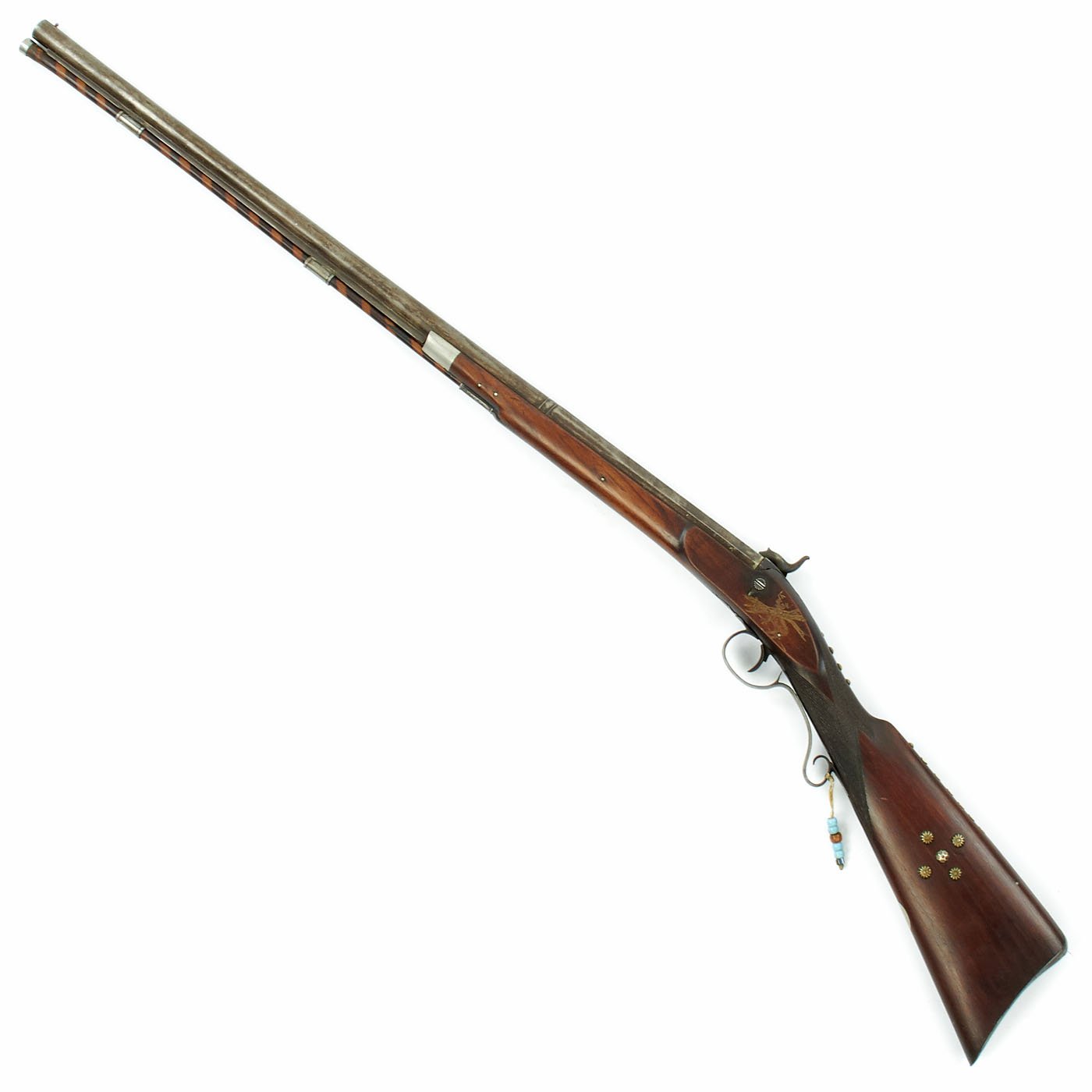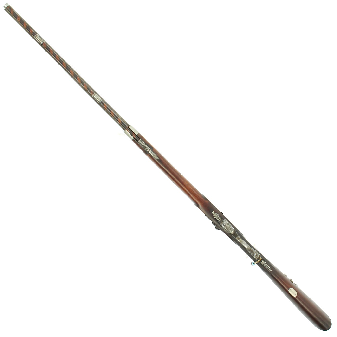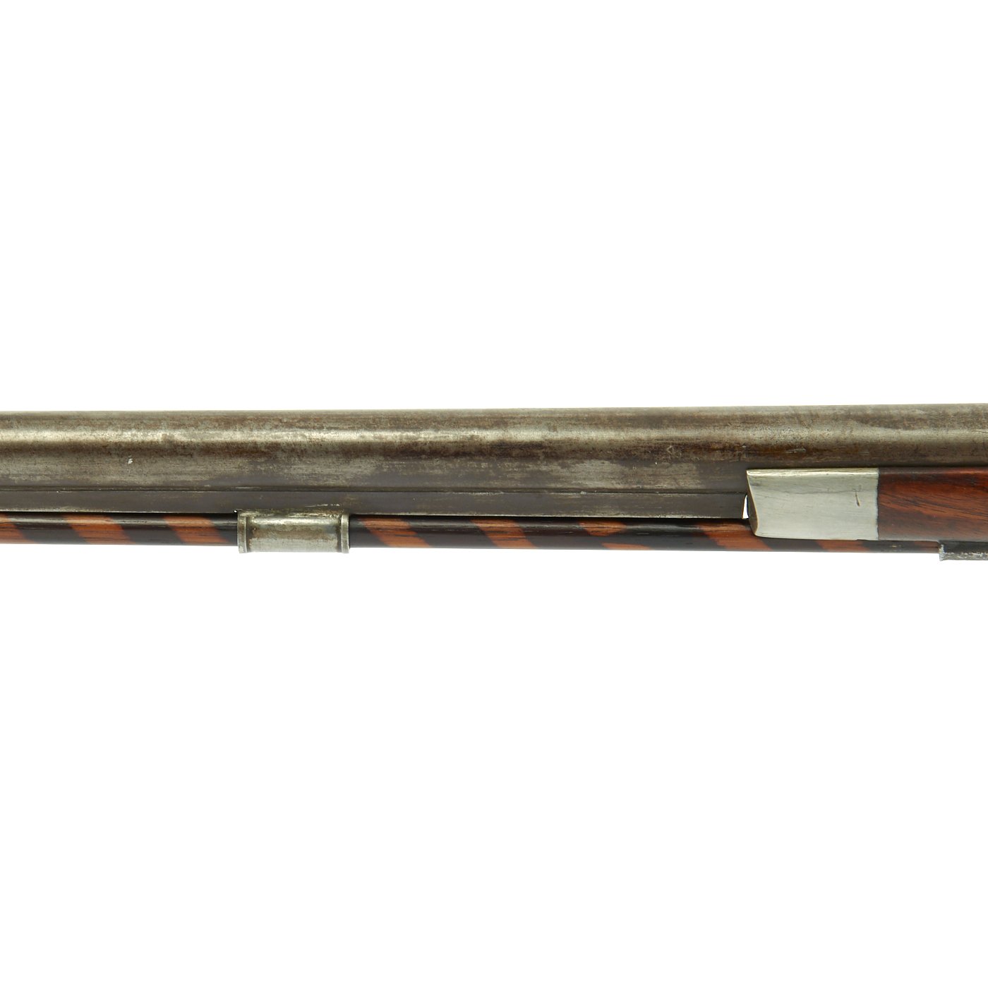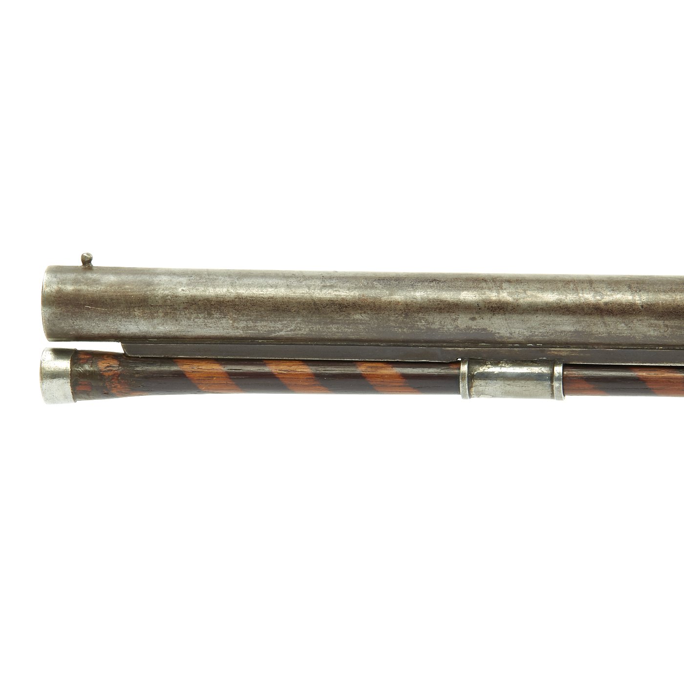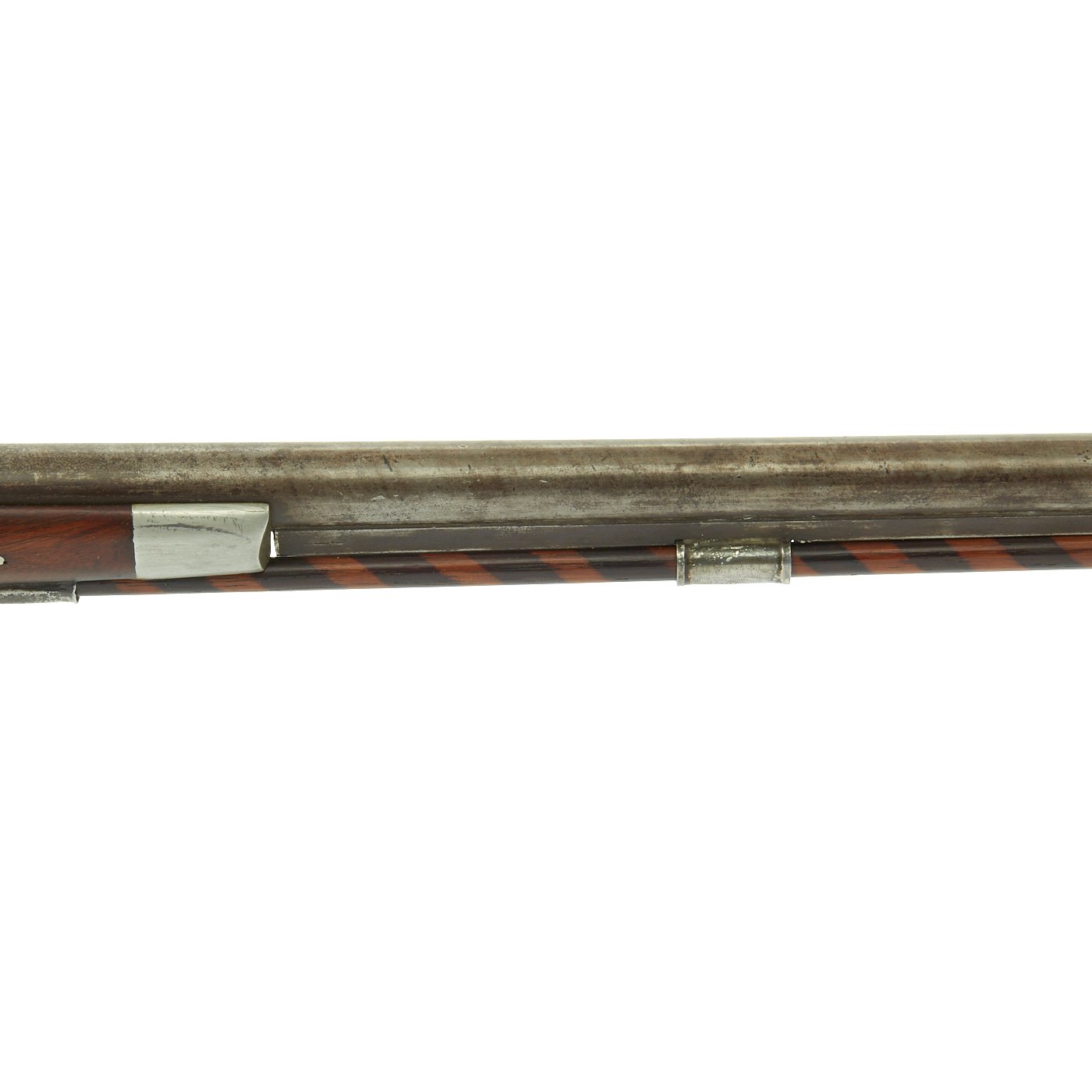 The weapon measures 46" in overall length and comes complete with a very interesting wooden ramrod which has been bound in cord and then stained giving a very effective barber's pole effect.