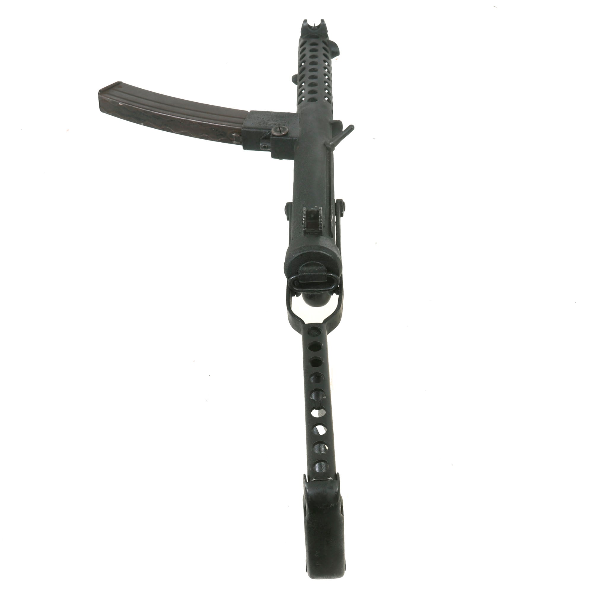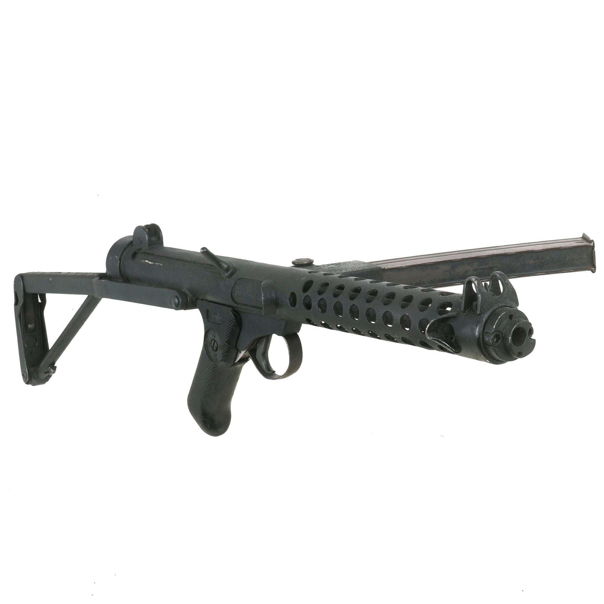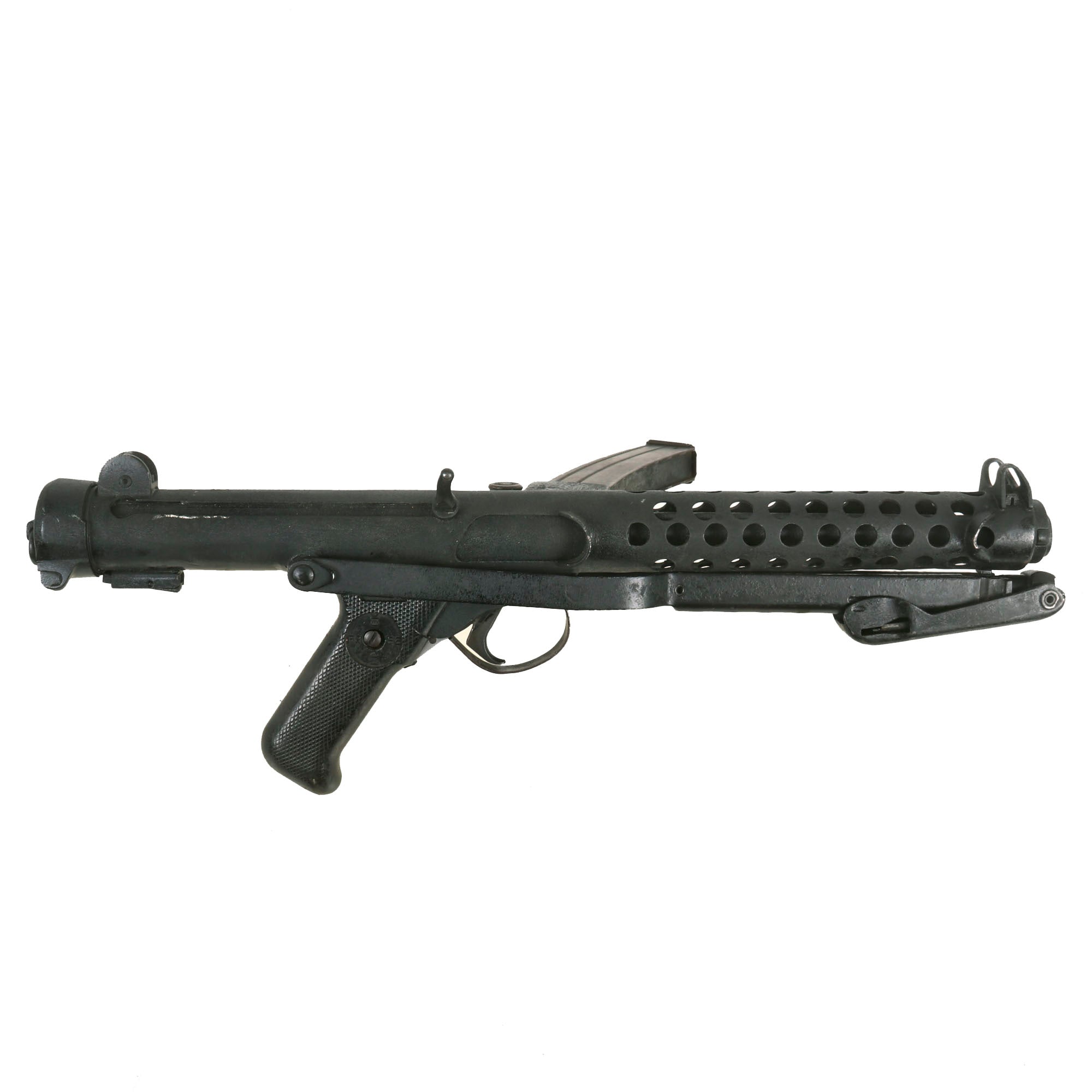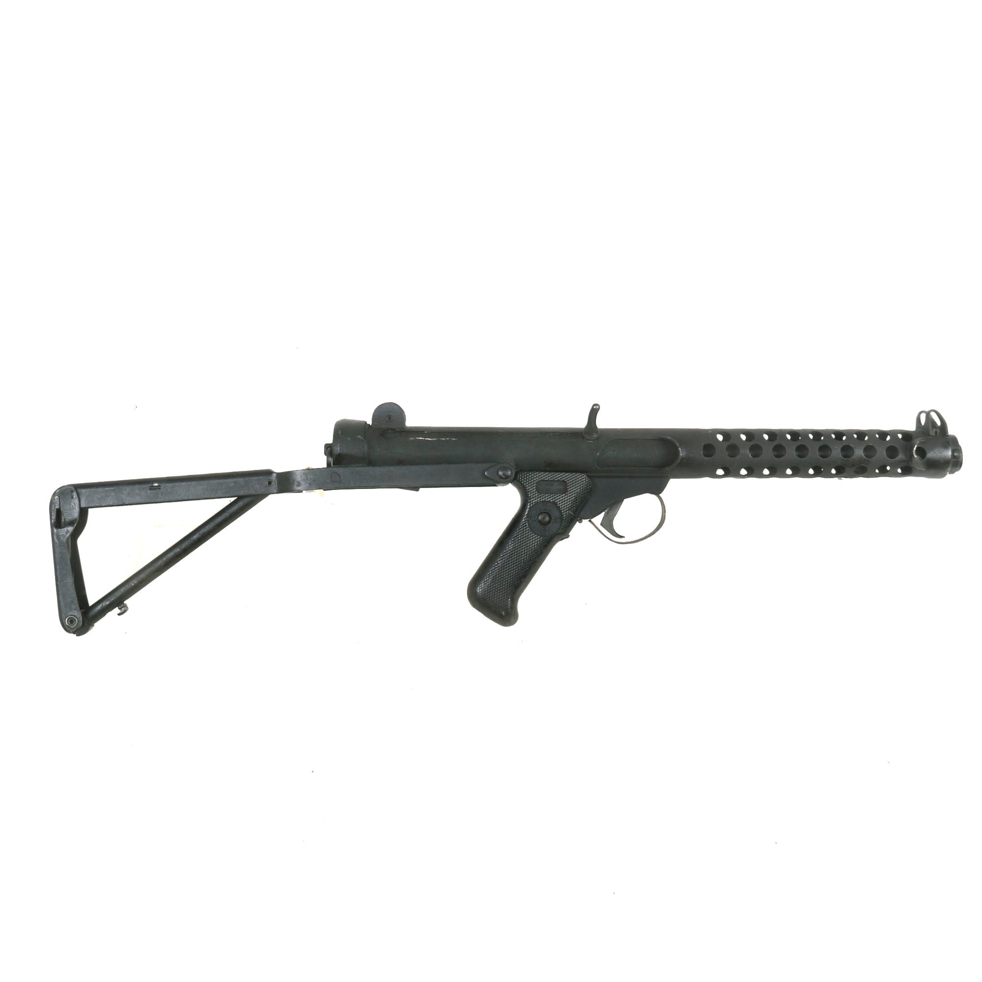 It has a fully operational folding stock and moveable trigger, which still has a functional selector switch. It even comes complete with a curved Sterling 9mm Magazine (where permitted). The magazine catch is fully functional, and the folding stock properly stows under the front of the gun.