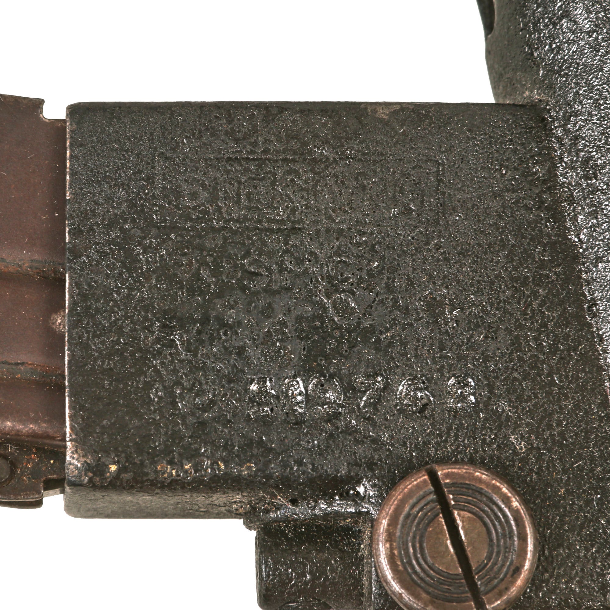 It was painted with a very nice crinkle black paint, to approximate the powder coating many received while in service. This has unfortunately made the magazine well markings a bit hard to read close to the receiver tube. The underside of the magazine well still has the full patent information visible, which we rarely see!