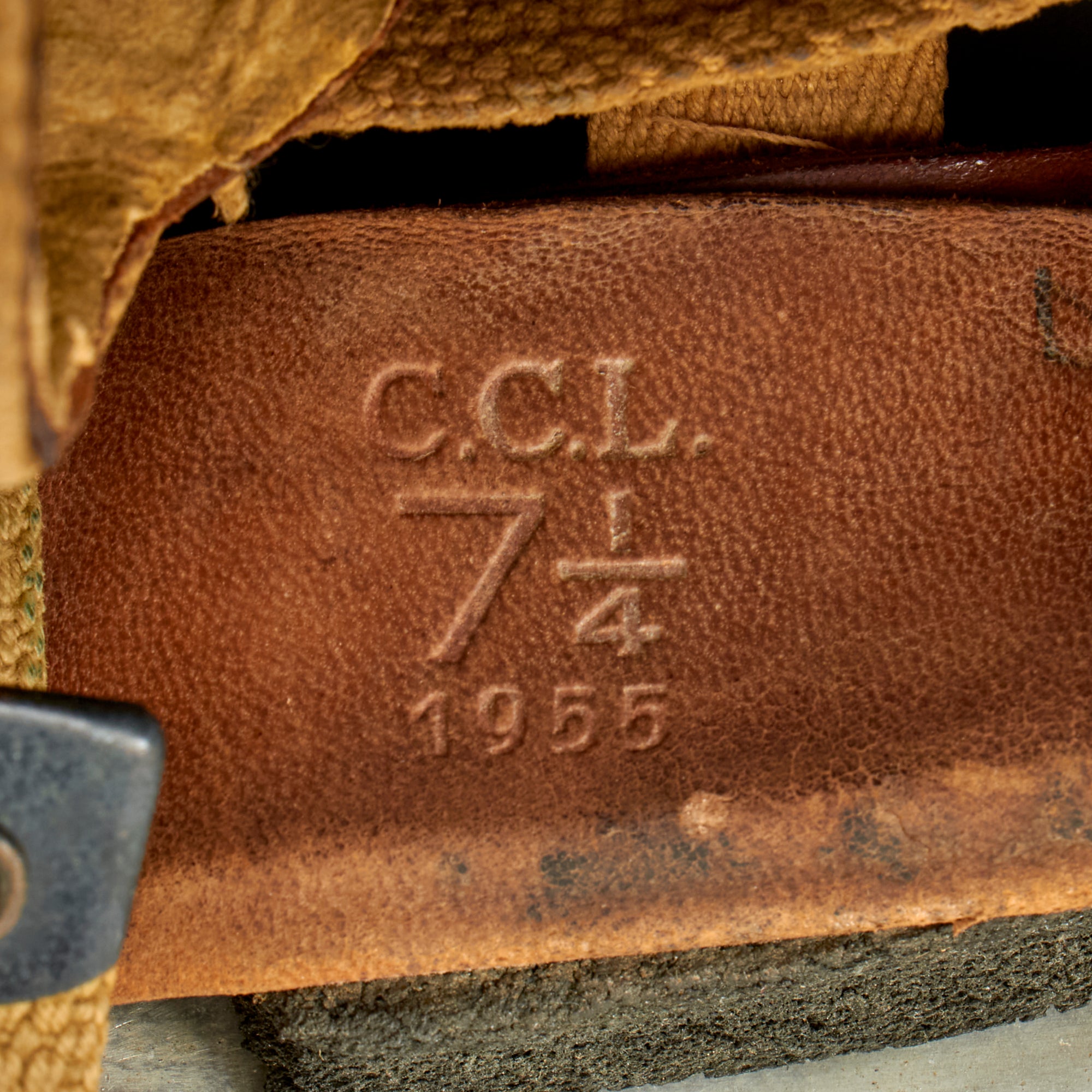 CCL is the marking for Christy & Co Ltd London, a well known manufacturer of crafted hats and clearly helmet liners. Since its founding in 1773, Miller Christy’s passion for impeccable quality and skilled craftsmanship has passed through generations of hatmakers, safeguarding Christys’ red and gold insignia as a symbol synonymous with fine traditionally crafted hats. Official helmet manufacturer of the UK Police Force for two centuries, Christys’ stands as the Godfather of British hatmaking – not least since its Homburg hat was worn by Marlon Brando’s Don Corleone. The cult of Christys’ is recognisable throughout cinema, fashion, music and politics, amassing an eclectic lineup of wearers from Winston Churchill to Kate Moss, Indiana Jones to Brad Pitt. Christys’ was and is a brand with an eye on the future and, while methods have remained largely unchanged and heritage is paramount, it is the capacity to transcend trends and social borders that makes Christys’ hats as sought after as ever.