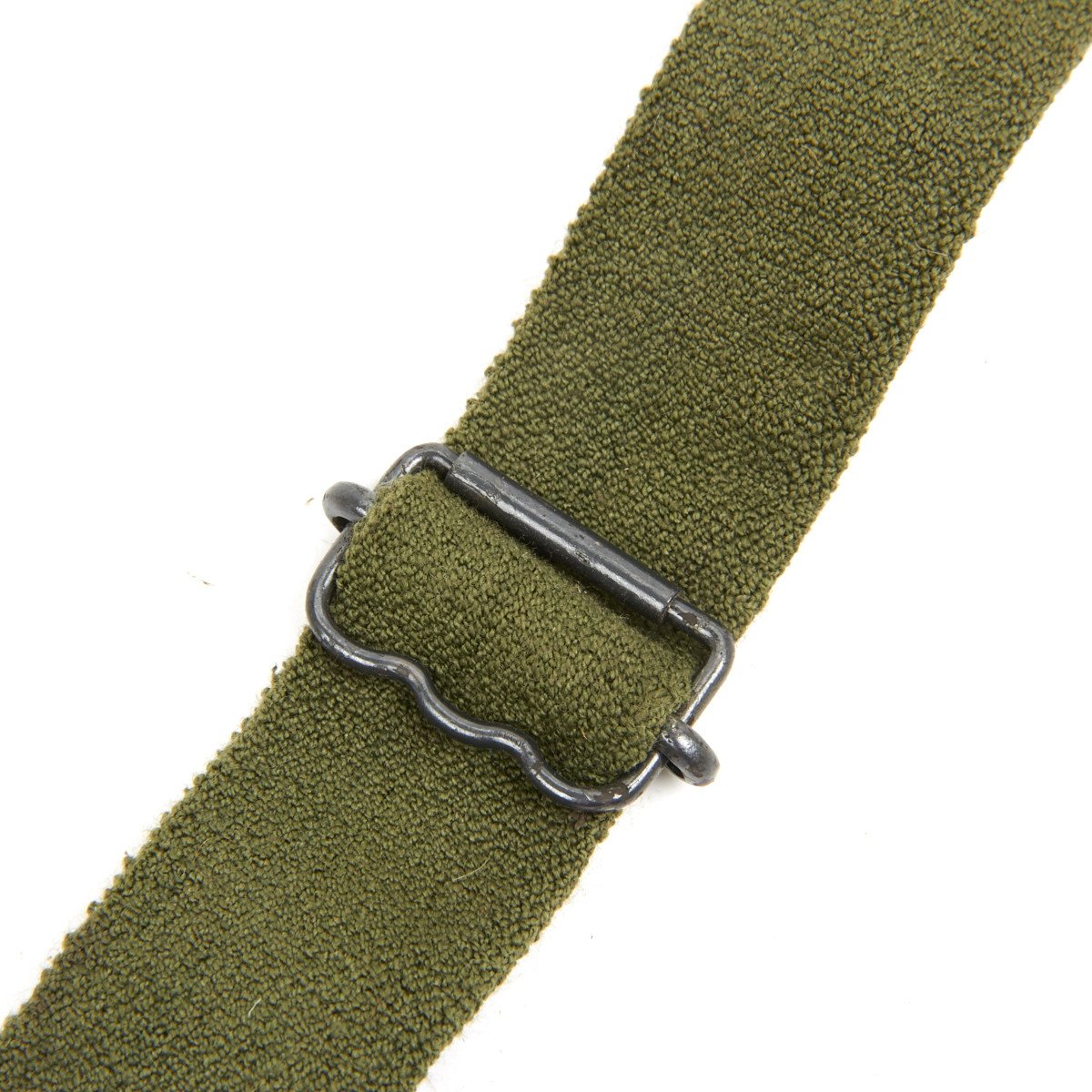 Original Item: The original Tommy Helmet chinstrap Britain entered WW2 with were not elasticated but had integral springs sewn into the construction. In short order these were replaced with these much cheaper to produce elasticated versions. Measuring approximately 16" overall upstretched these were very easy to fit and use and by D-Day in 1944 were the standard issue.
