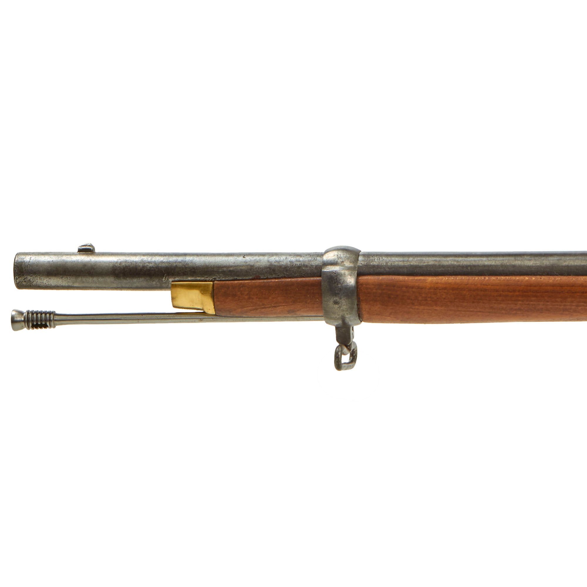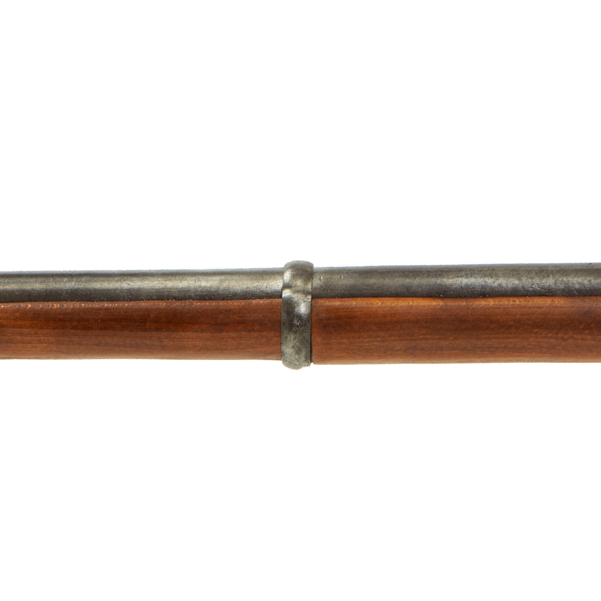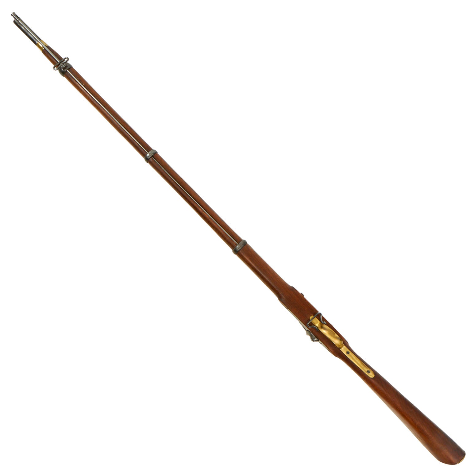 These examples are complete and all original, each has the following features; 39" barrel with the signatures three steel bands, brass trigger guard, cleaning rod, functioning lock with nipple, adjustable ladder-back sight, and brass butt plate. This rifle changed military tactics with its capabilities; imported extensively for use in the U.S. Civil War. Overall condition good to very good. A very rare opportunity to own a significant piece of military history that greatly affected wars on three continents.