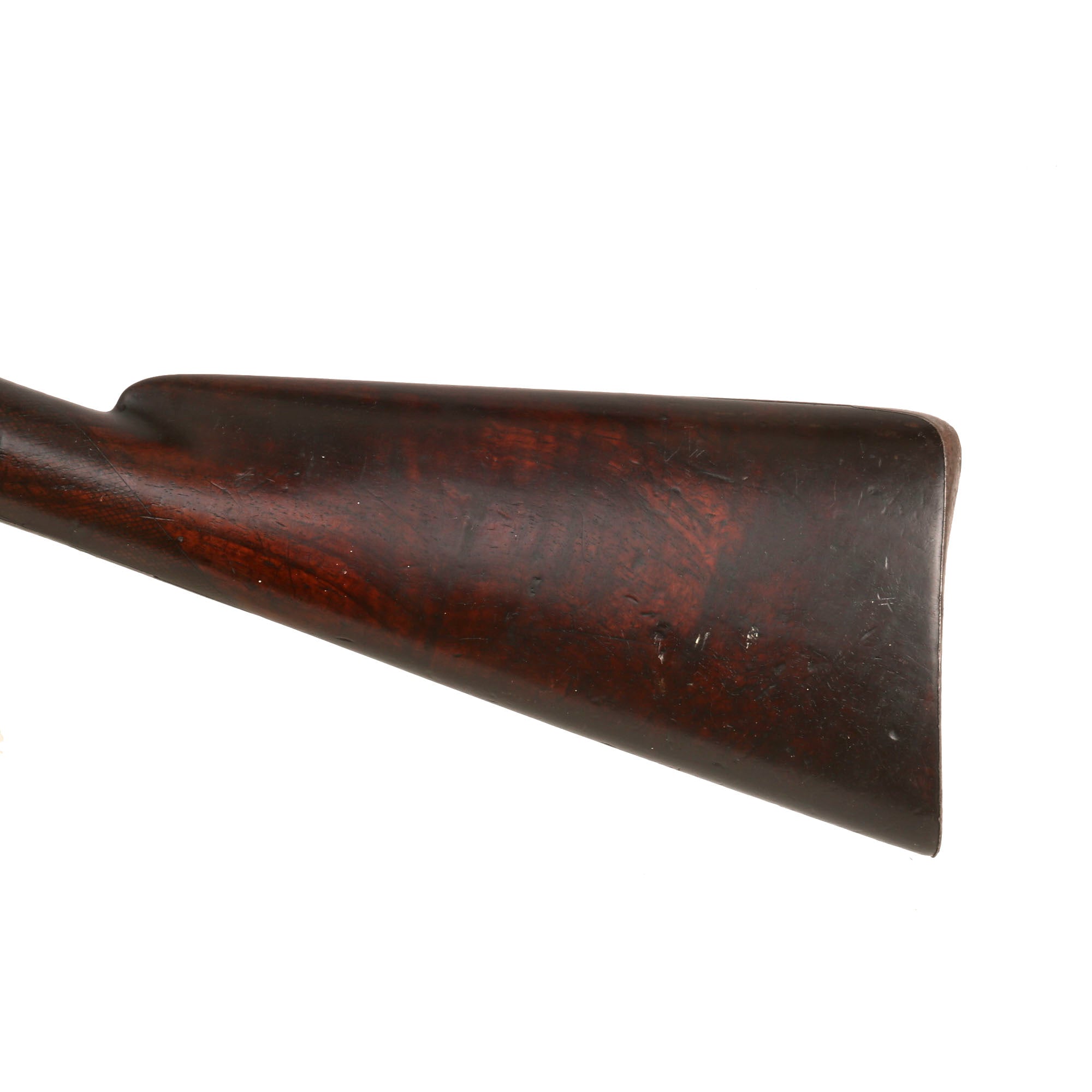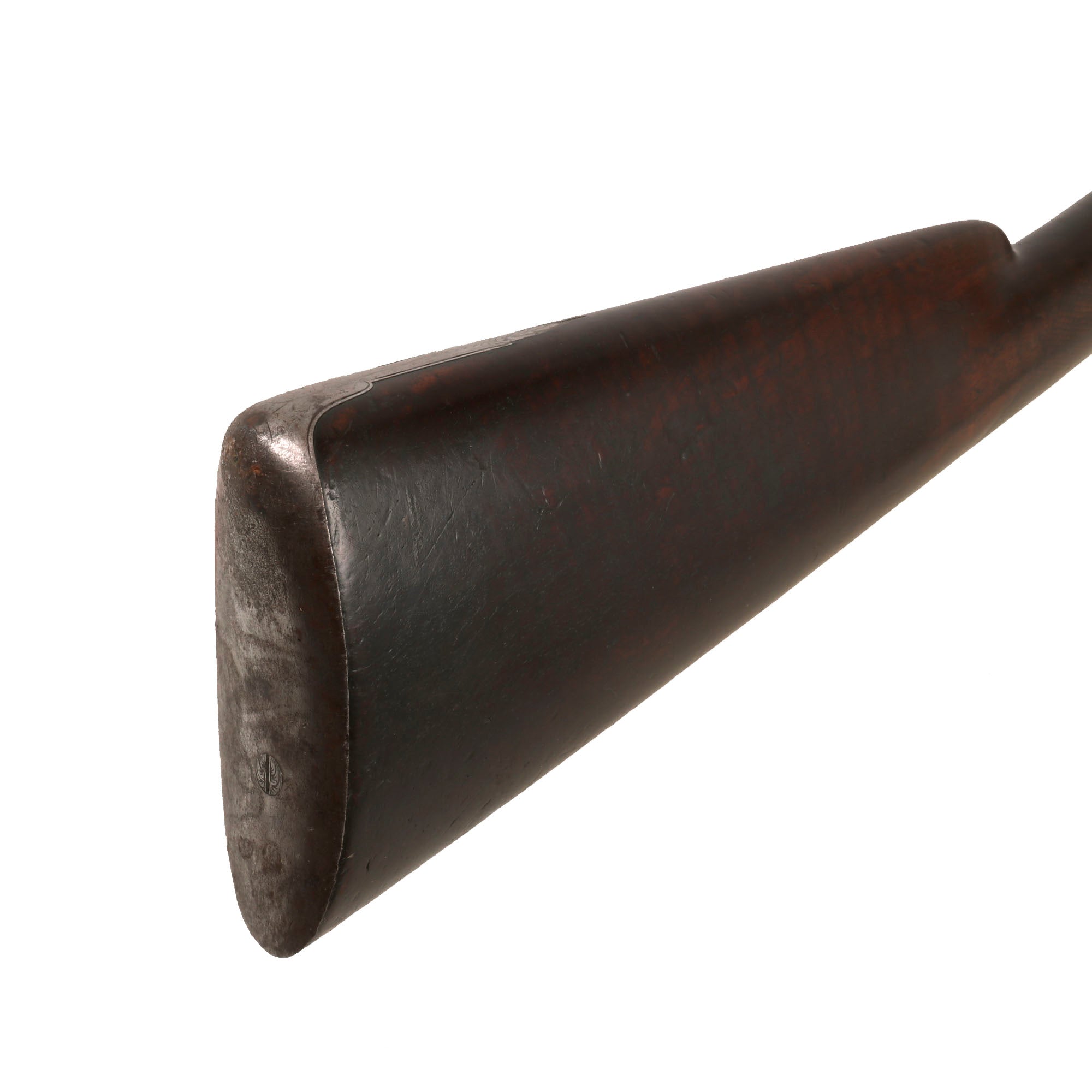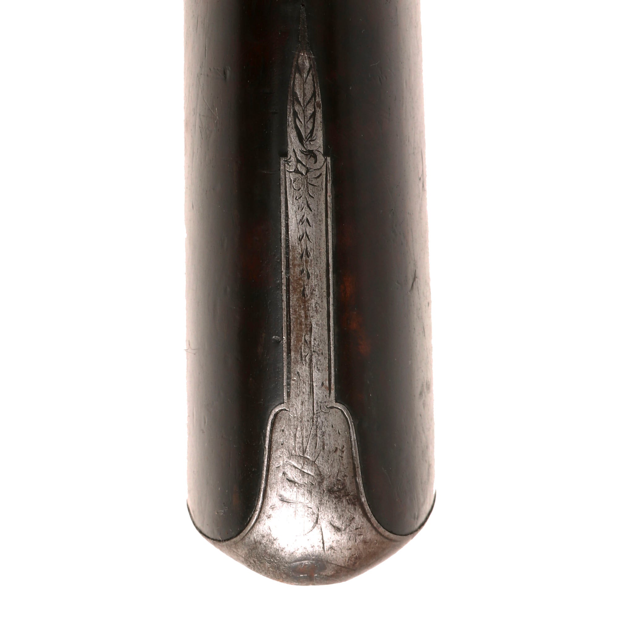 There is no marking on the barrel indicating the style of forging used, but we can still see the faint spiral pattern from laminated type forging, very common during the early 19th century. Twist forging using old nails, stubs, or other older items was a great way to get stronger steel during the pre-industrial days.