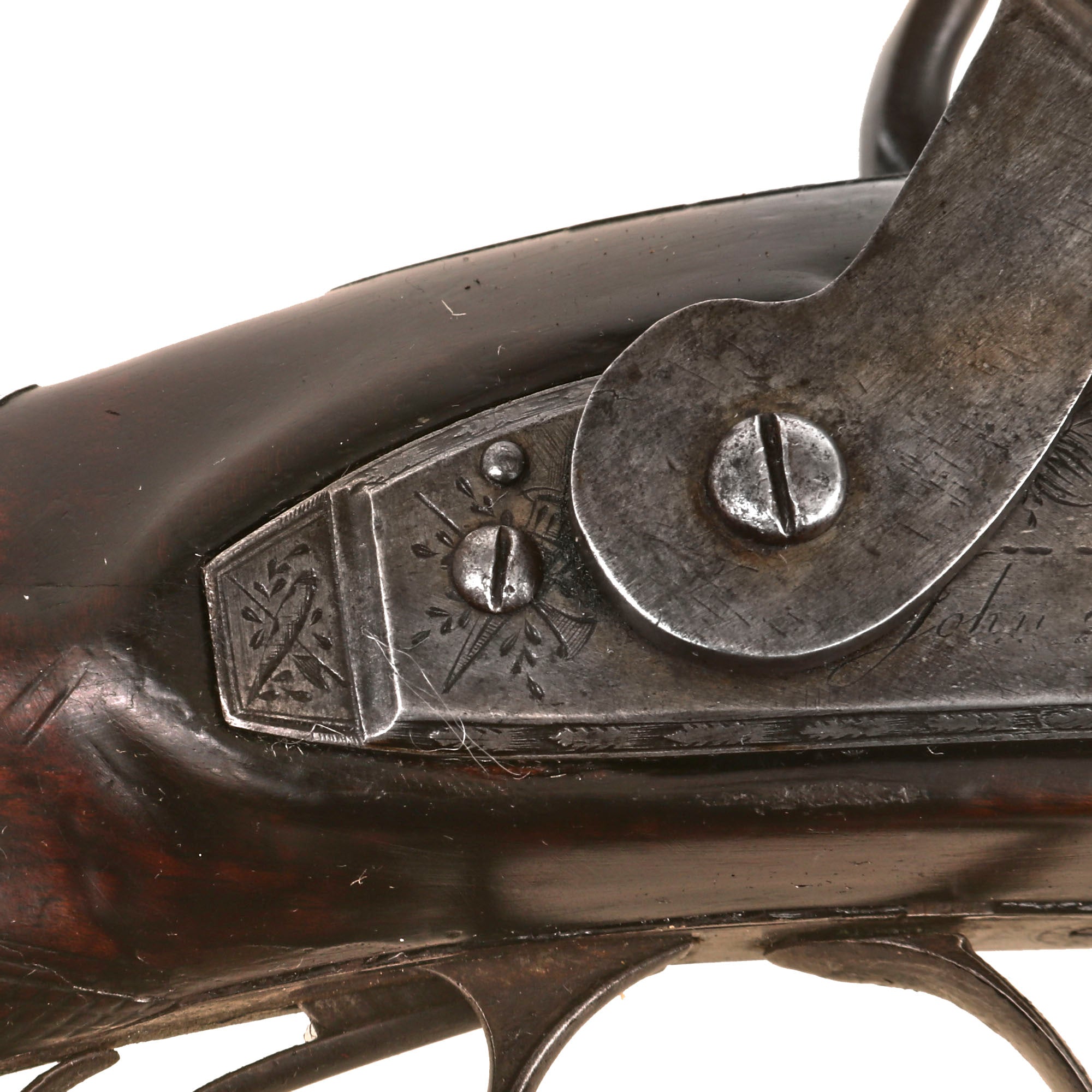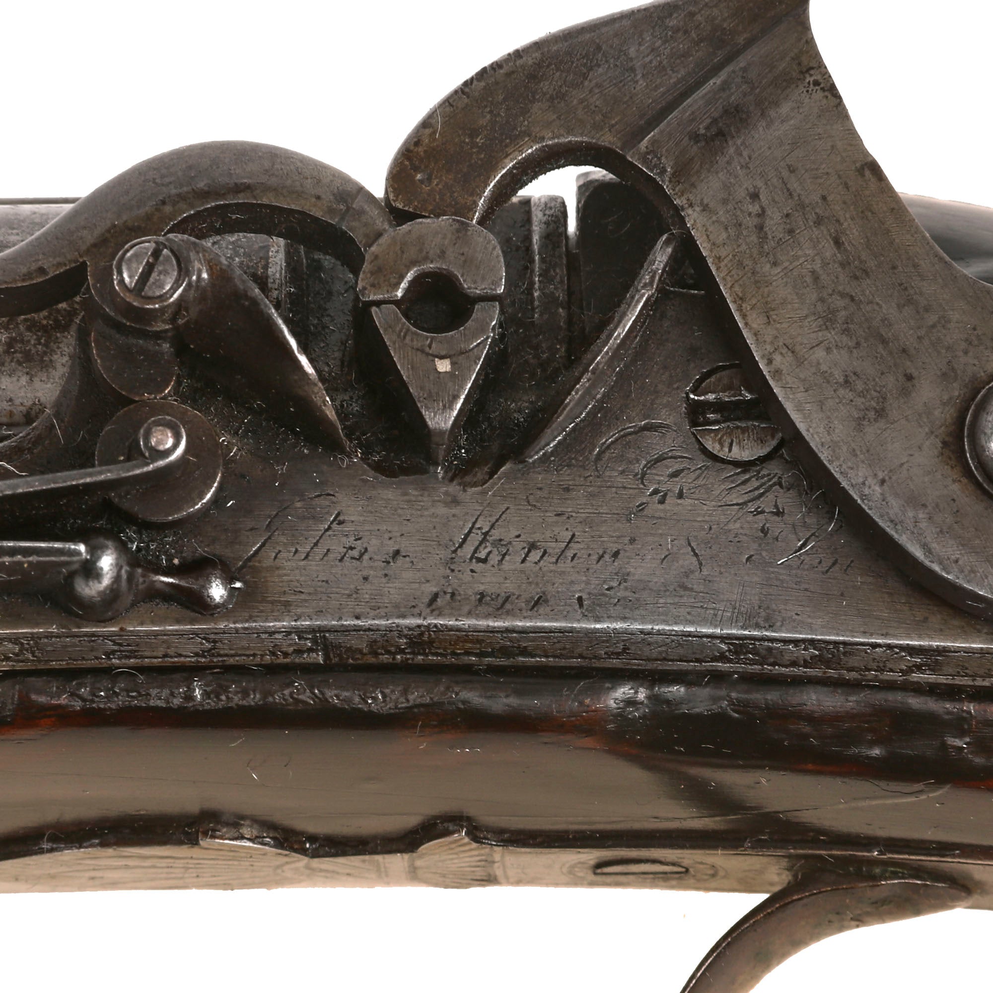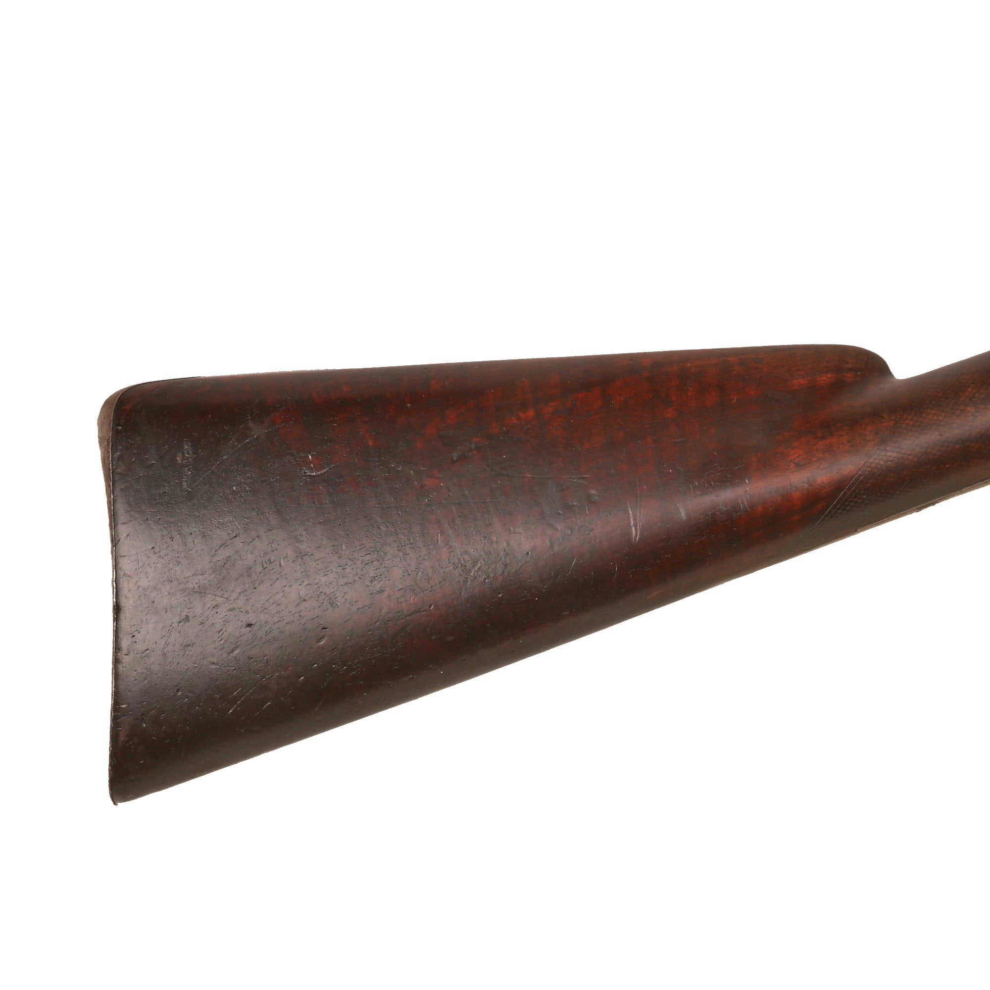 There is no marking on the barrel indicating the style of forging used, but we can still see the faint spiral pattern from laminated type forging, very common during the early 19th century. Twist forging using old nails, stubs, or other older items was a great way to get stronger steel during the pre-industrial days.