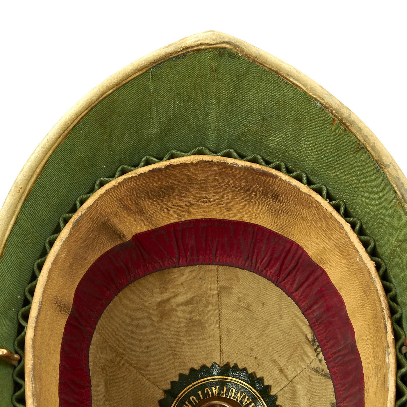 As with the Home Service Helmets, several manufacturers produced the Foreign Service Helmets. Thus, the collector may encounter subtle–and even not so subtle–differences in design. The primary manufacturers of these helmets are believed to be the same makers of the Home Service Helmet and included Hawkes & Company of Piccadilly, London; Humphreys & Crook of Haymarket, London; J.B. Johnstone of Saville St., London, and Dawson St., Dublin; H. Lehmann of Aldershot; and Samuel Gardner & Co of Clifford St., London. It is curious that a helmet in the collection of one of the authors was made by the aforementioned Hawkes & Co., but the label touts the firm as the “sole manufacturer”!