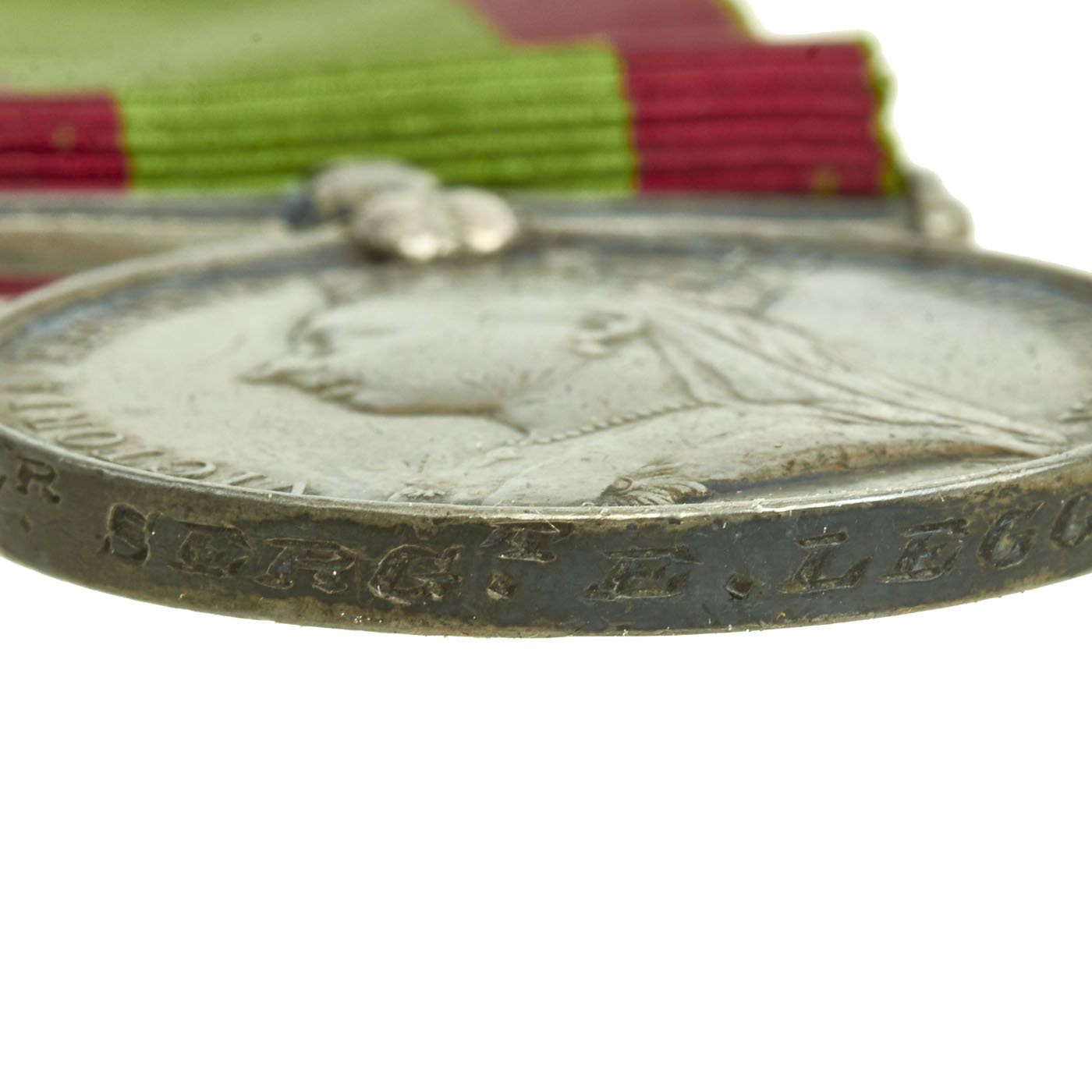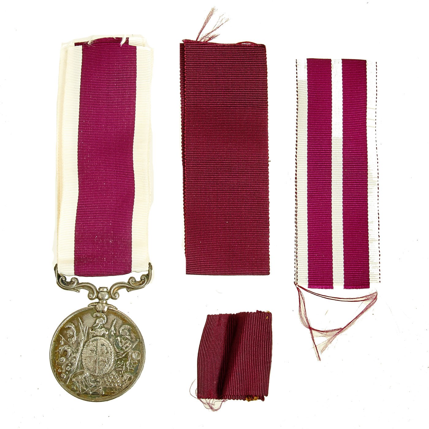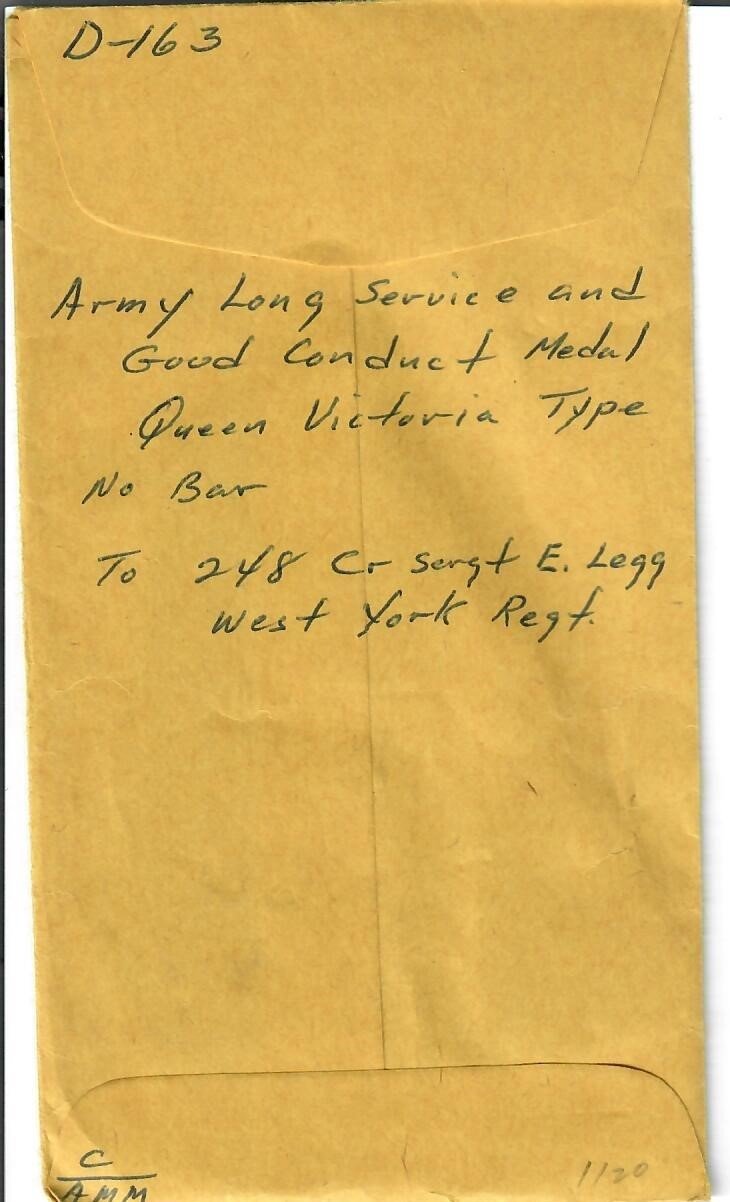 - Army Long Service and Good Conduct Medal - Victoria small reverse lettering, named on the rim; 248 CR. SERGT E. LEGG W. YORK R. Naming officially impressed, includes three different ribbons near extremely fine.