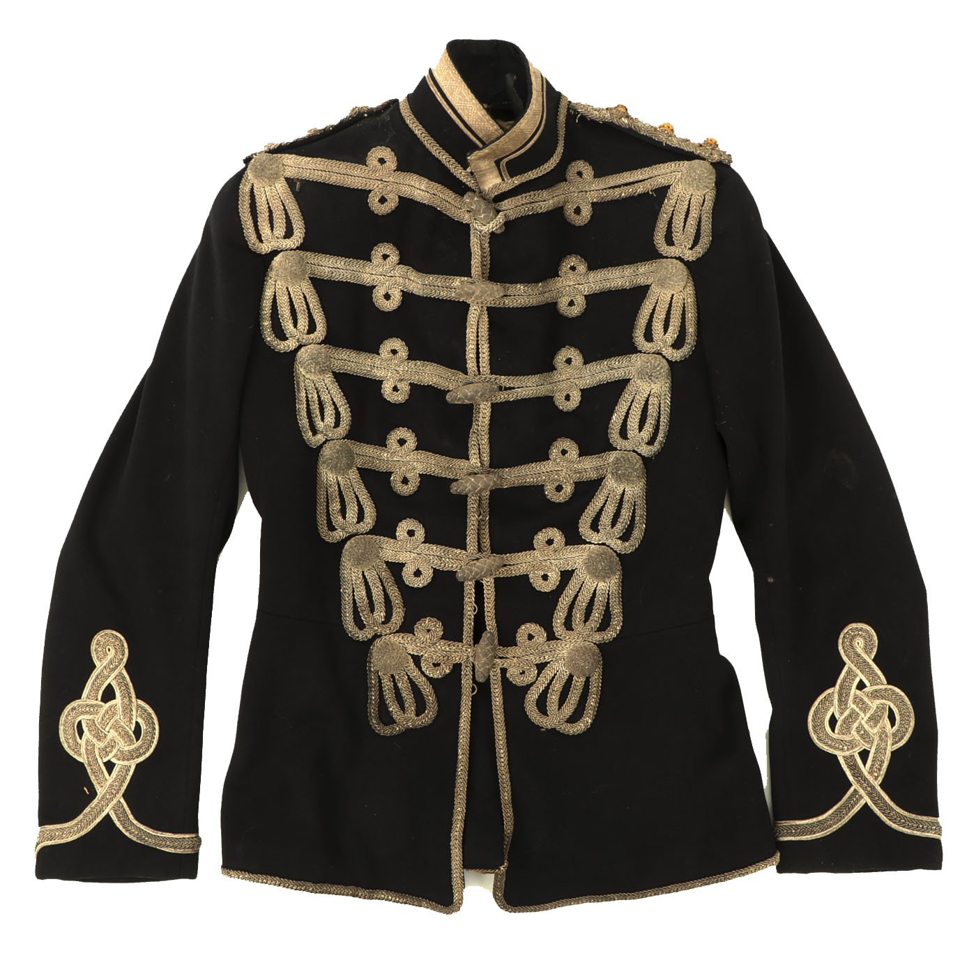Original Item: Only One Available. By 1881 the British hussar tunic was approaching its final form. Inspired by the German and Austrian Attila, the garment introduced in 1856 was long skirted and bore six loops of frogging across the front (Light dragoons had the same tunic but with five loops). In 1874 the skirts were shortened to nine inches, in line with all other cavalry regiments. Each of the thirteen hussar regiments that existed at the beginning of Queen Victoria’s wore essentially the same uniforms except for minor, but important details.