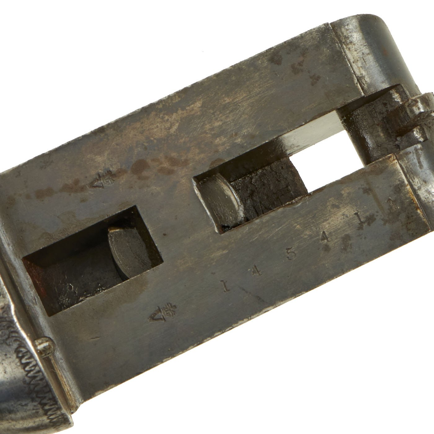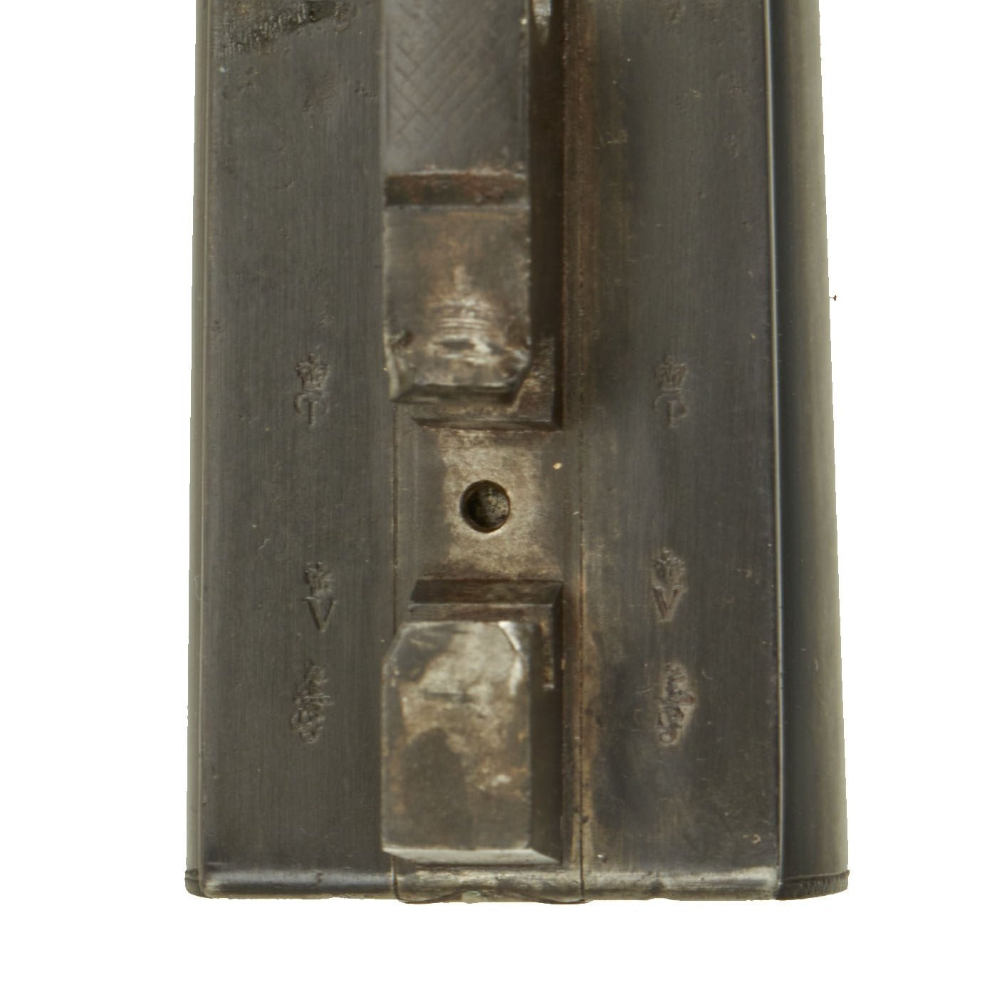 At the time, this gun was in what was considered the premium caliber, .450 BLACK POWDER EXPRESS, a popular cartridge capable of bringing down any Elephant, Lion, Rhino or Tiger. This Double Rifle has 26" barrels with double folding sights of 100 and 200 yards, with an overall length of 43". Like almost all top break shotguns and rifles, the gun breaks down into three pieces for storage in the case. To retain the clean external lines and appearance, most of the markings are inside he barrel joint.