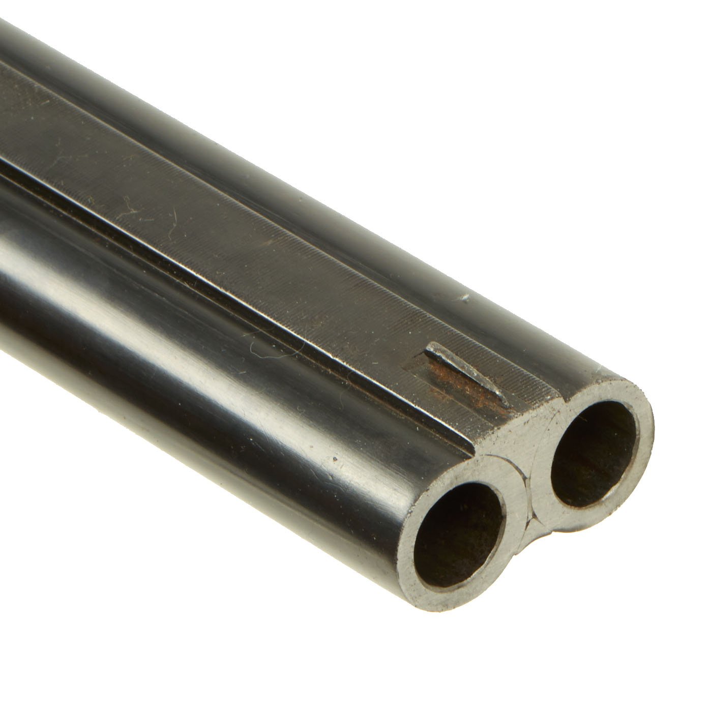 This particular .450 Express big game rifle was manufactured by R.B. Rodda, as indicated on the tops of the barrels on both sides of the front rear sight: