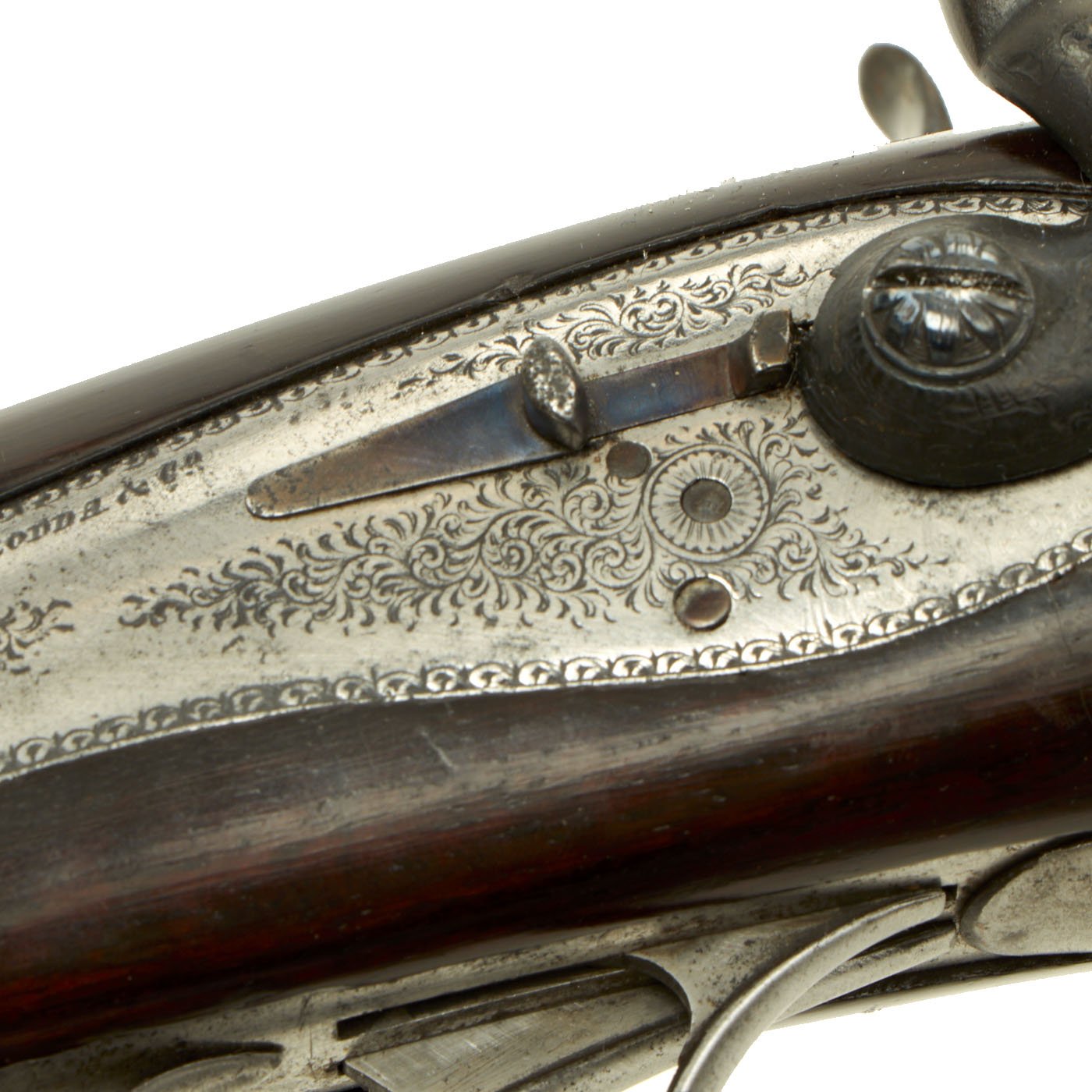 Both lock plates are also marked correctly with R.B. RODDA & CO.. As indicated, they officially made guns for Alfred, the Duke of Edinburgh, who was the second son of Queen Victoria. He bore this title from 1866 until 1893, when he became the Duke of Saxe-Coburg and Gotha in Germany. This rifle has external hammers, so it was most likely made in the 1870s or 1880s, before the move to internal firing pins.