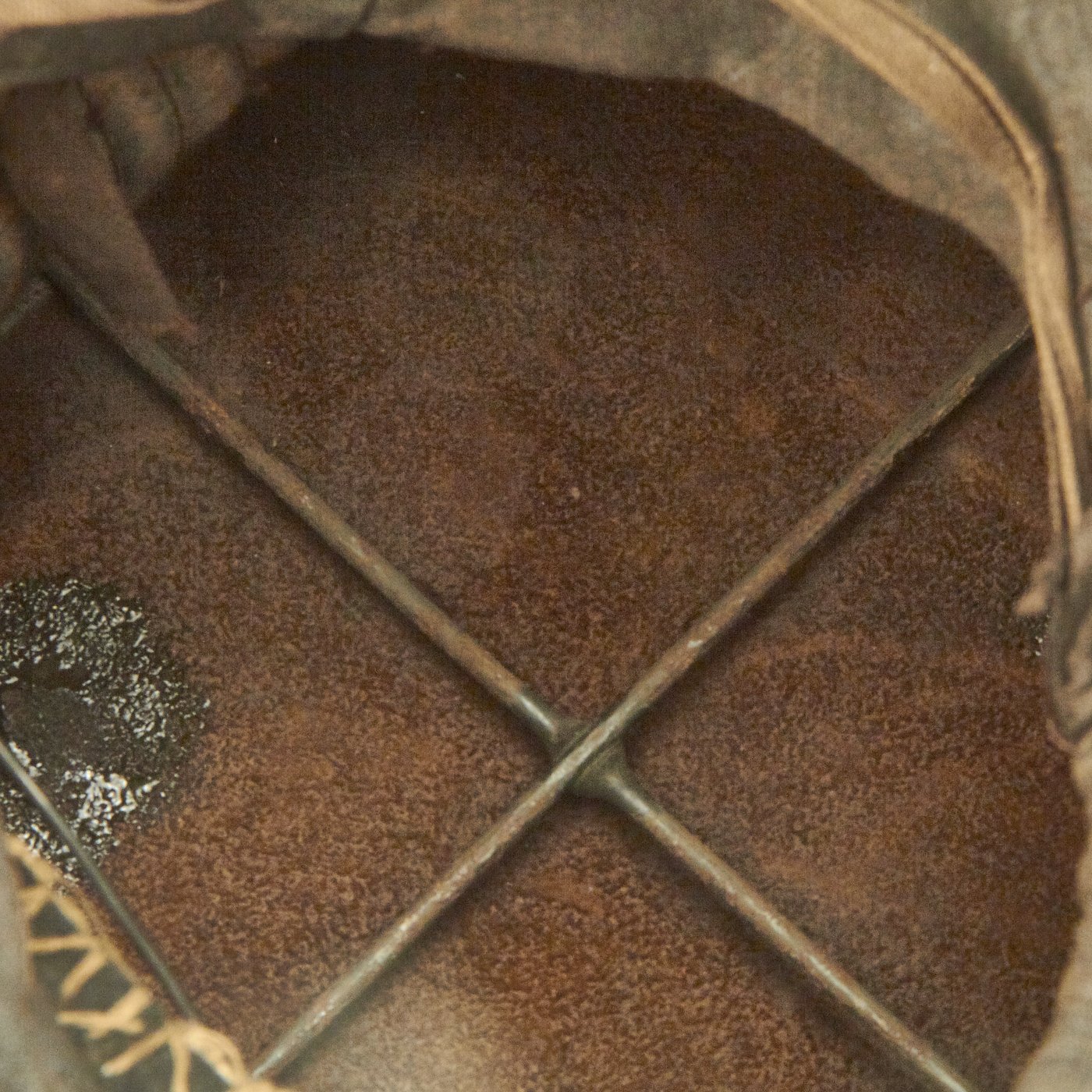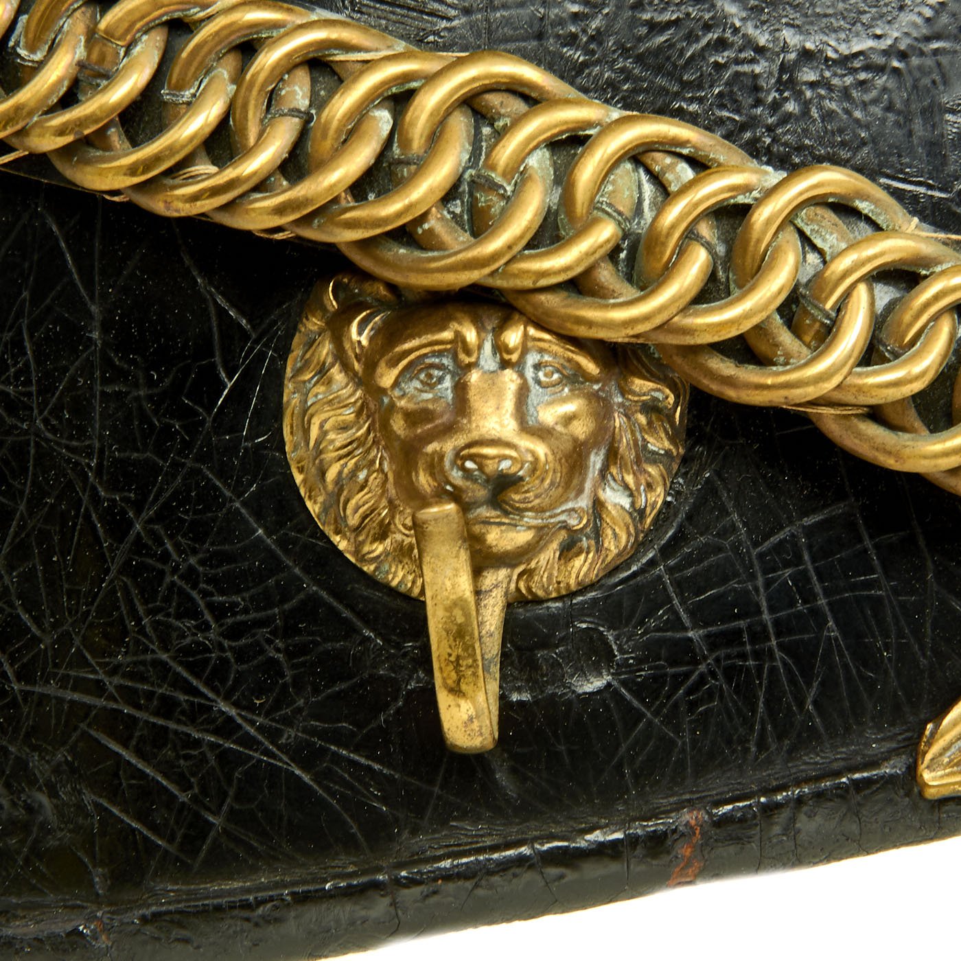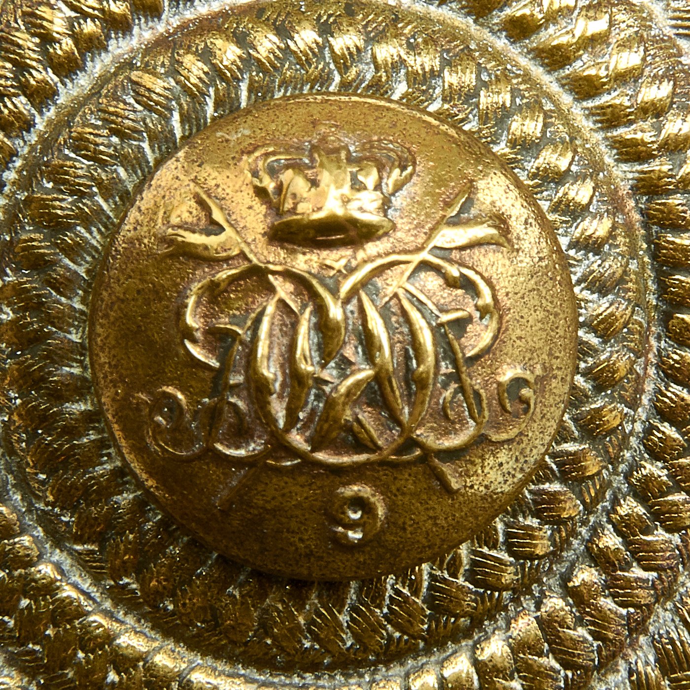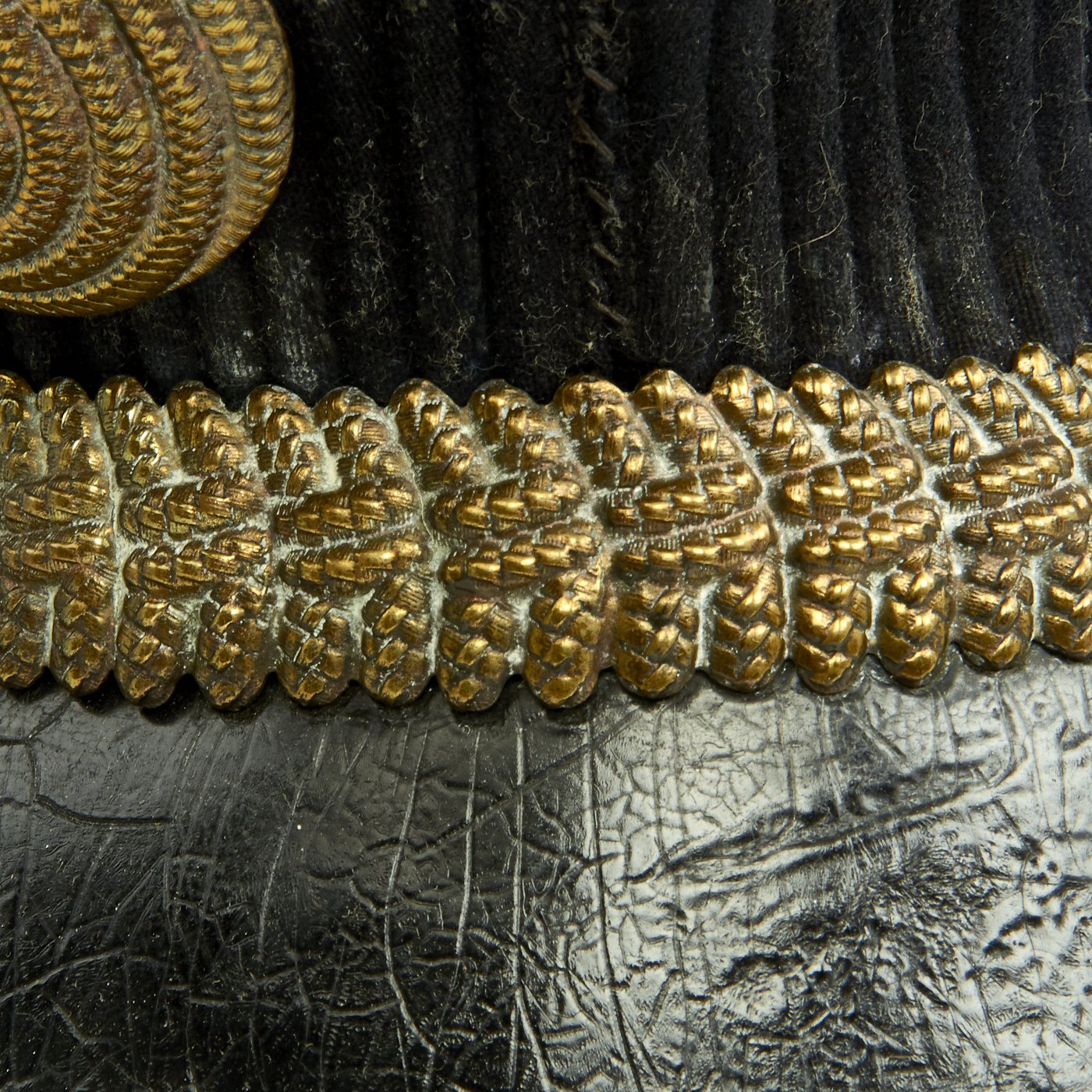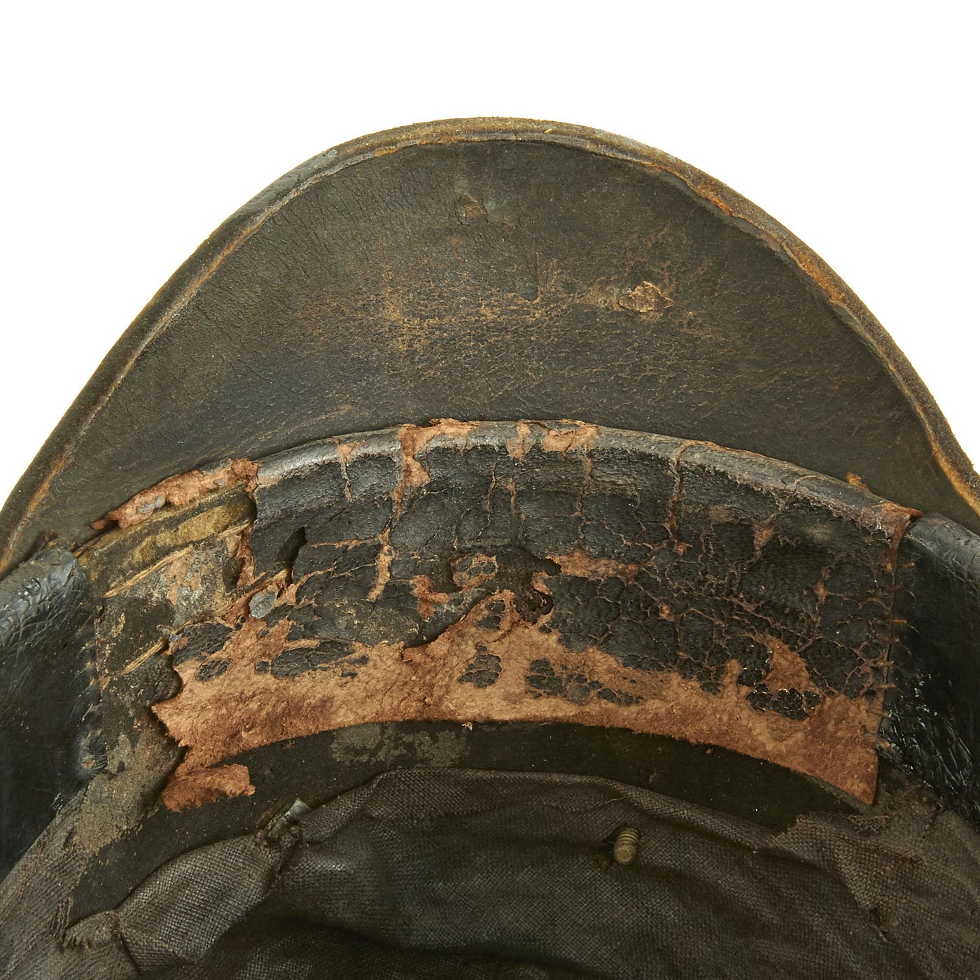 Original Item: Only One Available. British 19th Century Victorian 9th Royal Lancers Other Ranks Helmet Tschapka Lance Cap. The leather body has minor crazing for the period of the helmet. The Lance Cap has the correct skull and peak with correct brass rope effect waist. The rear has the correct brass ring & hook. The sides are covered in black facing cloth. Brass piping with ornate finials extends down the 4 angles. The cap has the correct brass rosette with Crown and ‘9’ (9th Lancer’s) brass button and Lion’s head bosses with correct leather backed link brass chain. Regrettably the horse hair plume is not present. The cap is fitted with correct rayed plate and badge comprising the Queens's Crown Royal arms, Queen Adelaide ‘AR’ Royal cypher and Battle honors. The cap is complete with original leather sweat band and cotton lining. It is approximate US size 6 1/2.