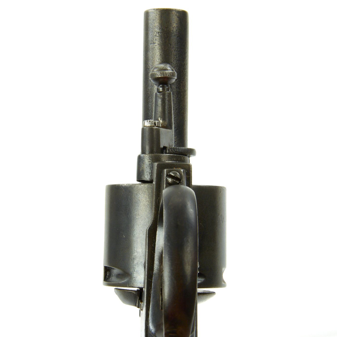 There are various assembly numbers on the frame and under the grip, as pictured. Condition is very good, with some wear. Barrel rifling is strong, and the revolver has a functional ejector rod and loading gate.