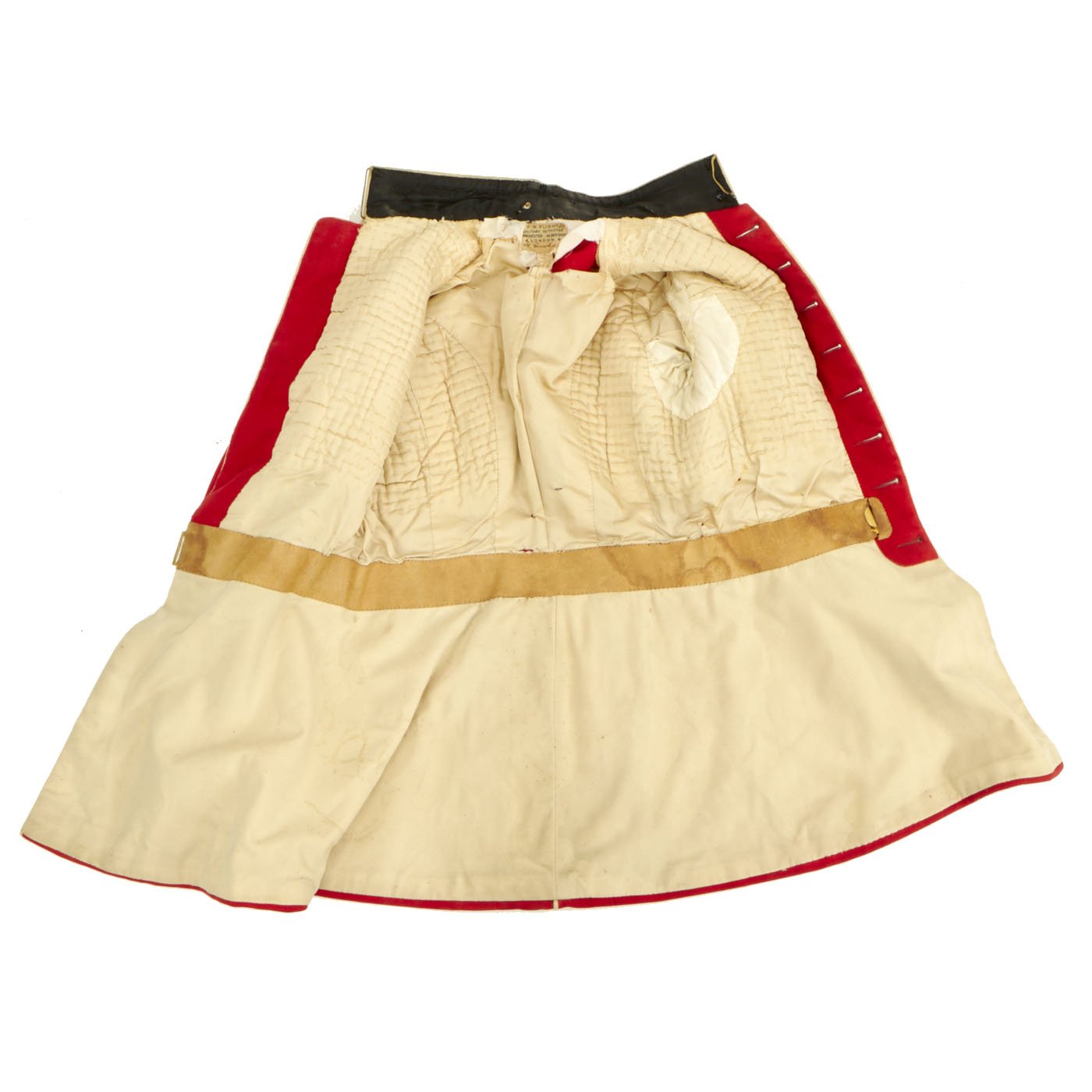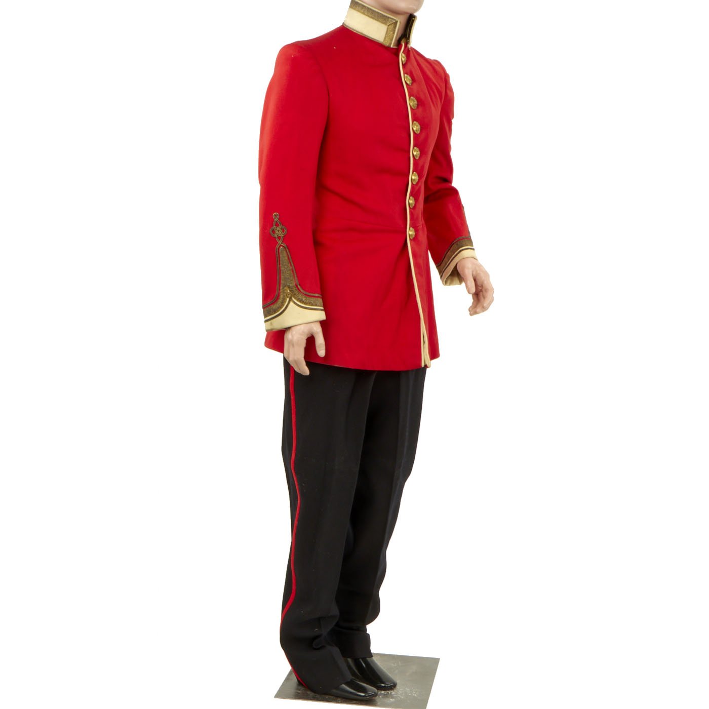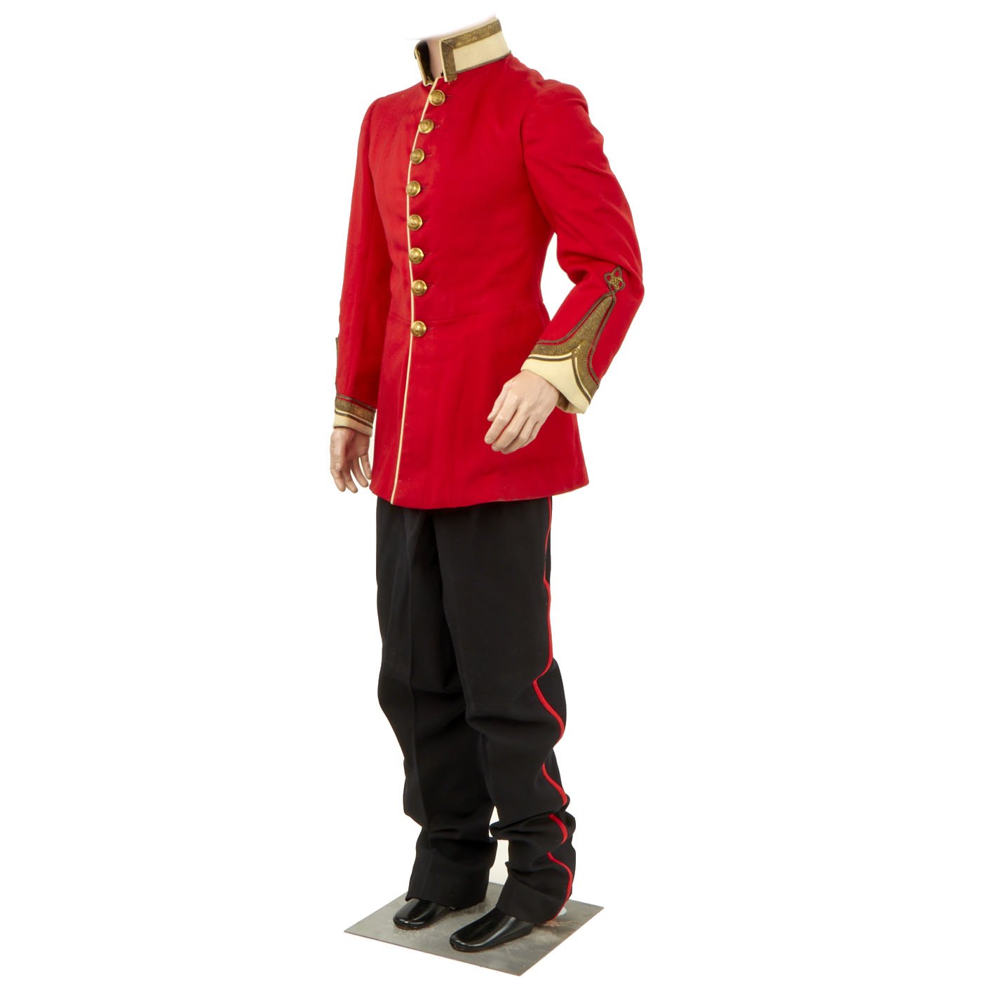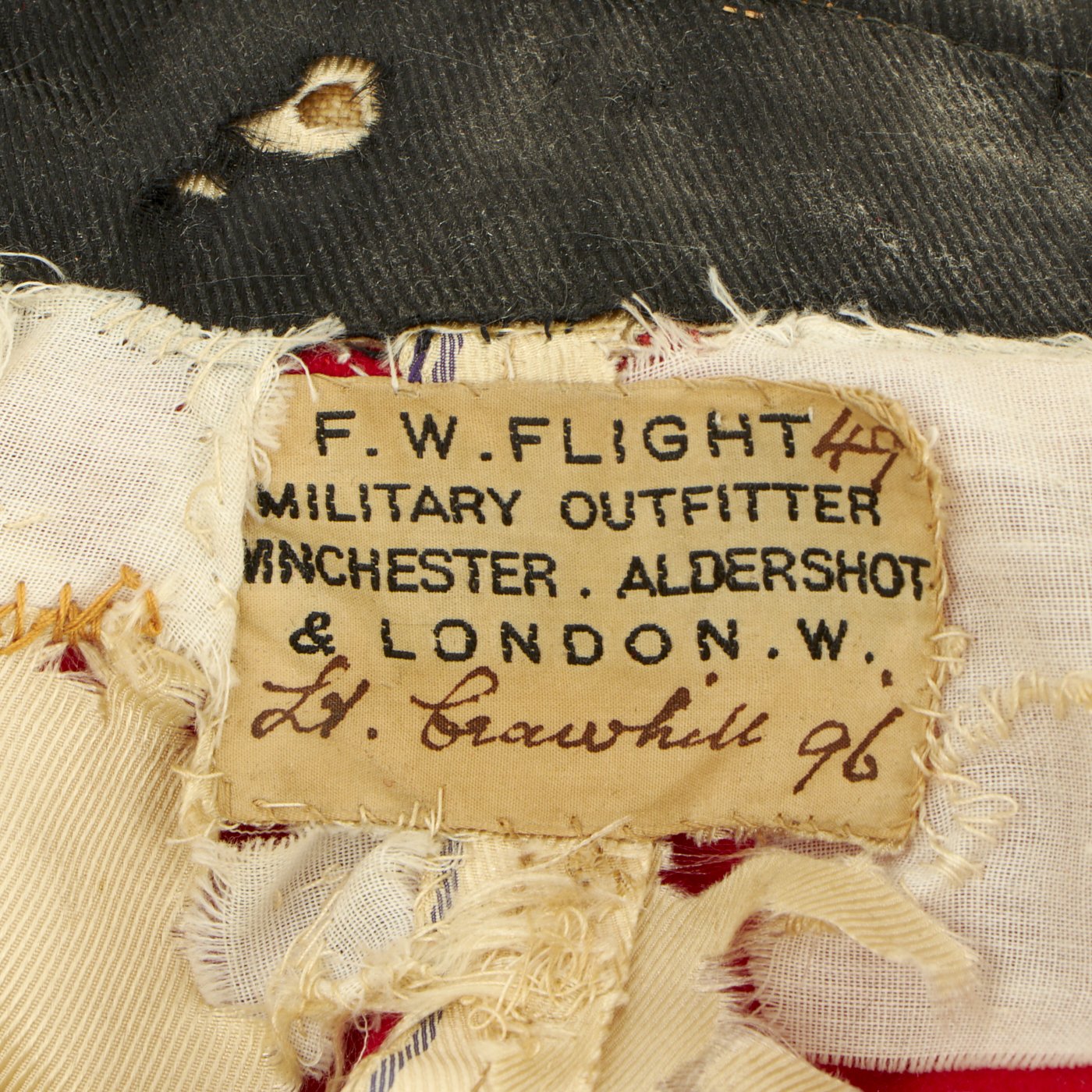 Original Item: Only One Available. Dating around World War One or earlier, this fine jacket is in very good condition. Made of fine melton wool with an artificial silk padded lining.Front of the tunic has 8 buttons, each marked “Jennens & co. London”. Wonderfully detailed Lieutenant braiding and buff facing adorn each cuff. A maker label is sewn to the lining with the interior at the nape of the neck; “F.W. Flight/Military Outfitter/Winchester. Aldershot/ & London.W.” below is handwritten the original owner’s name and rank: “Lt. Crawhill”. A matched set of trousers accompany the tunic, which will make for an excellent display.