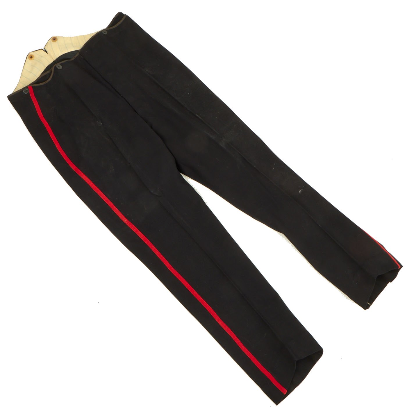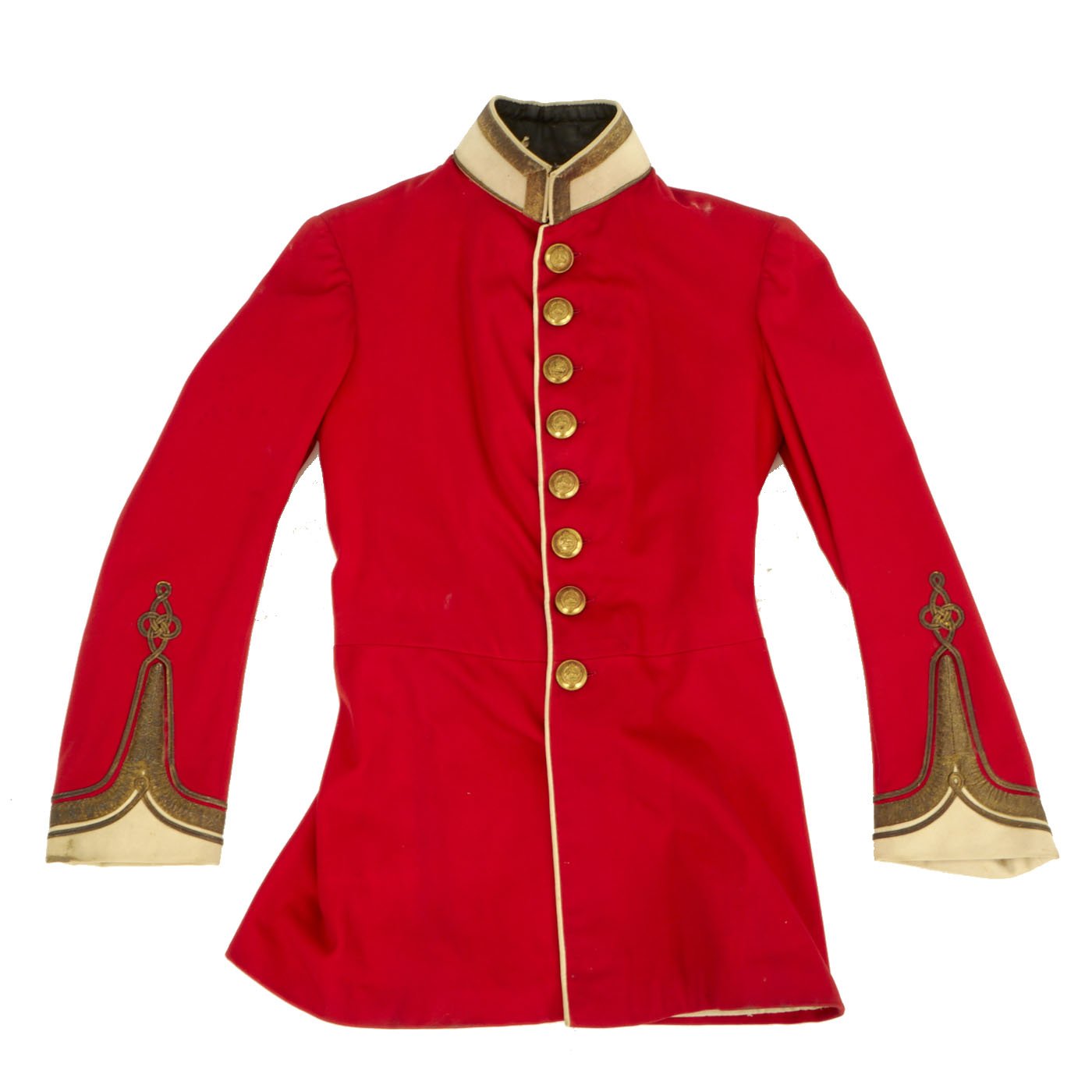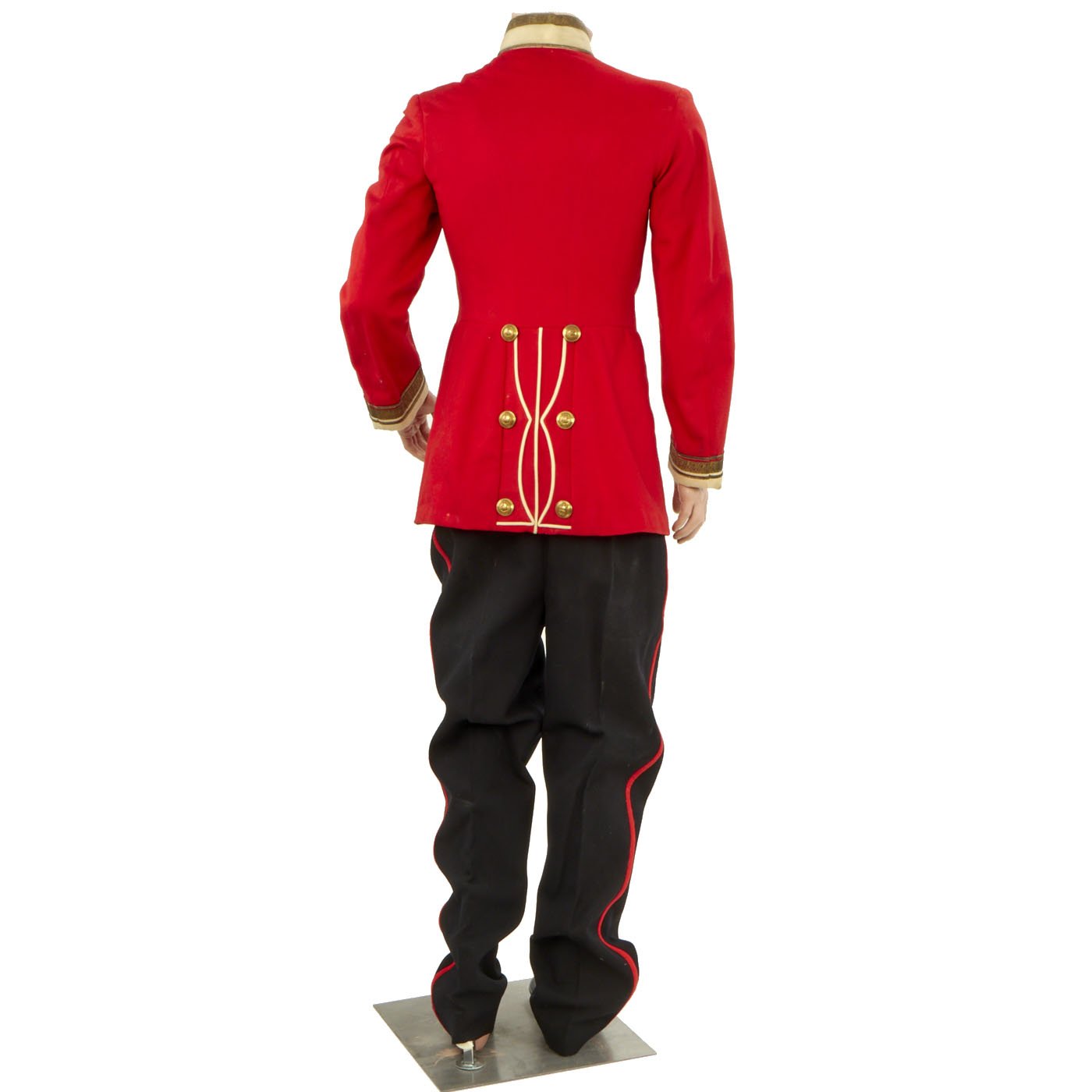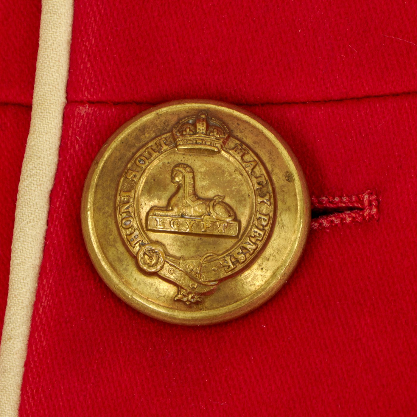 Original Item: Only One Available. Dating around World War One or earlier, this fine jacket is in very good condition. Made of fine melton wool with an artificial silk padded lining.Front of the tunic has 8 buttons, each marked “Jennens & co. London”. Wonderfully detailed Lieutenant braiding and buff facing adorn each cuff. A maker label is sewn to the lining with the interior at the nape of the neck; “F.W. Flight/Military Outfitter/Winchester. Aldershot/ & London.W.” below is handwritten the original owner’s name and rank: “Lt. Crawhill”. A matched set of trousers accompany the tunic, which will make for an excellent display.