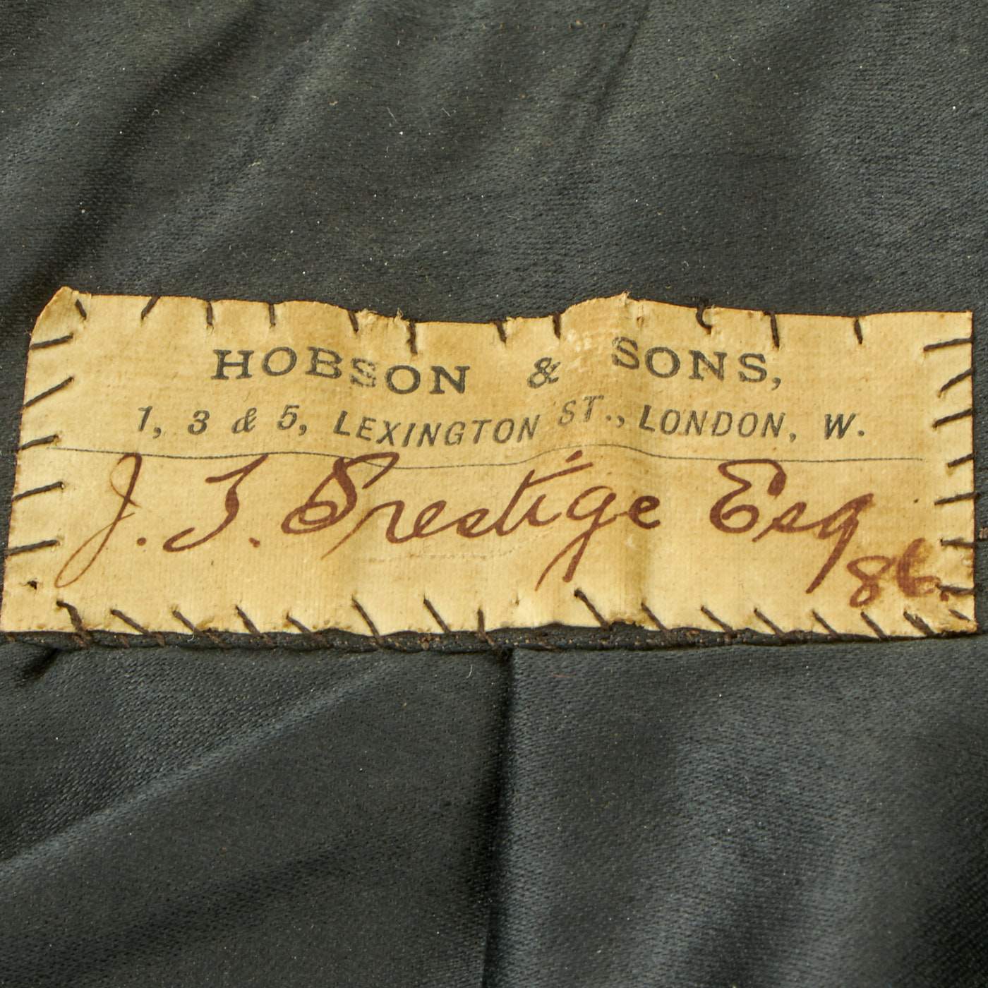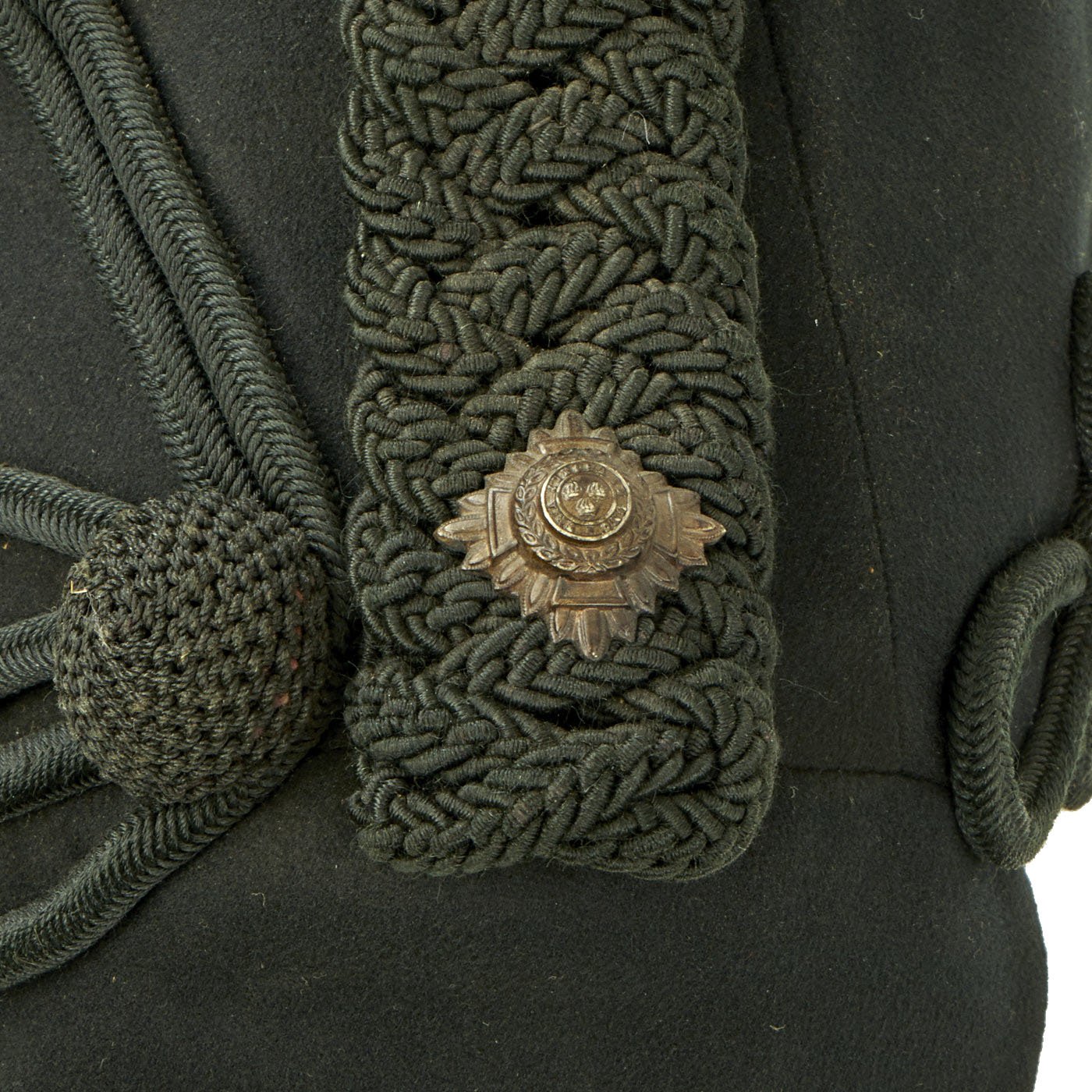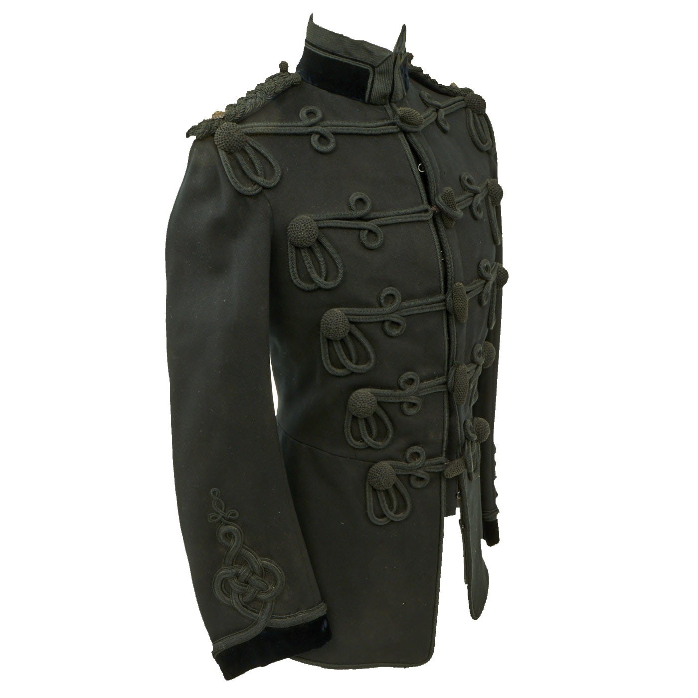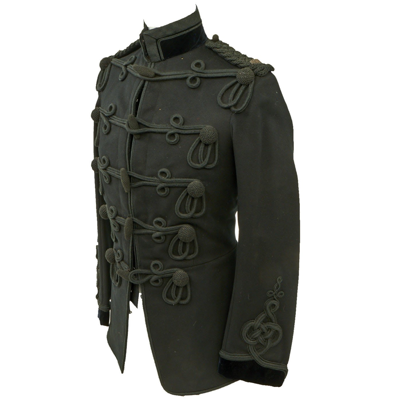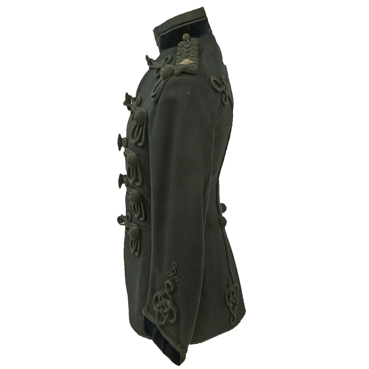 Original Items: Only One Available. A patrol jacket belonging to a British officer in the Victorian ear offered in very good condition. Tailored from dark blue melton cloth and detailed Russia braiding decoration, complete with all olivettes with concealed hook and eye fastening to the front. The tunic is complete with epaulets detailing rank pips. There is a Hobson & Sons tailor's label on the interior neck which is named to an officer in ink.