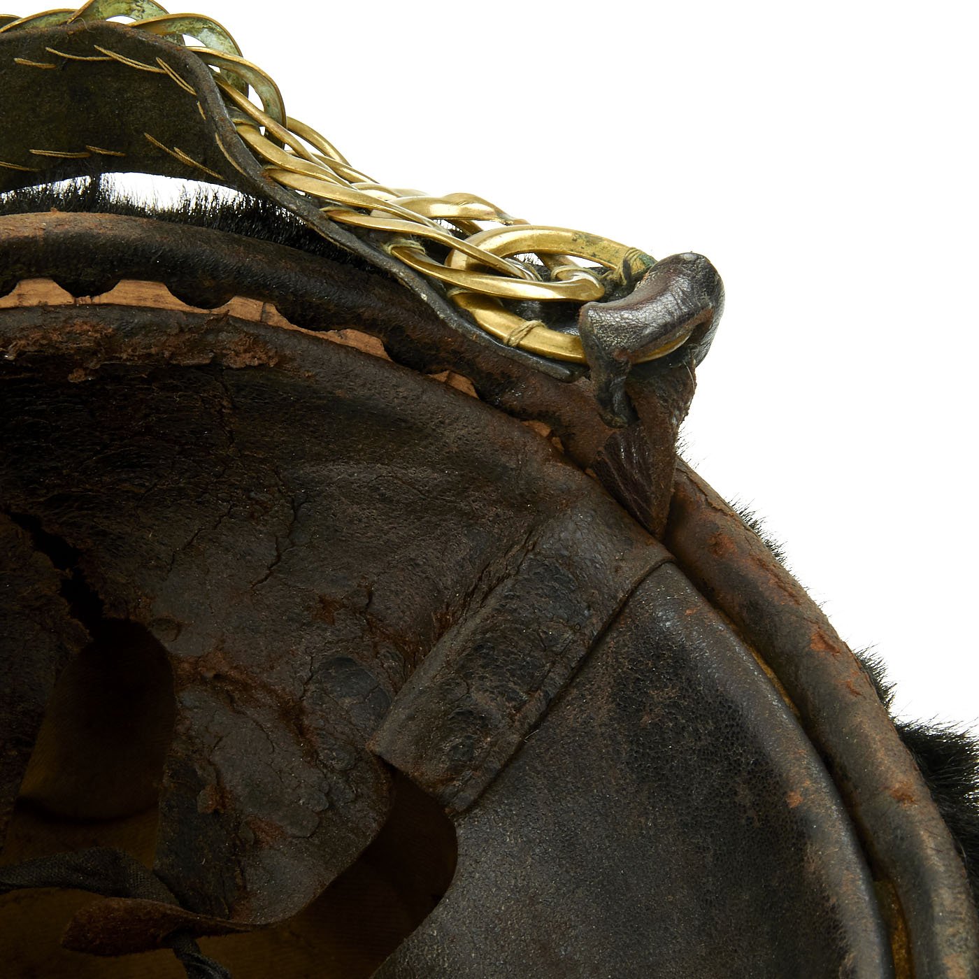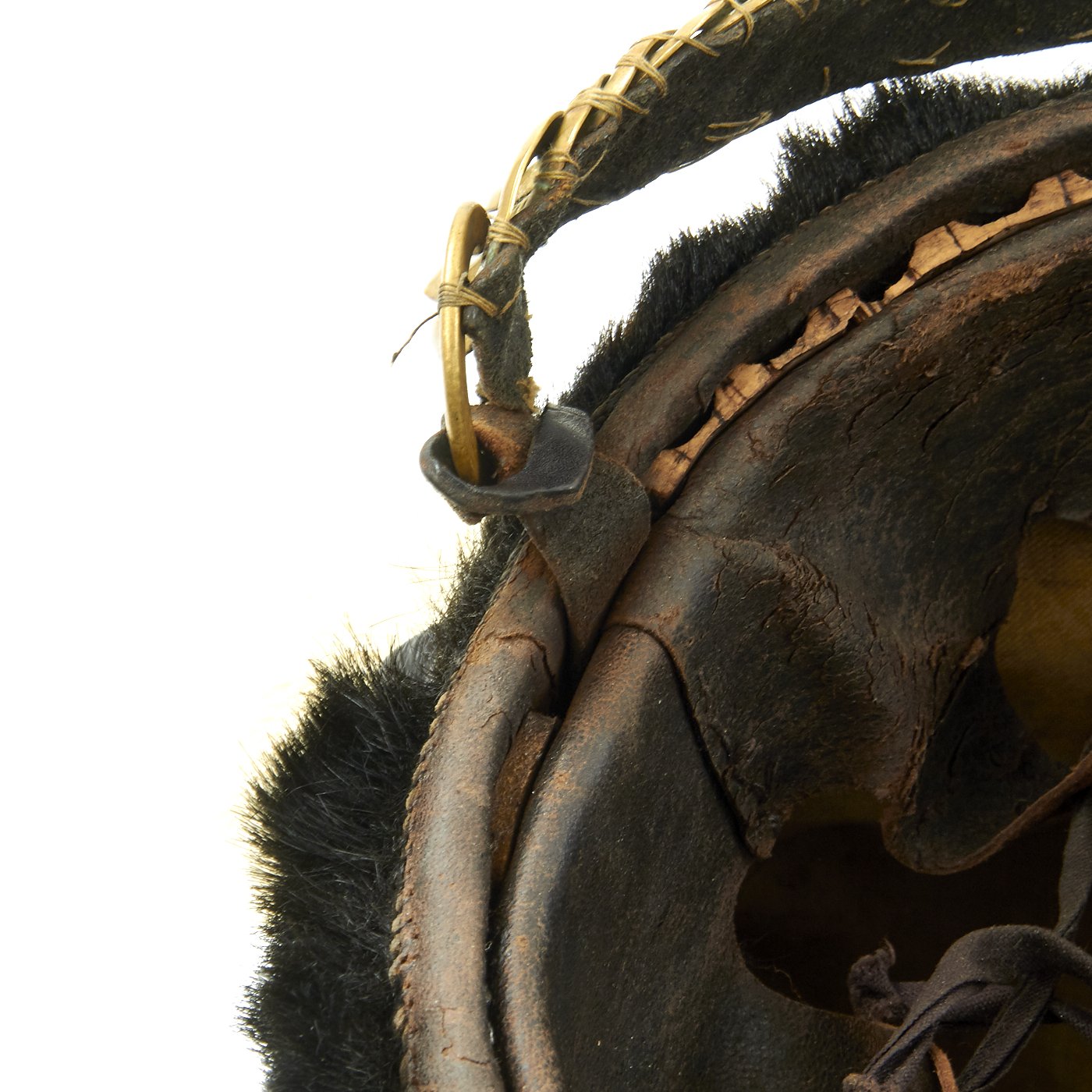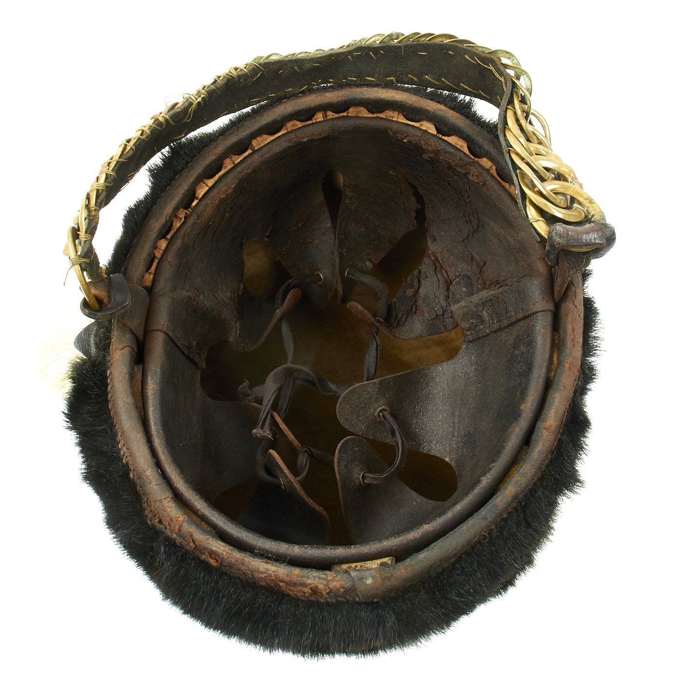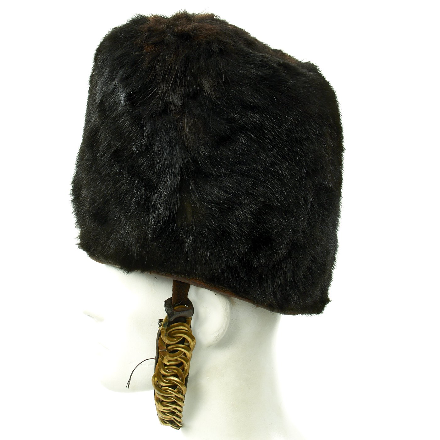 Original Item: Only One Available. Royal Welsh Fusiliers pattern Bearskin helmet fitted white hacker and correct original grenade badge of the Royal Welsh Fusiliers. The busby is complete with the linked chain scales chinstrap. Body of the busby remains in good overall condition. Size is approximately a US 7 (56cm).